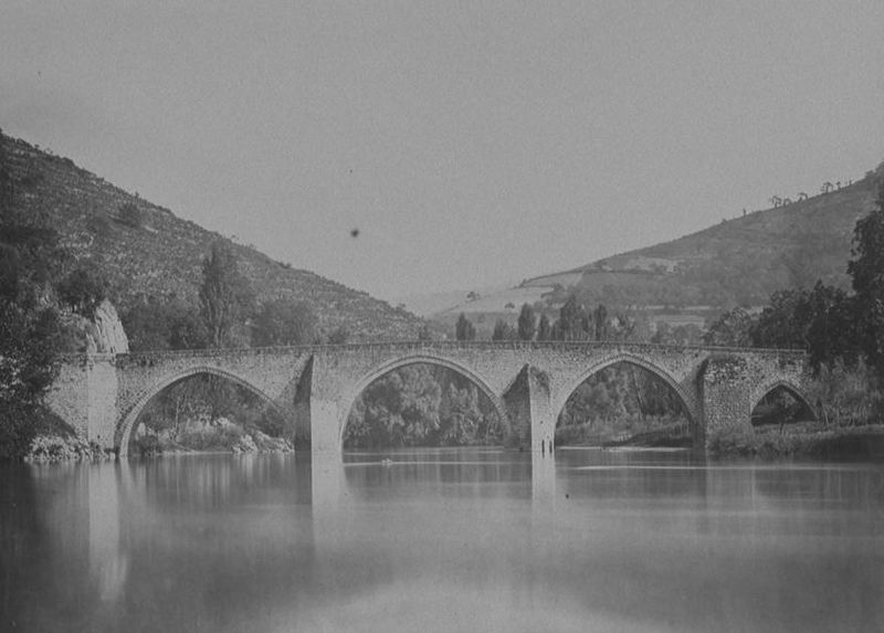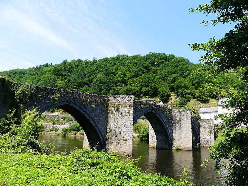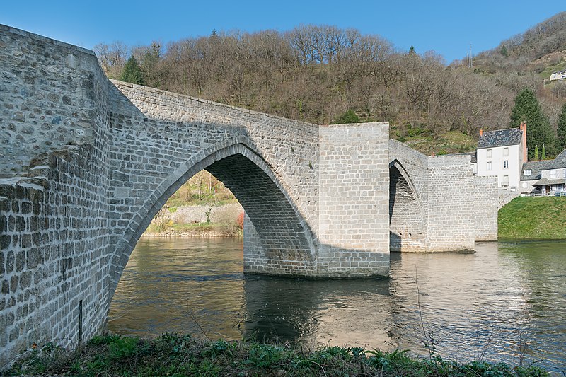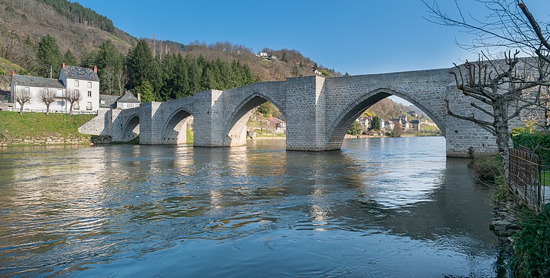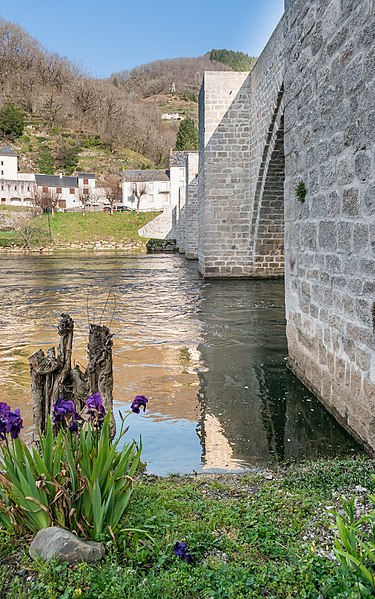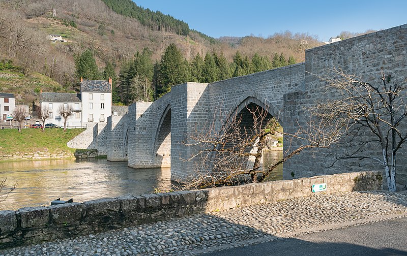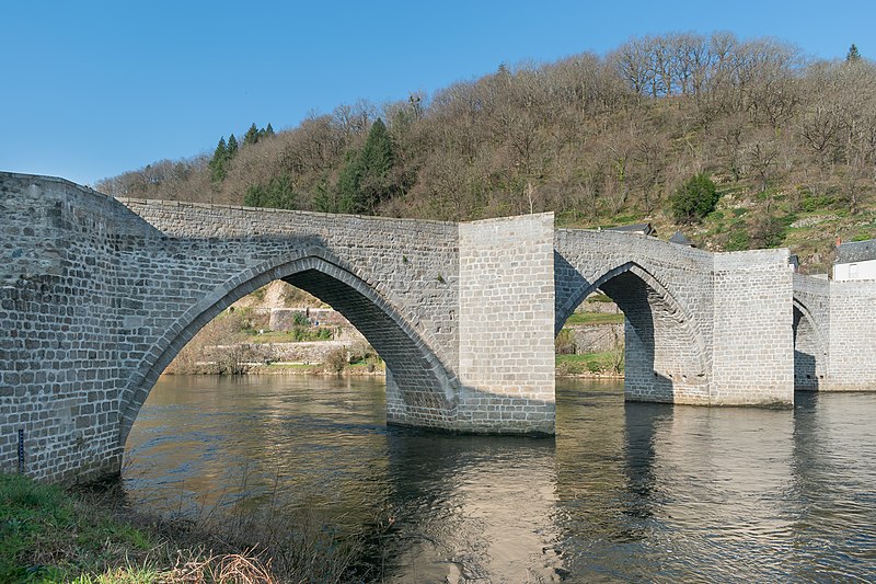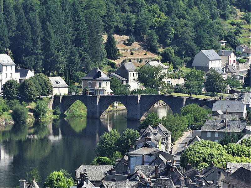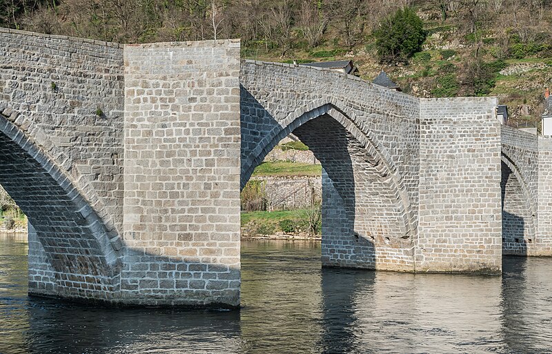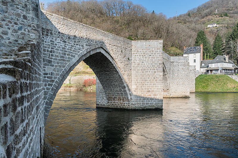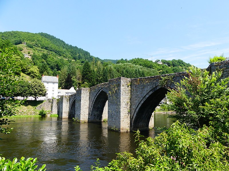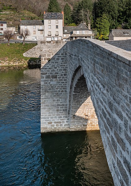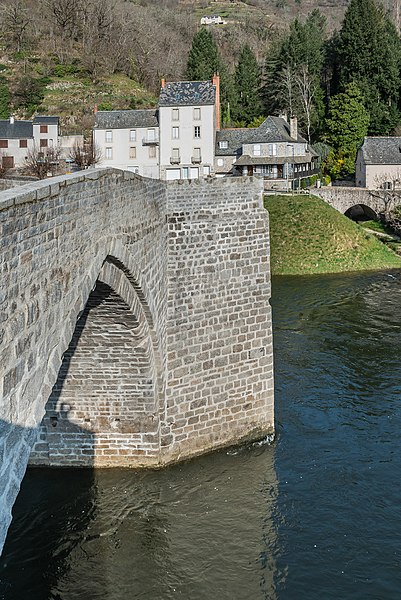Le pont sur la Truyère se situe à Entraygues-sur-Truyère, dans le nord de l'Aveyron, et constitue le dernier ouvrage franchissant la Truyère avant sa confluence avec le Lot. Il est protégé au titre des monuments historiques. Cet édifice médiéval est l'un des rares ponts de ce type à avoir survécu en Aveyron. Anciennement emprunté par la route nationale 120 (déclassée en départementale 920) reliant Entraygues à Aurillac, il est aujourd'hui réservé aux circulations douces ; la route principale passe désormais par le barrage de Cambeyrac, 750 m en amont. Les descriptions varient : l'ouvrage a été présenté comme un pont de cinq arches, mais il comporte aujourd'hui quatre travées dont les ouvertures, de la rive gauche à la rive droite, mesurent 15,33 m, 16,75 m, 14,20 m et 12,70 m. La largeur de la chaussée est de 3,55 m. Les arches sont à double rouleau. Les piles sont munies de becs, l'amont étant protégé par des avant-becs triangulaires et l'aval par des arrière-becs rectangulaires. Ces becs remontent jusqu'au parapet et forment, au niveau de la chaussée, des espaces de sécurité pour les piétons. Les sources divergent sur la chronologie de l'ouvrage : certaines le situent au milieu du XIIIe siècle. En 1269, l'archevêque de Bourges Jean de Sully accorda des indulgences pendant trois ans aux donateurs destinés à la construction du pont. A. Ginisty signale la présence, sur la pile centrale, d'un écu accompagné de la date 1237 ou 1257. Des actes font état de l'utilisation du pont et de droits de péage dès 1278. D'autres sources indiquent toutefois une mise en service en 1340. Selon Ginisty, le pont portait autrefois trois tours, peut-être édifiées au même moment que l'ouvrage. En 1388, le comte d'Armagnac fit « couper le pont » pour empêcher le passage des routiers ; il n'est pas certain si cette action visait le pont sur la Truyère, celui sur le Lot, ou les deux. Des réparations sont signalées en 1524, puis une restauration en 1680. Le pont a été classé au titre des monuments historiques le 16 septembre 1927. Une restauration complète a été menée entre 2017 et 2019, entraînant la suppression définitive de la circulation routière. L'ouvrage est désormais éclairé la nuit pour le rendre visible.