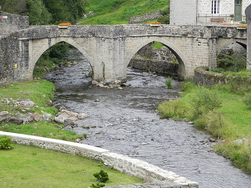 Le pont, bâti en moellons et en pierre de taille de granit gris, repose sur deux culées à éperons et présente trois arches en arc brisé. Il donnait accès à l'ancien château fort, aujourd'hui disparu. Signalé dès 1285, l'ouvrage actuel conserve ces arches brisées, élargies par encorbellement à une date inconnue.