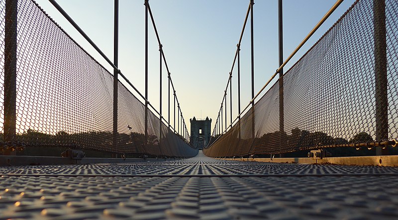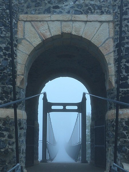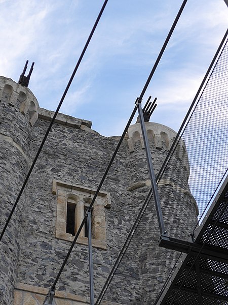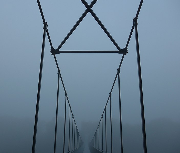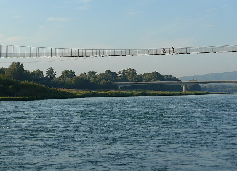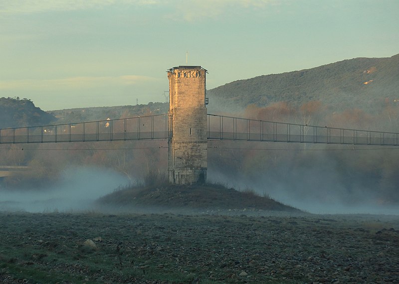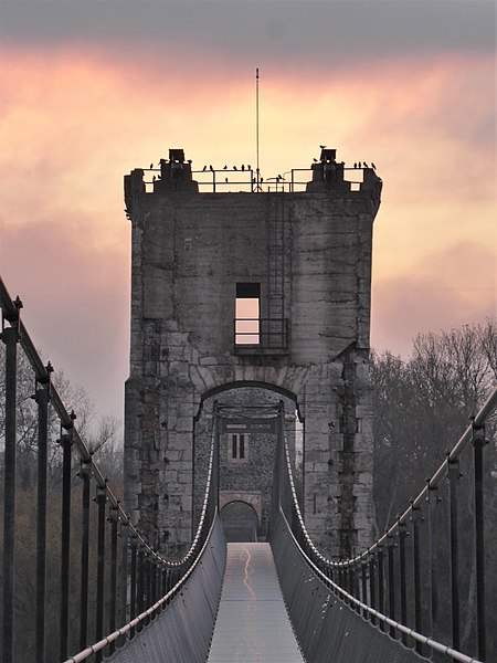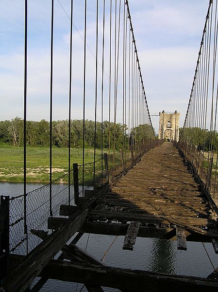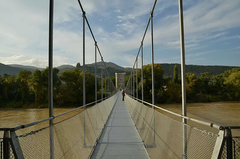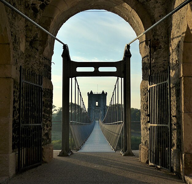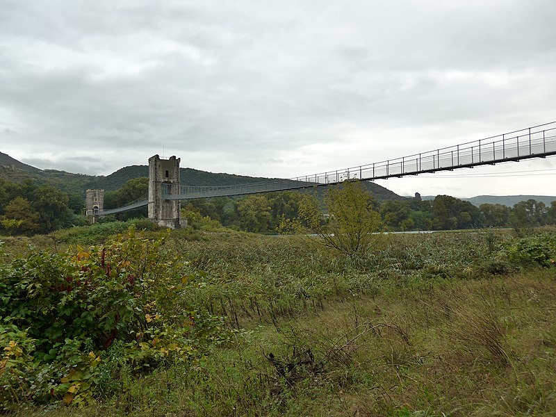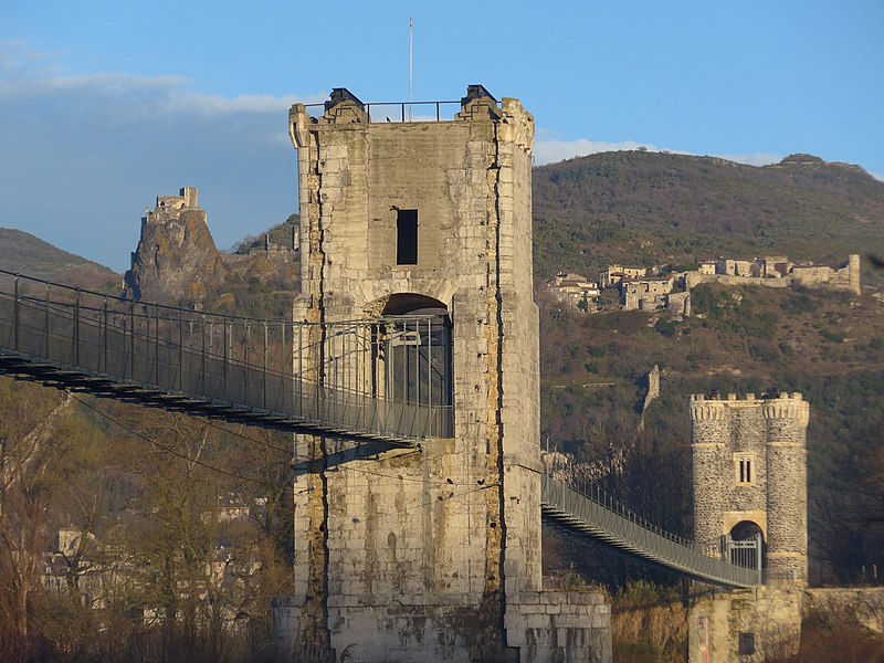 Le pont de Rochemaure, situé sur la commune de Rochemaure en Ardèche, est un ouvrage suspendu inscrit au titre des monuments historiques depuis le 17 décembre 1985. Le premier pont suspendu, construit au début des années 1840, fut emporté par la crue du 30 mai 1856 ; un bac à traille assura alors la traversée en attendant un nouvel ouvrage. Le conseil municipal s'opposa à la reconstruction sur les mêmes bases, et un nouveau pont fut édifié en 1858 grâce à des fonds privés sous la direction de l'ingénieur Marc Seguin, qui y appliqua son système de câbles en fil de fer parallèles ; il fut inauguré en 1859. La concession initiale, attribuée par ordonnance royale du 25 février 1838 aux sieurs Lesdiguières, Arnal et autres pour 90 ans, était, en 1869, passée au nom d'Escharavil et des héritiers L. Privat. Le pont apparaît ensuite dans le procès-verbal de la conférence pour le rachat des ponts suspendus sur le Rhône en février 1883, puis il fut racheté par la commune en 1884 pour 500 francs-or, ce qui entraîna la suppression du péage. En 1933 l'éclairage, auparavant assuré par des lampes à pétrole, fut remplacé par des lampes électriques et un contrat d'abonnement fut conclu avec la société d'électricité de la vallée du Rhône. En 1937 un camion trop lourd traversa le tablier. Pendant la Seconde Guerre mondiale, le tablier fut détruit en 1940 par l'armée française en retraite ; un avant-projet et un sondage de la pile centrale furent alors effectués et une passerelle provisoire de deux travées, pouvant supporter des véhicules de 5 tonnes, fut en voie d'achèvement en août 1941. Le passage fut relevé en 1942 et gardé par les Allemands occupant la zone libre à partir de 1943 ; un nouvel avant-projet fut établi en février 1943. En août 1944, bombardements alliés et destruction du tablier et de la pile centrale provoquèrent d'importants dégâts ; les travaux de restauration, pour lesquels des prisonniers de guerre furent employés, commencèrent à la fin de l'année. En avril 1945, un marché fut passé avec la société Fives-Lille pour les pièces métalliques et l'entreprise Sabatier pour le génie civil en vue de reconstruire un ouvrage suspendu provisoire, avec réemploi des matériaux ; il fallut également consolider la culée rive droite, notamment par injection de lait de ciment. Le pont fut reconstruit en 1946, la pile de la rive droite étant réparée et les autres piles bétonnées, mais sa charge fut limitée à 3,5 tonnes. En 1965 la circulation journalière moyenne atteignait 938 véhicules ; en 1967, un examen conclut que refaire entièrement le tablier ne serait pas rentable. En 1968 le passage d'un camion chargé de 35 tonnes fragilisa le pont au point de devoir restreindre l'accès aux piétons et aux deux-roues ; en 1969, face à l'usure et aux coûts d'entretien, la décision fut prise de reconstruire l'ouvrage en aval. En 1970 un crédit de 40 000 francs fut jugé suffisant pour solder l'exercice, puis, en 1973, le pont suspendu fut fermé à toute circulation en raison d'un risque de rupture ; un pont Bailey provisoire fut envisagé. Dans les années 1970, alors qu'un pont moderne était en cours de construction en aval, la question de la démolition de l'ancien ouvrage demeura posée, la démolition ayant été évaluée à 650 000 francs en mars 1972. En 1982 deux incendies endommagèrent le pont, lequel fut interdit à toute circulation. Après près de trente ans d'abandon, il a été rénové dans le cadre de la réalisation de la ViaRhôna et a rouvert aux véhicules non motorisés le 14 juillet 2013.