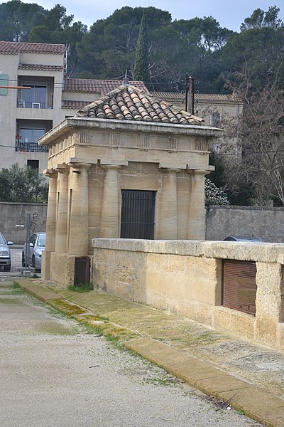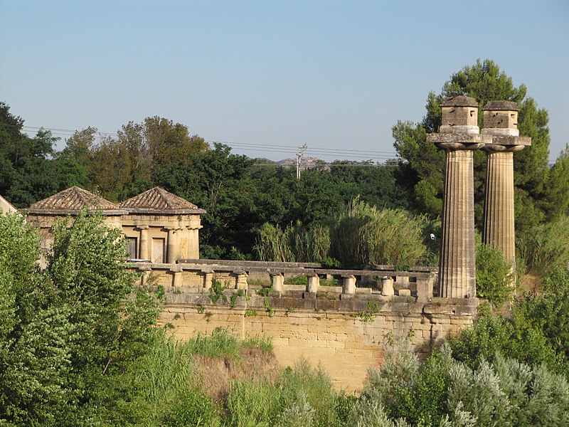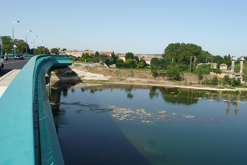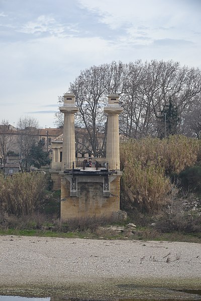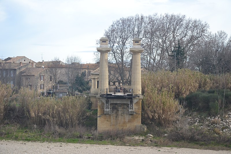Pont suspendu (restes de l'ancien) ; culée, deux colonnes doriques et deux édifices voisins : inscription par arrêté du 30 décembre 1939