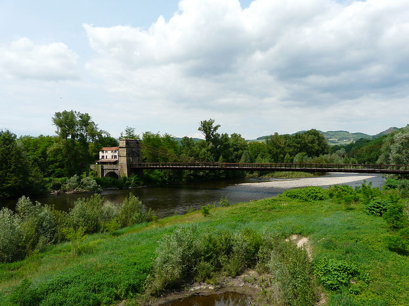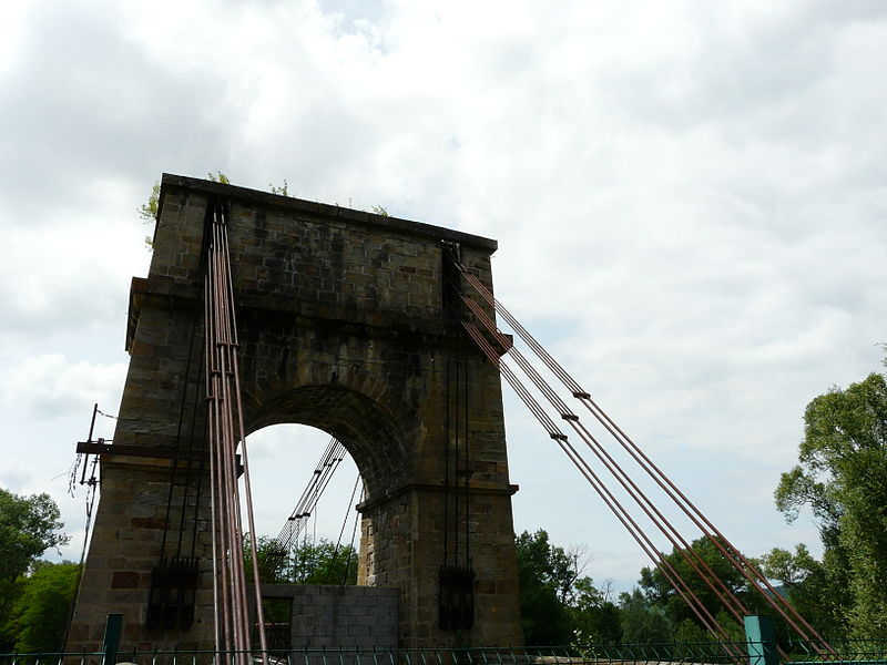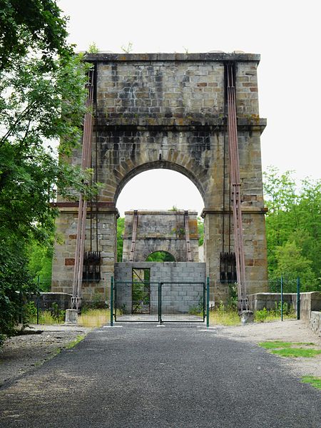Le pont suspendu de Parentignat franchit l'Allier entre Issoire (rive gauche) et Parentignat (rive droite), dans le Puy-de-Dôme, en Auvergne-Rhône-Alpes. Construit en 1830, il est resté en service jusqu'en 1976. Son originalité technique réside dans des câbles composés de barres d'acier articulées, alternativement doubles et quadruples, et non d'une seule pièce. L'ouvrage associe une grande travée suspendue en fer forgé à deux arches plus petites en maçonnerie, pour une longueur totale de 120 m et une largeur de 6 m. Hormis un renforcement du tablier, il a peu été remanié depuis sa construction. Inscrit au titre des monuments historiques le 29 octobre 1975, il a été désaffecté après la construction, en 1976, d'un nouveau pont routier supportant la route départementale 996, situé une centaine de mètres en amont. Propriété de l'État, il est actuellement fermé à toute circulation, y compris piétonne. Des vues photographiques présentent le pont depuis les deux rives, le détail des barres d'acier formant les câbles et l'accès fermé.