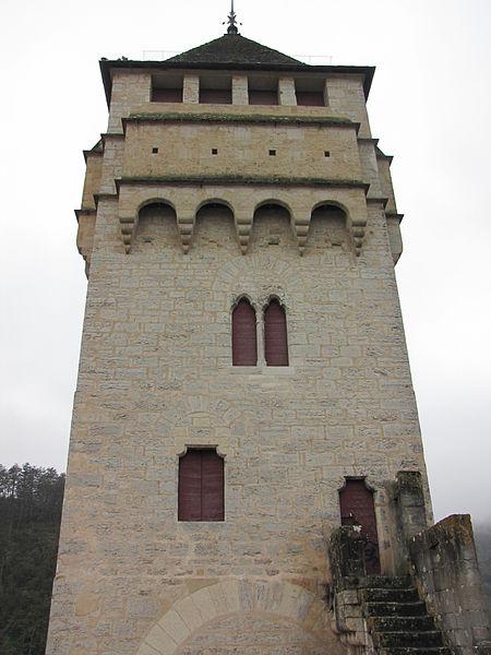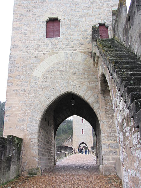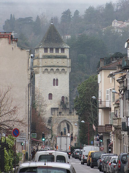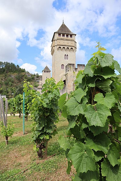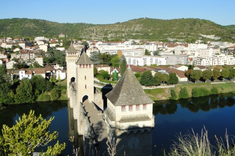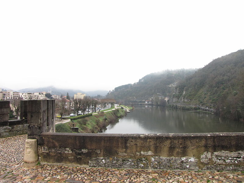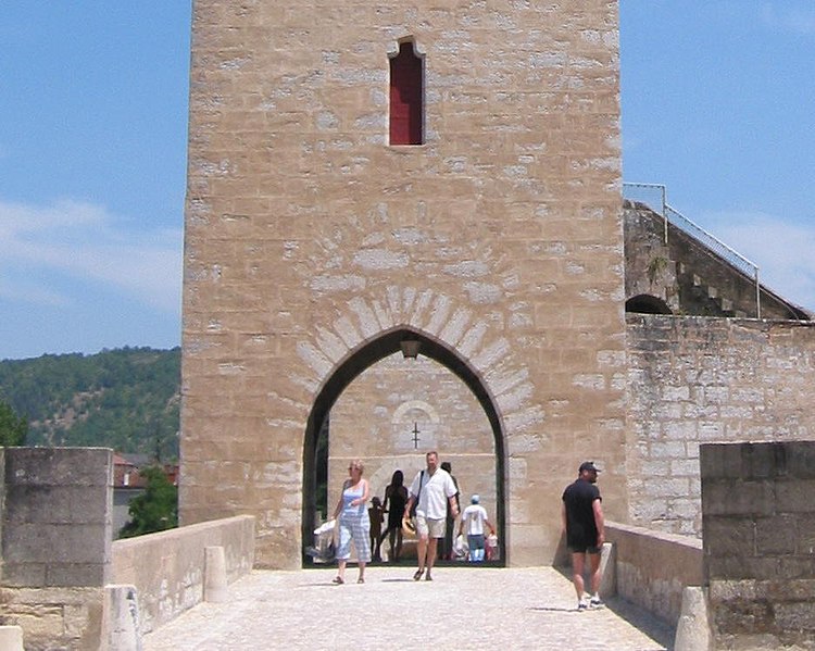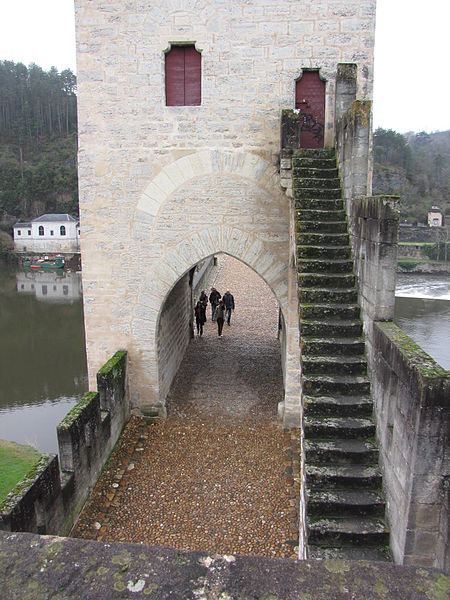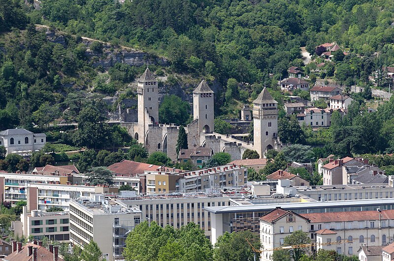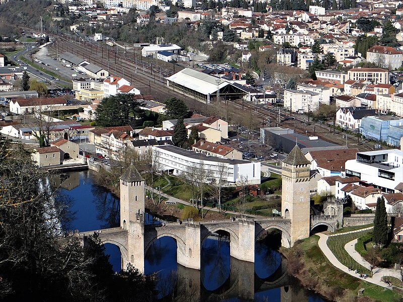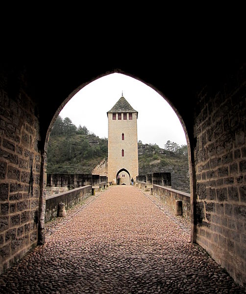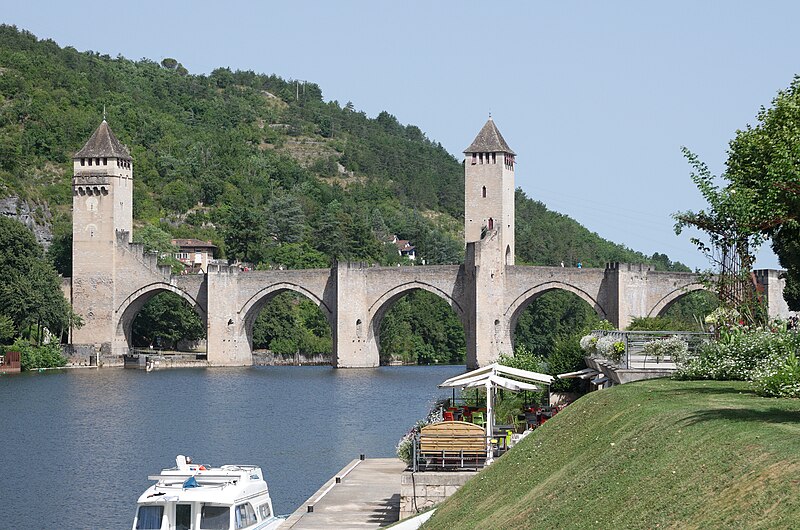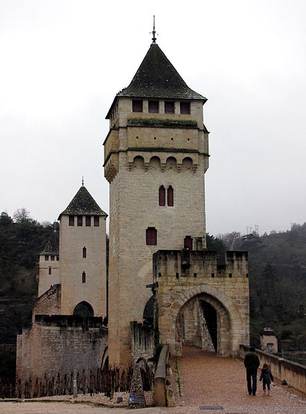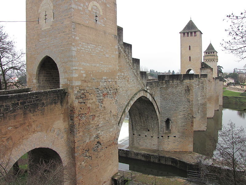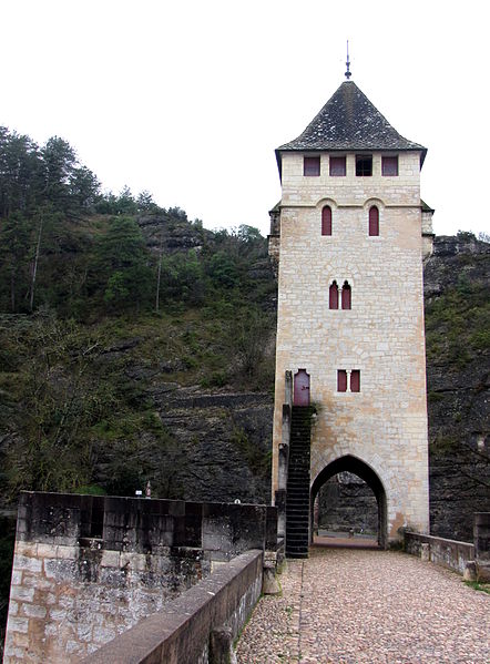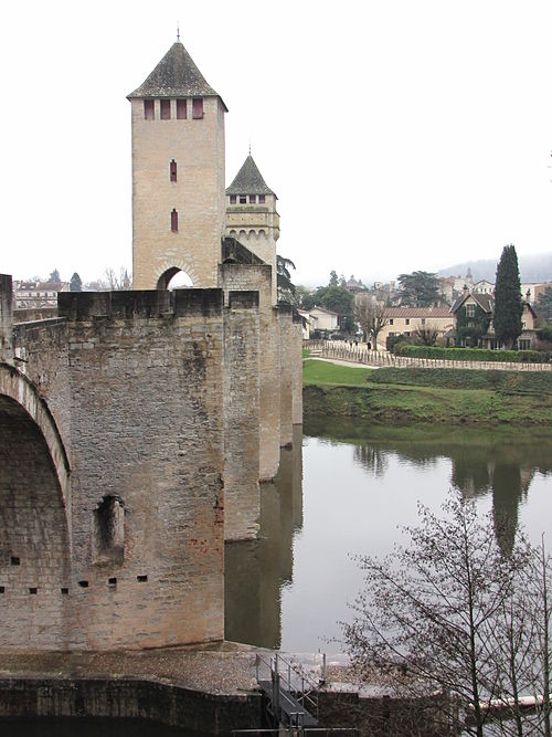 Le pont Valentré, appelé en occitan pont de Balandras et surnommé pont du Diable, est un pont fortifié du XIVe siècle qui enjambe le Lot à l'ouest de Cahors. Exemplaire de l'architecture militaire médiévale, il est caractérisé par ses six arches ogivales précédées de becs aigus et par ses trois tours carrées crénelées dotées de mâchicoulis. De forme en dos-d'âne, il mesure 138 mètres de longueur ; chaque grande arche s'ouvre sur 16,50 mètres et les tours dominent l'eau sur 40 mètres. Construit à l'origine pour défendre la ville et modifier l'axe commercial vers un tracé est-ouest, il était autrefois flanqué de deux barbacanes, dont seule celle du côté est a été conservée, et sa protection spirituelle était assurée par une chapelle dédiée à la Vierge dans le châtelet occidental. Les travaux, décidés par les consuls, ont débuté en 1308 et se sont achevés en 1378 ; la restauration conduite en 1879 a toutefois sensiblement modifié son aspect initial. Classé parmi les monuments historiques dès 1840, il figure depuis 1998 au patrimoine mondial de l'UNESCO au titre des chemins de Saint-Jacques-de-Compostelle en France et fait depuis 2012 partie du réseau des ponts remarquables du sud de la France. Le pont est aujourd'hui réservé à la circulation piétonne et se situe sur la Via Podiensis ainsi que sur le sentier de grande randonnée GR 36. L'origine du nom Valentré reste incertaine : il pourrait dériver de balandra, désignant soit une salamandre, soit une barque à fond plat utilisée avant la construction du pont. La popularité de la longue construction a engendré la légende du maître d'œuvre ayant conclu un pacte avec le Diable ; selon ce récit, Satan fut trompé par une demande absurde et, pour se venger, envoya chaque nuit un diablotin desceller la dernière pierre de la tour centrale, d'où la durée exceptionnelle du chantier. Lors de la restauration de 1879, l'architecte Paul Gout fit apposer dans l'emplacement vide une pierre sculptée à l'effigie d'un diablotin, œuvre du sculpteur Calmon. Le musée de Cahors Henri-Martin conserve de nombreuses représentations du pont — armoiries, dessins, gravures, peintures et photographies d'artistes variés — ainsi qu'une cage découverte au pied de l'ouvrage à la fin du XIXe siècle. Le pont a été reproduit sur plusieurs timbres, émis notamment en 1955 (réédité en 1957), en 2008 pour le 700e anniversaire du début de sa construction, et par la Poste andorrane en 1974. Il est également présent dans des collections miniatures et dans de nombreuses publications consacrées au patrimoine local. Le passage sur le pont est gratuit : le comptage fixe a enregistré 231 500 visiteurs en 2017 et 250 000 visiteurs en 2020.