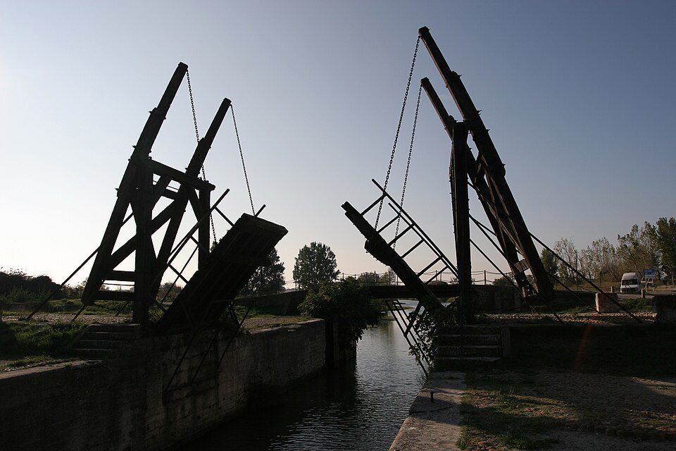 Le pont Van-Gogh, situé sur le canal de navigation d'Arles à Bouc dans la commune d'Arles, est connu mondialement grâce aux représentations que Vincent van Gogh en fit en 1888. À l'origine il s'agissait d'un pont basculant à double-levis, construit dans la première moitié du XIXe siècle et issu d'une série de onze ouvrages identiques établis le long du canal, inauguré en 1837. Ces ponts, réalisés par un ingénieur hollandais dans les années 1820-1830, rappelèrent à Van Gogh sa patrie et firent l'objet de plusieurs toiles, dessins et aquarelles. À l'époque le passage était appelé pont de Langlois, du nom de l'agent qui le gardait et en manoeuvrait la commande ; Van Gogh, l'ayant mal entendu, le nomma « pont de l'Anglais », d'où est née la variante « pont de l'Anglois » qui a perduré. Le pont original et la maison de l'éclusier furent détruits en 1926 et remplacés en 1930 par un pont en arc en béton armé de 45 mètres, dit pont de Réginelle. Pendant la Seconde Guerre mondiale, la plupart des ponts du canal furent détruits par les troupes allemandes en 1944 ; seul celui de Fos-sur-Mer échappa à la démolition. L'ouvrage identique aux autres fut démonté en 1959 pour des travaux de voirie ; la ville d'Arles en fit l'acquisition et le fit réinstaller en 1962 quelques kilomètres en aval de l'emplacement primitif. C'est ce pont reconstitué qui porte aujourd'hui le nom de « pont Van-Gogh », bien qu'il ne soit pas celui peint par l'artiste. Les piles du pont ainsi que les façades et les toitures de la maison pontière ont été inscrites au titre des monuments historiques en 1986 ; le pont lui-même a été classé en 1988, à l'exception des piles relevant du domaine public fluvial. Le pont a fait l'objet d'une restauration complète en 1997 ; la maison éclusière a été détruite par un incendie en 2016. Van Gogh, arrivé à Arles le 20 février 1888, réalisa entre mars et mai 1888 une série consacrée au pont-levis : quatre huiles sur toile, deux dessins, une aquarelle et un croquis. Il évoque ses projets pour ce motif dans une lettre à Émile Bernard datée du 18 mars 1888, et en fait aussi mention dans une lettre à son frère Théo du 25 mars 1888, où il relate les difficultés posées par le mauvais temps et la destruction d'une première étude. La composition de ces œuvres met en avant une grande diagonale formée par le chemin de halage et des effets de couleur influencés par les estampes japonaises ; Van Gogh utilisait parfois une ficelle pour tracer ses lignes directrices et des analyses techniques ont révélé des traits de crayon sous la peinture. Plusieurs pièces de la série sont conservées dans des musées et collections, notamment le Musée Kröller-Müller, le Musée Van Gogh, le Musée Wallraf-Richartz, le Musée d'Art du comté de Los Angeles, la Graphische Sammlung de Stuttgart, la Morgan Library and Museum et des collections privées. Pour l'identification des œuvres, on se réfère aux catalogues raisonnés de De la Faille (F) et de Jan Hulsker (JH). Parmi les ouvrages cités pour approfondir le sujet figurent des publications de Cricco et Di Teodoro, de Martin Bailey et de Federica Armiraglio.