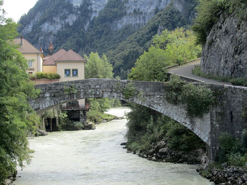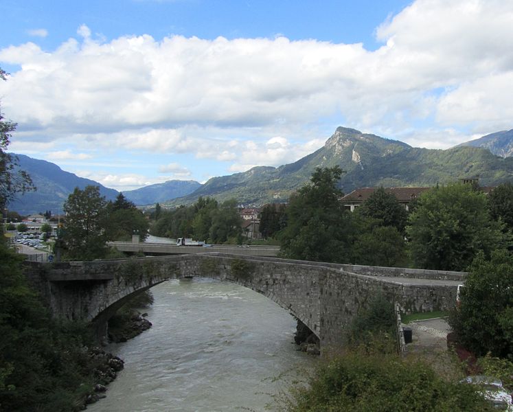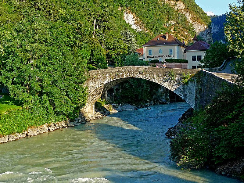 Le Pont Vieux, situé à Cluses en Haute-Savoie, enjambe l'Arve au niveau du début de la cluse géographique. Sa voûte principale a une portée de 25,50 m. Un premier ouvrage a été érigé à l'époque romaine, puis rebâti au Moyen Âge. Le pont actuel date de 1674 et a été restauré en 1833. Une inscription gravée dans la pierre donne le nom de l'architecte. Jusqu'à la construction du pont Neuf en 1850, il constituait le seul passage permettant de traverser l'Arve à cet endroit. L'édifice est inscrit au titre des monuments historiques depuis 1975. Pour des illustrations et des documents visuels, consulter la page Pont Vieux (Cluses) sur Wikimedia Commons. Référence : Serge Montens, Les plus beaux ponts de France, Bonneton, Paris, 2001, p. 49.