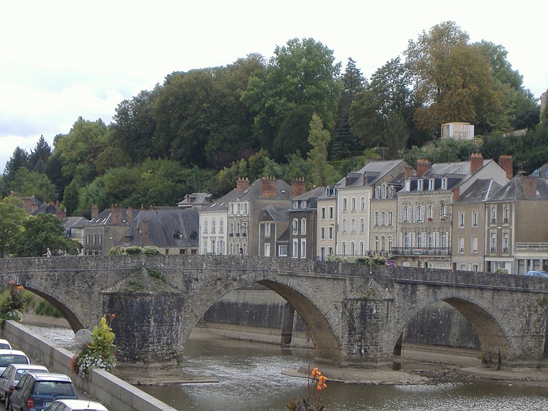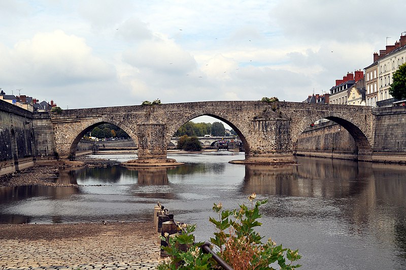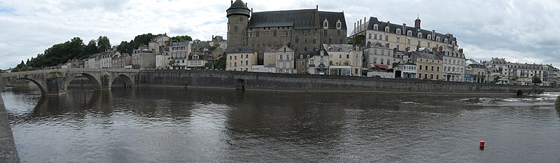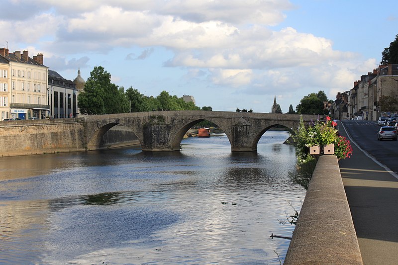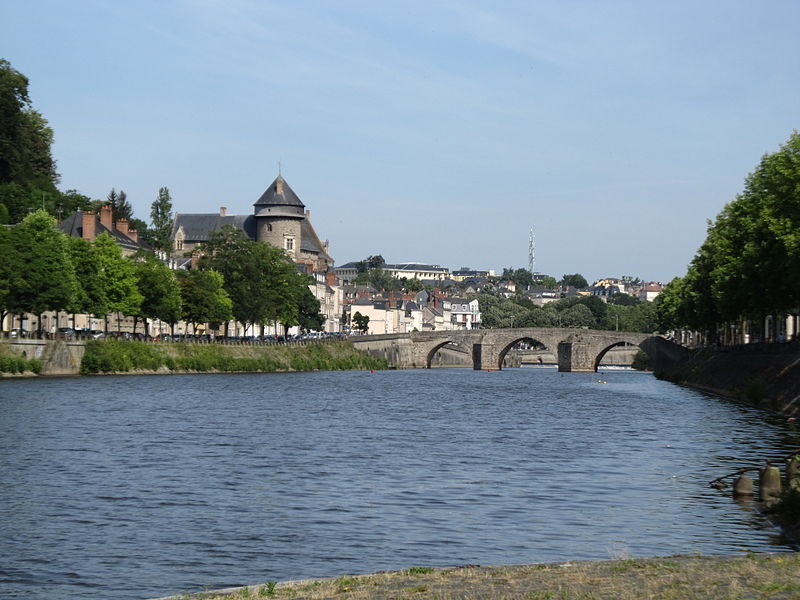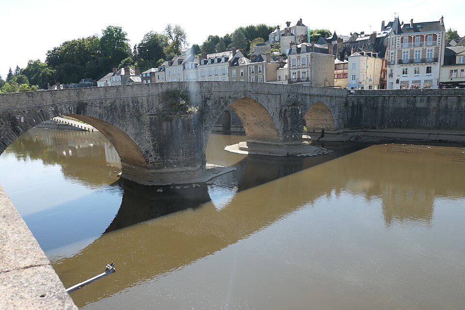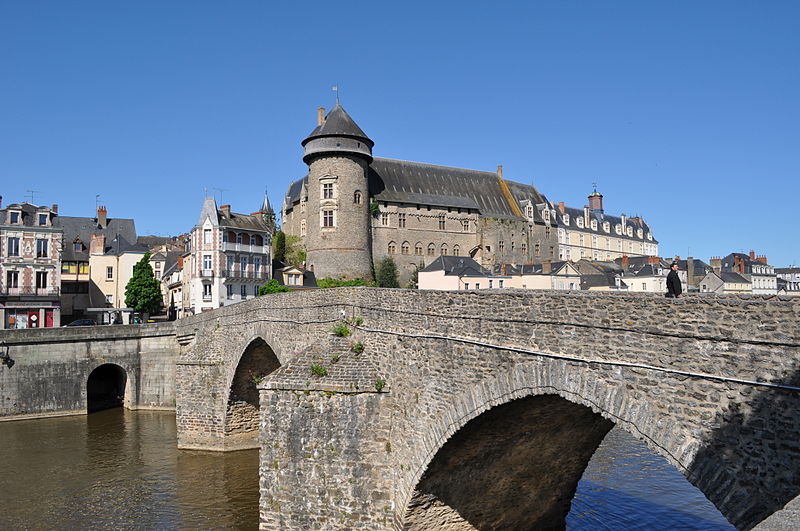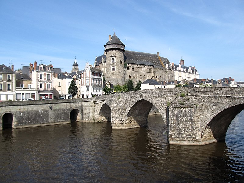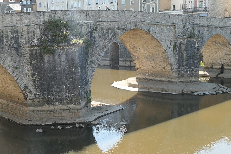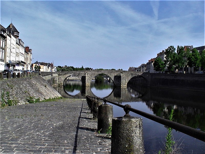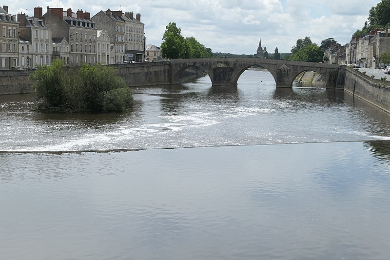 Le Vieux pont sur la Mayenne, à Laval, a été construit au XIIIe siècle près d'un ancien gué et s'est implanté sur la voie romaine entre Le Mans et Corseul. Il commandait l'accès à la Bretagne et jouait un rôle stratégique et commercial important. Sa construction avait été rendue nécessaire après l'édification d'un barrage pour alimenter des moulins, qui avait élevé le niveau de la rivière et submergé le gué. Des travaux de réfection ont eu lieu en 1528, puis à d'autres reprises. À l'origine, l'ouvrage comportait une porte fortifiée, dite Porte du pont Saint-Julien ou Porte du Pont de Mayenne, un pont-levis et des maisons à colombages bâties de part et d'autre de la voie, ce qui rendait la traversée très étroite. La porte et la plupart de ces maisons furent détruites en 1779. La construction d'un second pont fut envisagée à la même époque et aboutit au début du XIXe siècle avec l'édification du Pont Aristide-Briand (ou « Pont Neuf »), au nord du Vieux pont, qui permit de désengorger la vieille-ville. Au XIXe siècle, lors de l'aménagement des quais le long de la Mayenne, le pont fut à nouveau remanié : les dernières maisons médiévales disparurent et sa quatrième arche se retrouva intégrée au quai ouest. Le 6 août 1944, pendant la Libération de Laval, le pont fut partiellement dynamité par les Allemands, puis restauré par la suite. Le Vieux pont est inscrit au titre des Monuments historiques depuis 1926. Il relie la rue du Pont de Mayenne, rive gauche, à la Grande rue, rive droite. Construit en moellons de schiste, il présente trois arches en arc brisé reposant sur des piles à bec.