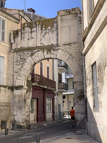 La Porte d'Espagne, dite porte de France, est une porte de ville romaine à Nîmes (Gard), construite au Ier siècle av. J.-C. Elle faisait partie de l'enceinte romaine qui entourait la cité. Moins importante que les deux accès principaux, la porte d'Auguste et la porte du Cadereau, elle desservait une voie secondaire plutôt que la voie domitienne vers l'Hispanie. Malgré son caractère modeste, elle était pourvue d'une herse. Il existait sans doute plusieurs portes de ce type dans la ville ; la porte de France est la seule ayant subsisté. Elle donne son nom à la rue qui la traverse. Classée au titre des monuments historiques par la liste de 1840, elle fait l'objet d'un projet de piétonnisation de la rue à partir de 2024. La porte comporte un passage unique en arc plein cintre et, dans sa partie supérieure, les vestiges de quatre pilastres et d'une corniche. Des ressources et articles connexes évoquent Nemausus, l'enceinte romaine de Nîmes et la liste des monuments historiques de la ville, ainsi que des notices et cartes en ligne comme la base Mérimée et le Digital Atlas of the Roman Empire.