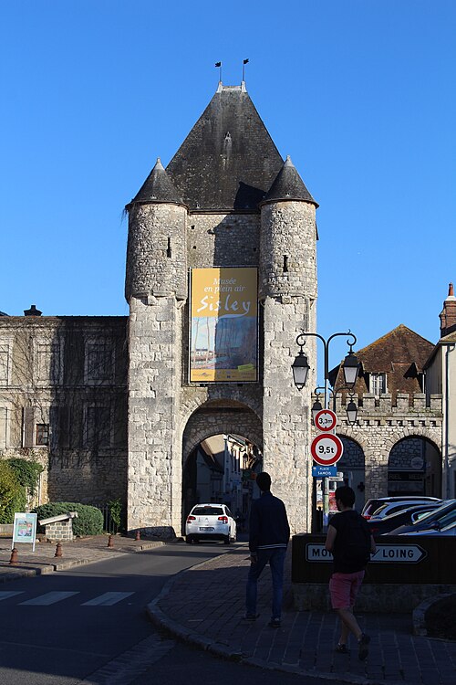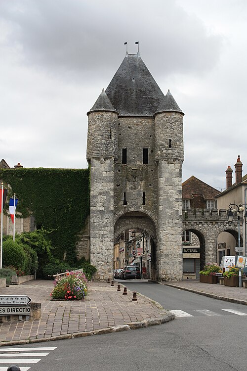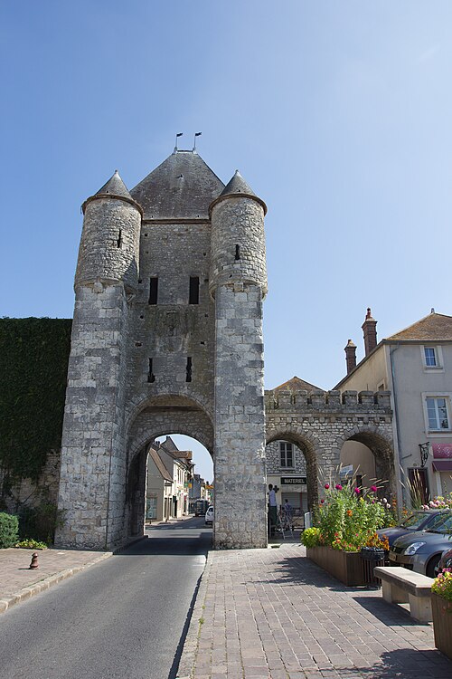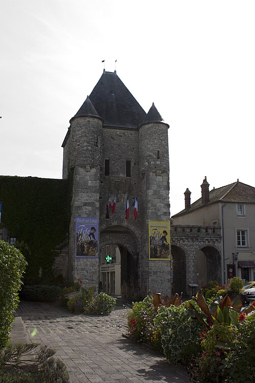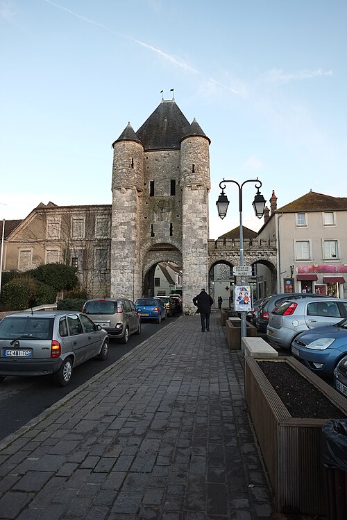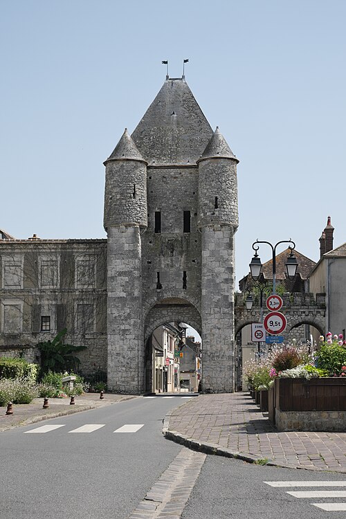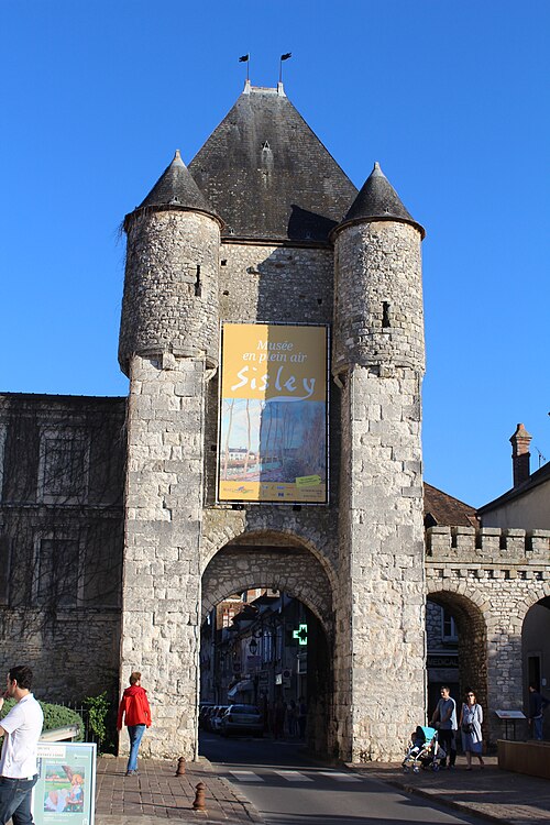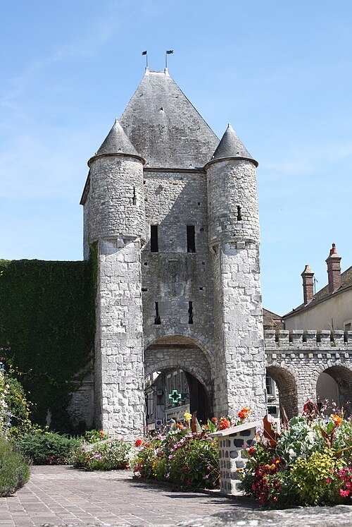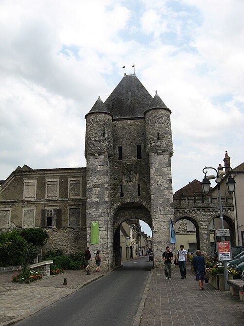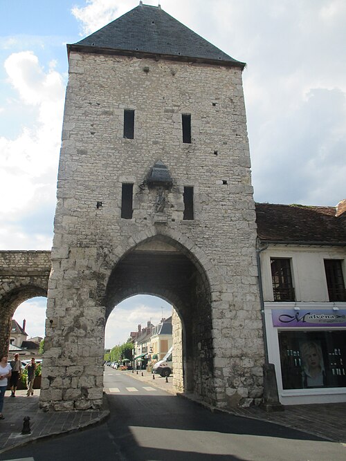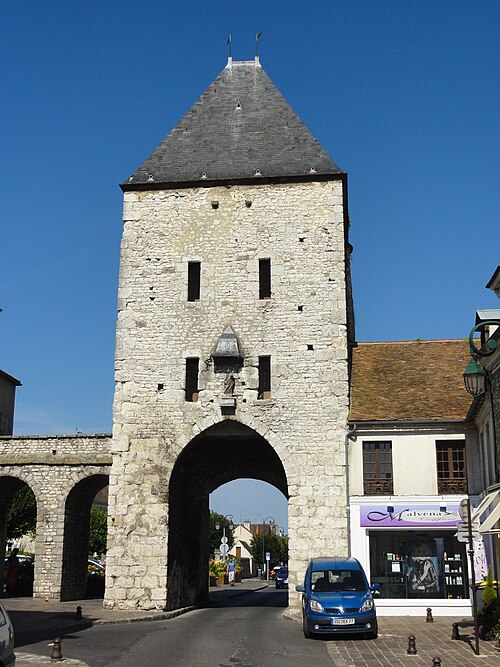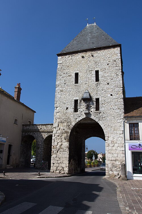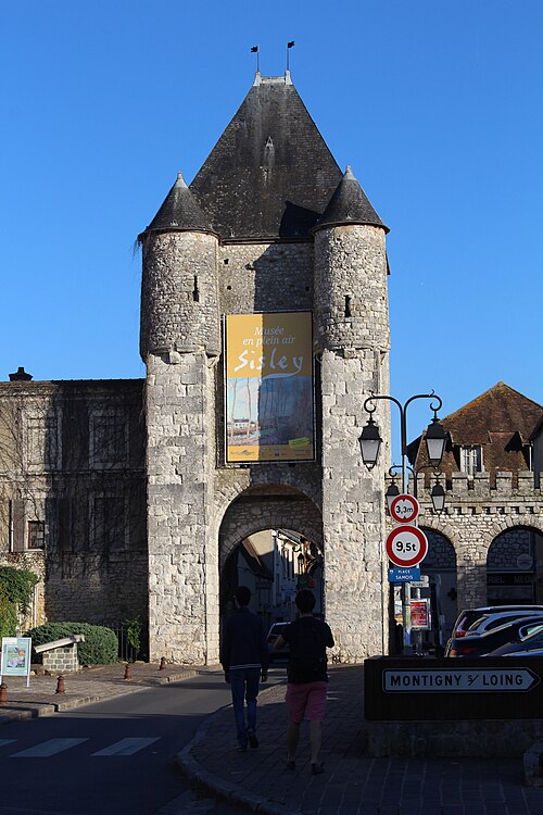 La porte de Samois, dite aussi porte de Paris, est une porte de ville médiévale située à Moret-sur-Loing, commune déléguée de Moret-Loing-et-Orvanne, dans le département de Seine-et-Marne en Île-de-France. Placée sur un axe sud-est / nord-ouest, elle s'ouvre vers l'extérieur en direction de Fontainebleau et, par extension, de Paris, et fait face à la porte de Bourgogne, distante d'environ 300 mètres. Construite au XVe siècle vraisemblablement sous le règne de Charles VII, elle a été élevée en même temps que le reste des fortifications. La porte de Samois est classée au titre des monuments historiques, mentionnée dès la liste de 1840 et protégée par arrêté du 12 juillet 1886. De dimensions et d'architecture proches de celles de la porte de Bourgogne, elle présente un plan carré surmonté d'un toit quadrangulaire. Elle est percée de deux arcades en plein cintre entre lesquelles coulissait une herse. Côté extérieur, deux contreforts massifs flanquent l'édifice et portent des tourelles en encorbellement ; un écusson, fortement dégradé pendant la Révolution, se trouve entre les ouvertures du mécanisme de l'ancien pont-levis. La façade intérieure, sobre et dépourvue de tourelles ou de contreforts, comporte une niche abritant une statue de la Vierge à l'Enfant posée sur un socle saillant. Ce socle porte l'inscription gravée « Uni Sfat spes beati » et la date 1556. Des photographies et panoramas montrent la porte en 1925, ses vues extérieures et intérieures, le détail de la façade et la Vierge à l'Enfant.