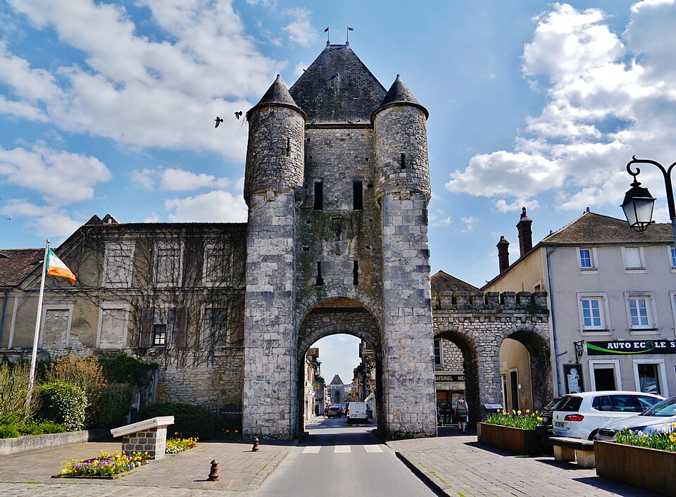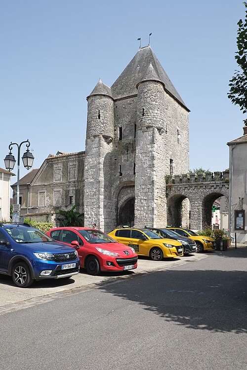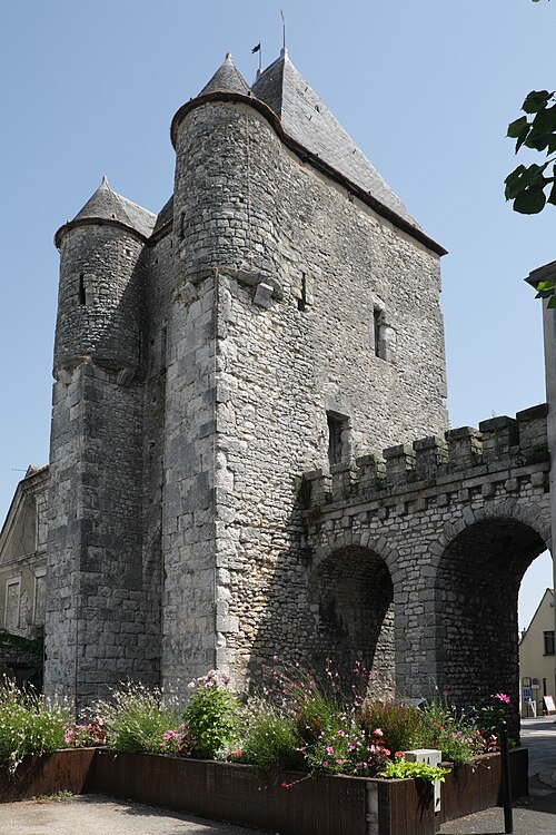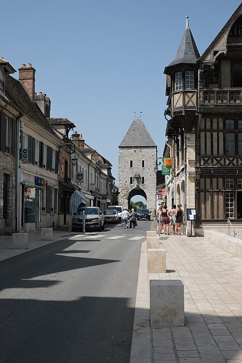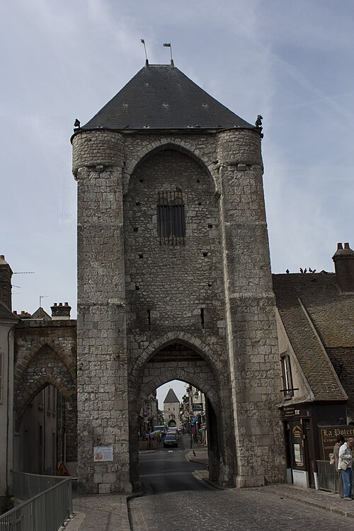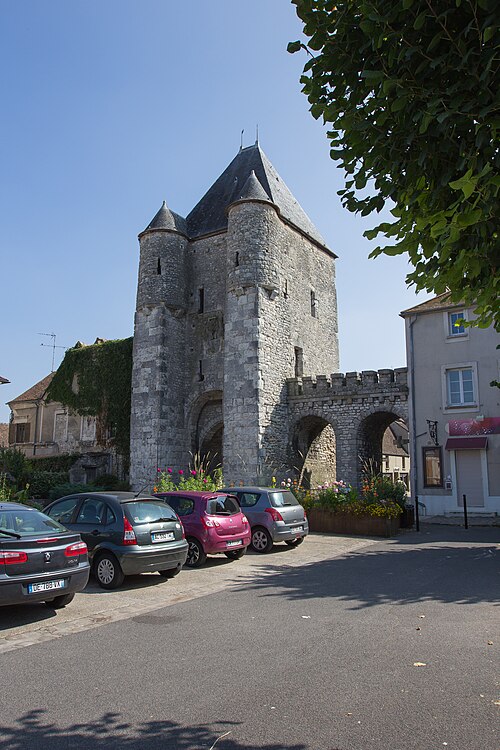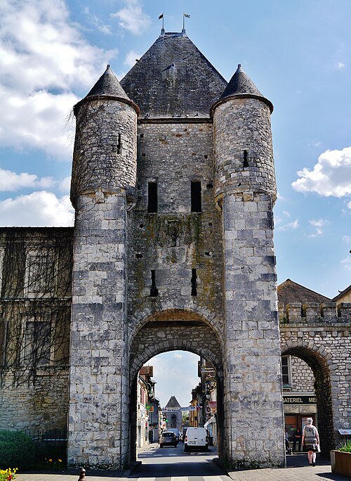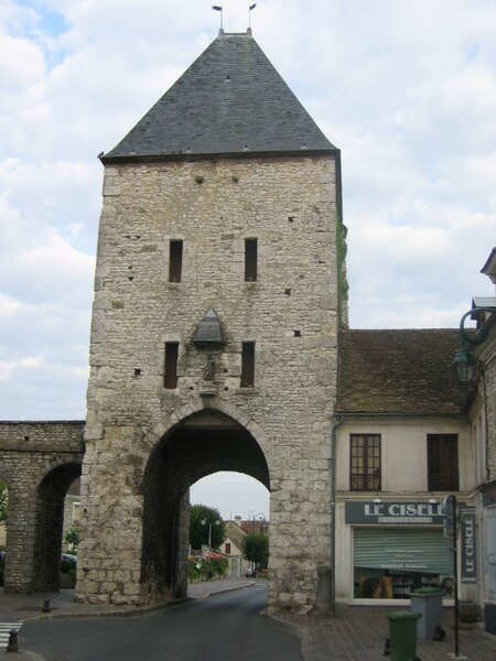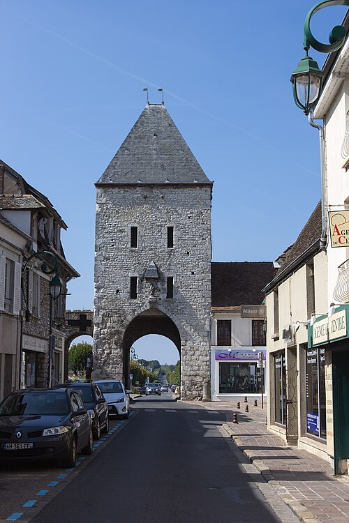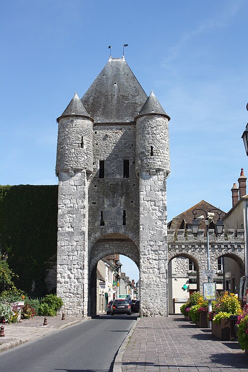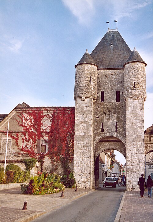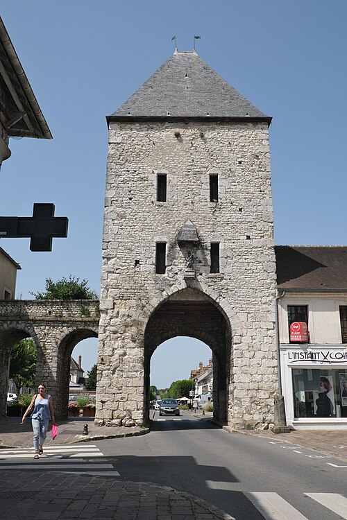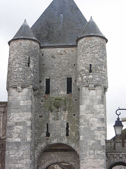 La porte de Samois, dite aussi porte de Paris, est une porte de ville médiévale située à Moret-sur-Loing, commune déléguée de Moret-Loing-et-Orvanne, dans le département de Seine-et-Marne en Île-de-France. Placée sur un axe sud-est / nord-ouest, elle s'ouvre vers l'extérieur en direction de Fontainebleau et, par extension, de Paris, et fait face à la porte de Bourgogne, distante d'environ 300 mètres. Construite au XVe siècle vraisemblablement sous le règne de Charles VII, elle a été élevée en même temps que le reste des fortifications. La porte de Samois est classée au titre des monuments historiques, mentionnée dès la liste de 1840 et protégée par arrêté du 12 juillet 1886. De dimensions et d'architecture proches de celles de la porte de Bourgogne, elle présente un plan carré surmonté d'un toit quadrangulaire. Elle est percée de deux arcades en plein cintre entre lesquelles coulissait une herse. Côté extérieur, deux contreforts massifs flanquent l'édifice et portent des tourelles en encorbellement ; un écusson, fortement dégradé pendant la Révolution, se trouve entre les ouvertures du mécanisme de l'ancien pont-levis. La façade intérieure, sobre et dépourvue de tourelles ou de contreforts, comporte une niche abritant une statue de la Vierge à l'Enfant posée sur un socle saillant. Ce socle porte l'inscription gravée « Uni Sfat spes beati » et la date 1556. Des photographies et panoramas montrent la porte en 1925, ses vues extérieures et intérieures, le détail de la façade et la Vierge à l'Enfant.