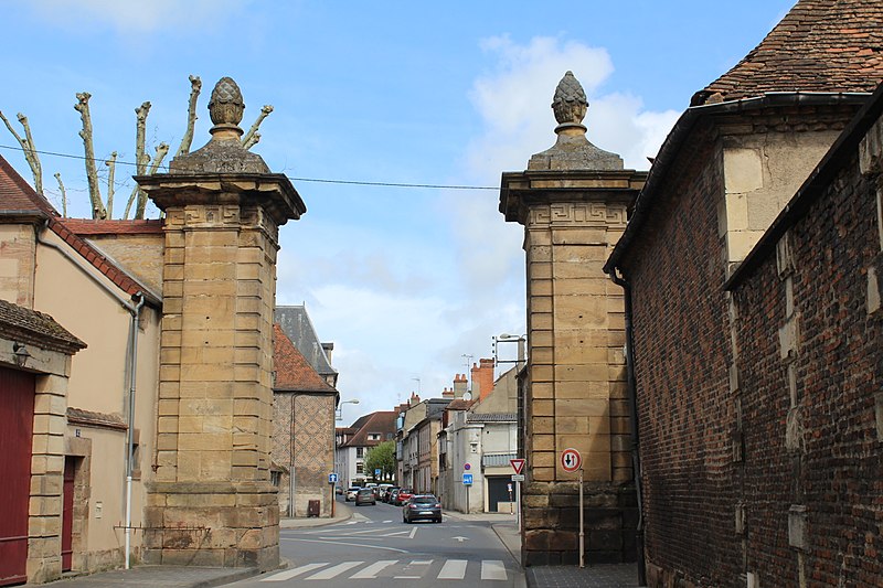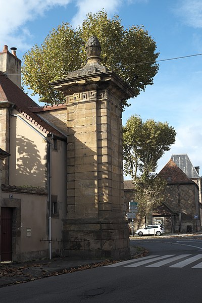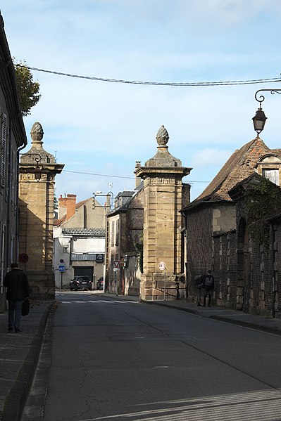 La porte de Paris est une porte de ville située à Moulins (Allier, Auvergne-Rhône-Alpes), constituée de deux colonnes monumentales carrées en pierre dressées de part et d'autre de la rue de Paris dans la seconde moitié du XVIIIe siècle pour marquer symboliquement l'entrée de la ville. Au XVIIe siècle, les faubourgs de Moulins s'étant étendus au-delà de l'enceinte, il fut décidé d'y ajouter une seconde enceinte qui ne fut finalement pas achevée ; sa partie nord s'arrêta au niveau de la rue de Paris. À cet emplacement furent élevées deux tours de part et d'autre de la route de Paris ; elles semblent inachevées : la tour Est fut détruite au XIXe siècle et la base de la tour Ouest subsiste, ayant servi de glacière. Jacques de Flesselles, intendant de la généralité de Moulins, fit alors édifier une porte symbolique composée de deux colonnes de pierre ; les travaux, dirigés par le maçon Martin, commencèrent en juillet 1764 et s'achevèrent l'année suivante. La rue de Paris était l'une des voies principales de la ville, bordée d'auberges, de couvents et d'hôtels particuliers ; l'hôtel Héron, dont une partie est accolée à la colonne Est, est la maison natale du maréchal de Villars (1653-1734). Placée sur la route royale reliant Paris à Lyon — correspondant en partie à l'actuelle route nationale 7 — la porte servait de cadre à des cérémonies lors des arrivées ou des départs de personnages importants. La première manifestation officielle semble avoir eu lieu en 1771 lors du départ de la princesse Marie-Joséphine de Savoie, escortée de la porte jusqu'à Villeneuve par des cavaliers de la Reine et la maréchaussée ; en 1773 une cérémonie comparable accompagna le passage de sa sœur Marie-Thérèse de Savoie, honorée par la milice bourgeoise. Pendant la Révolution, en l'an II (1793-1794), les armoiries sculptées sur les pilastres furent détruites. À la fin du XIXe et au début du XXe siècle, les façades adjacentes à la porte, du côté nord, servaient de support à des panneaux publicitaires, comme en témoignent des photographies et cartes postales de l'époque. La porte de Paris est protégée au titre des monuments historiques depuis le 9 décembre 1929.