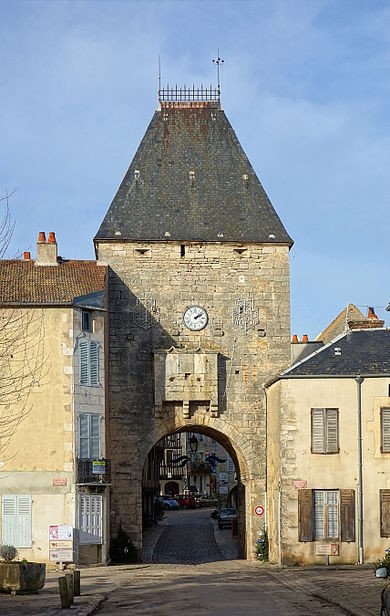 La porte de ville de Noyers‑sur‑Serein, dite porte d'Avallon, porte du Midi ou porte Peinte, se situe au sud‑est du bourg. Elle est contemporaine des remparts édifiés à la fin du XIIe siècle par Hugues de Noyers, évêque d'Auxerre et tuteur de Miles VII, et la construction de l'enceinte ainsi que de ses ponts et portes est attestée par la charte de fondation de Miles VIII en 1232. La charte précise que le seigneur accorde divers droits aux habitants et que ceux‑ci doivent acquitter la moitié des frais de construction de l'enceinte, depuis la porte de Venoise jusqu'à la Porte de Noyers‑ville et jusqu'à la Porte de la Rue, le sire prenant en charge l'autre moitié et s'engageant à construire les ponts. En 1376, les habitants se plaignent que leur seigneur refuse de participer au financement de l'entretien des murailles. Les fortifications ont été restaurées à plusieurs reprises, notamment au XVe siècle, période pendant laquelle le duc de Bourgogne accorda à la ville la remise de certains impôts : "la petite pinte sur le vin, celui de la maille sur le pain et celui du sel vendu au grenier". L'enceinte comprenait vingt‑trois tours et trois portes. L'accès sud était défendu par la Tour des Enfants Perdus, détruite en 1805 ; l'arpenteur Marat, en 1713, la décrivait ainsi : "sous ce pavillon sont 3 portes sans aucune fermeture, la 1ère est celle au‑devant de laquelle se levait autrefois ledit pont‑levis, la 2e porte a communication aux avenues du Pré de l'Echelle et la 3e porte a communication au pavé et levée qui va du côté de la Porte Peinte". La Porte Peinte, entièrement rebâtie au XVe siècle, était autrefois ornée de deux panonceaux peints aux armes seigneuriales, d'où son appellation, et un pont‑levis y fut ajouté en 1491. Au nord, deux portes encadraient la colline Saint‑Georges, site du château : la Porte de la Rue (ou Porte de Tonnerre) et la Porte de Venoise, aujourd'hui disparue ; Marat décrit la tour de Venoise et son corps de garde, neuvième tour à partir de la Porte Peinte, comme une "tour voûtée et une chambre sur la voûte où il y a une cheminée". En 1778, les herses et les portes de la ville furent démontées. L'édifice est inscrit au titre des monuments historiques en 1926.