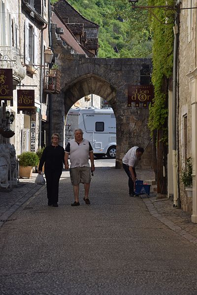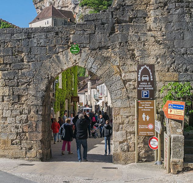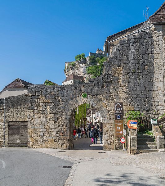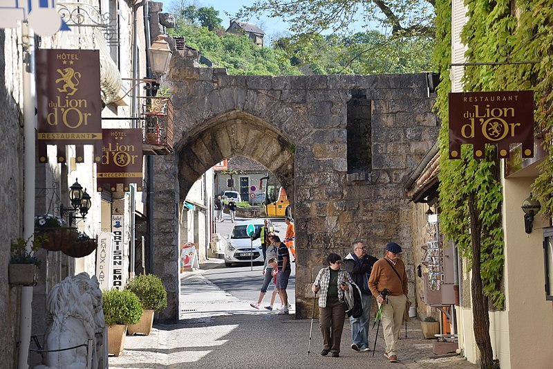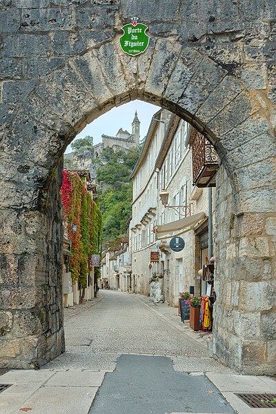 Porte située à l'extrémité haute du village et attenante au rempart, la Porte dite du Figuier est mentionnée dans la charte de 1303 (J. Rocacher, 1979, p. 234). Elle est évoquée en même temps que la porte Hugon, dont les dispositions sont similaires. Sa construction est attribuée au XIIIe siècle.