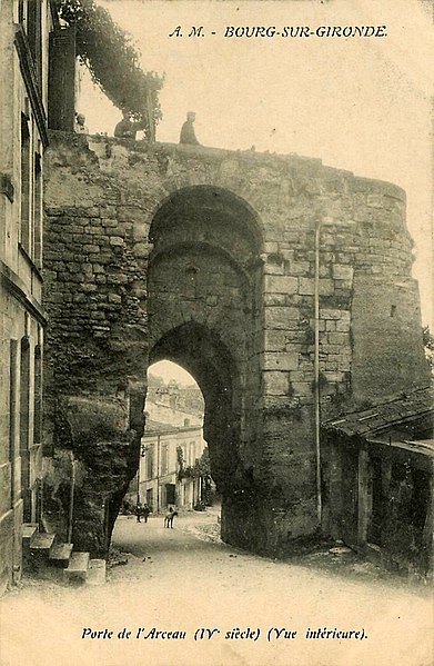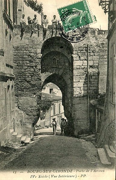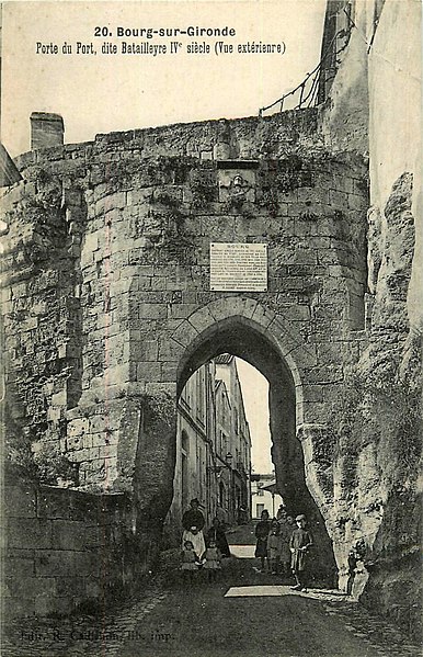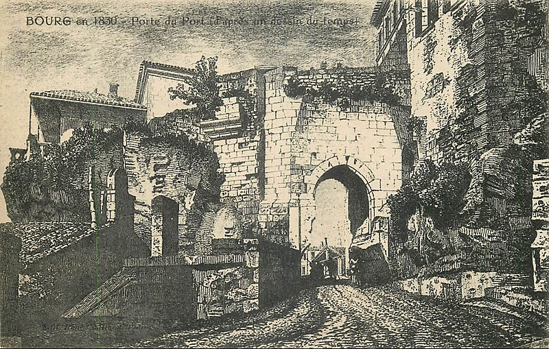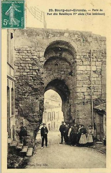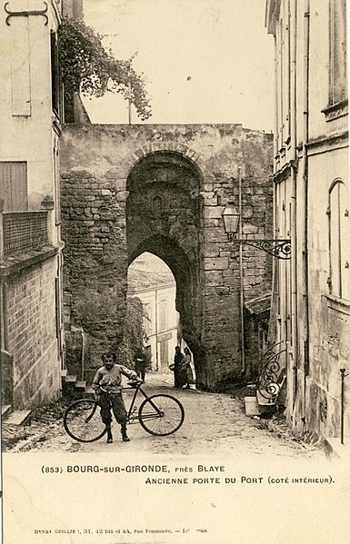 Des vestiges des remparts de Bourg subsistent aux deux extrémités de la ville : la porte du Port, qui domine les quais de la Gironde, et l'autre porte, qui défendait la route menant à Blaye et a conservé le nom de cette ville. La porte du Port est le dernier reste des fortifications édifiées au XIIIe siècle pour protéger la cité. De cette époque jusqu'à la fin du XVIe siècle, ces remparts ont subi dix sièges, dont les dates sont rappelées sur une plaque commémorative. Les piédroits de la porte ont été entaillés pour élargir le passage.