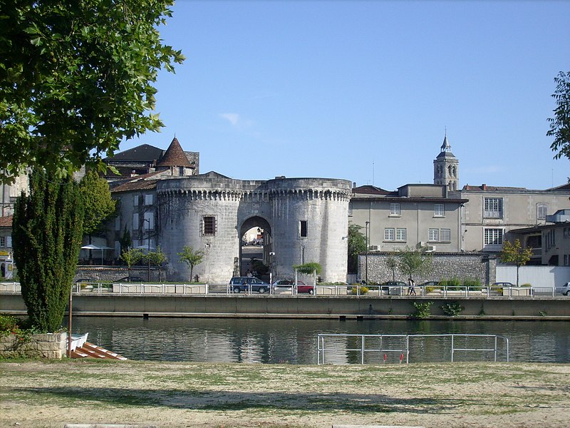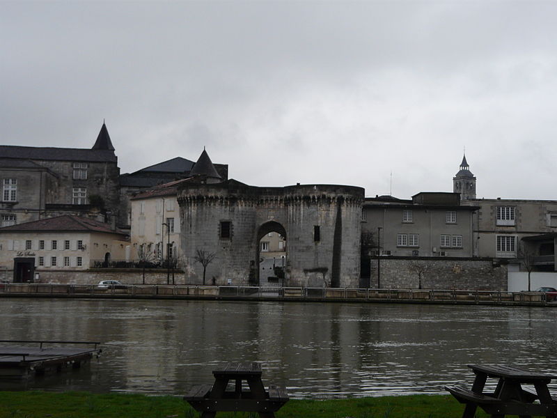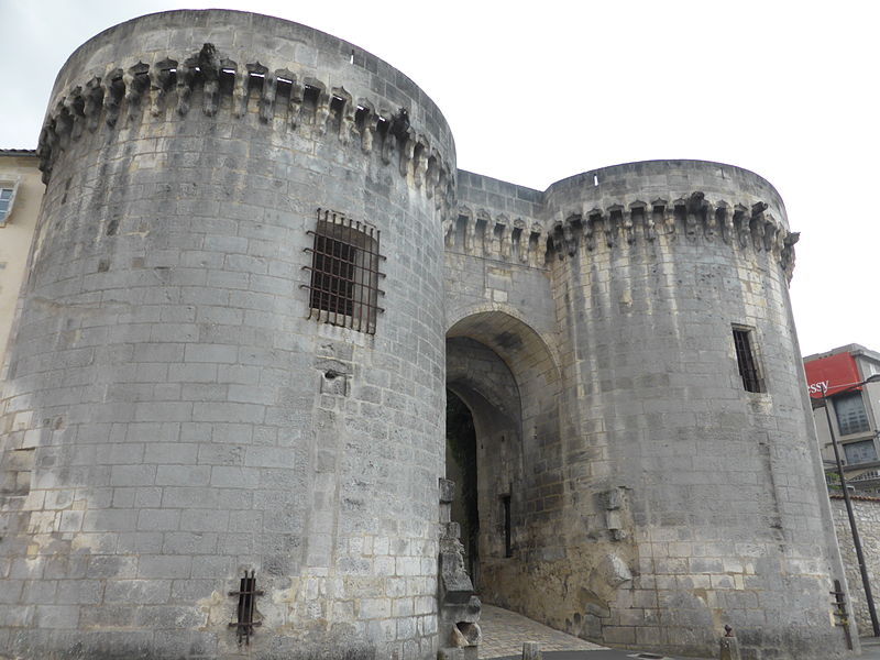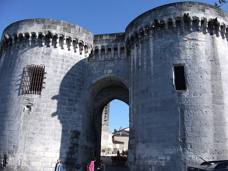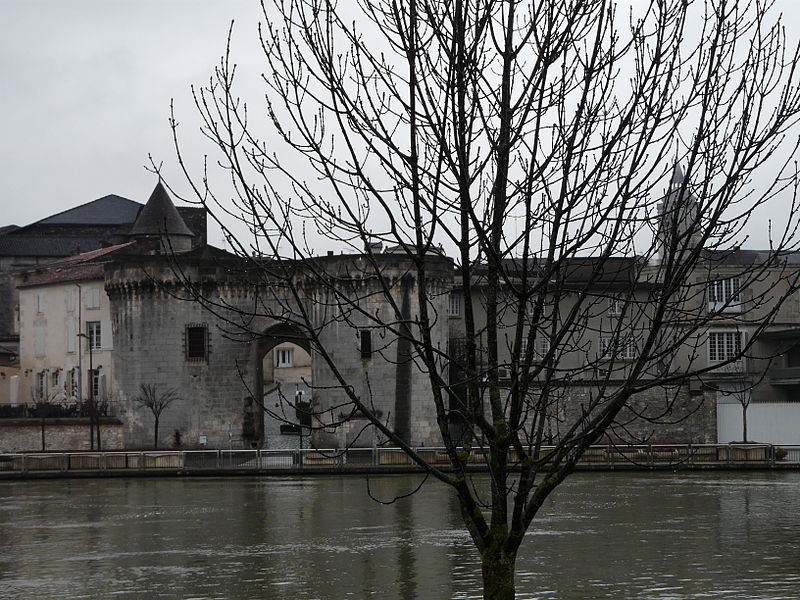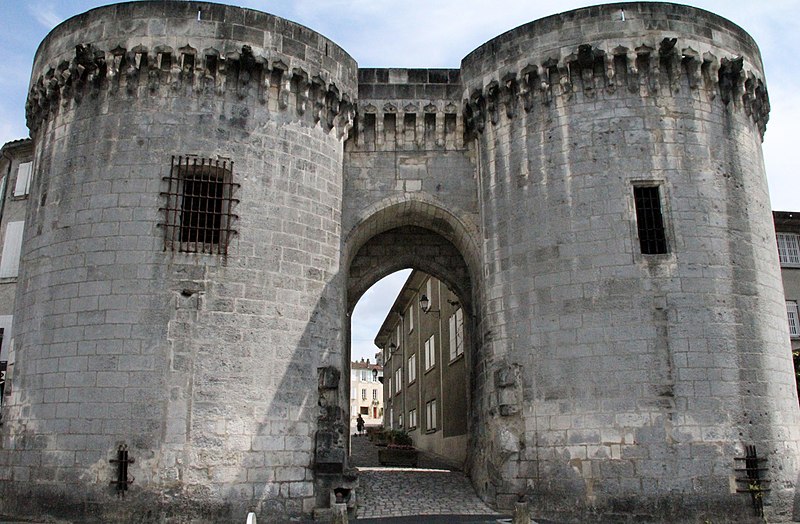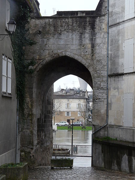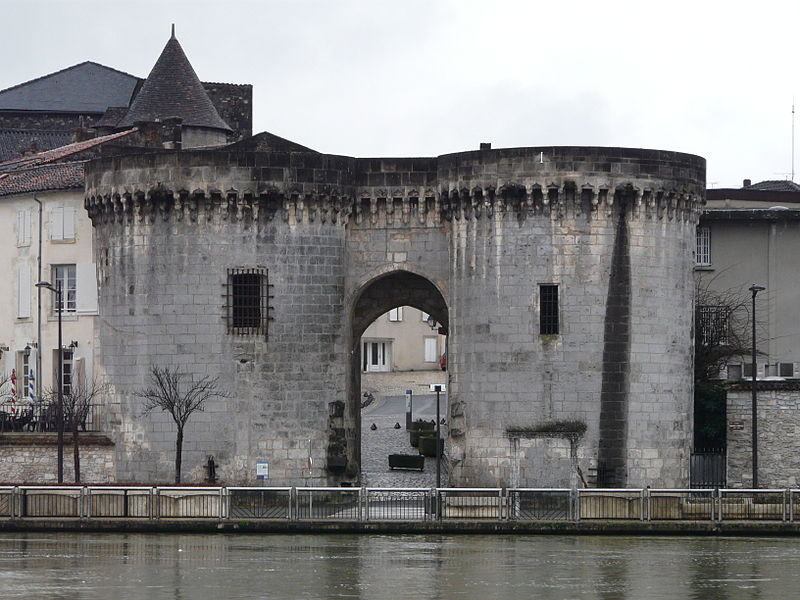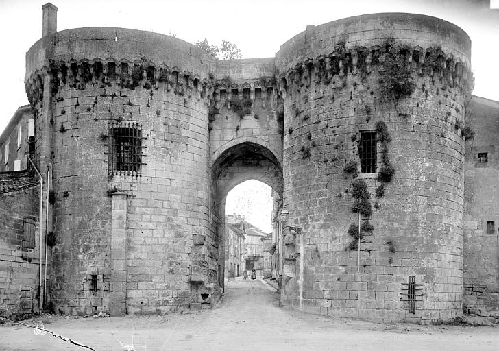 La Porte et les tours du Vieux-Port, également appelées porte Saint-Jacques, se dressent sur les quais de la Charente à Cognac. Elles constituent l'un des rares vestiges des fortifications de la ville et faisaient partie de l'enceinte urbaine. Au Moyen Âge, Cognac était protégée par des murailles adossées au fleuve et percées de trois portes : Saint-Martin au sud, angoumoisine à l'est et Saint-Jacques à l'ouest. Un pont reliait la ville au quartier Saint-Jacques de l'autre côté de la Charente, donnant directement sur cette porte. Les premières tours, de plan carré, datent du XIIe siècle ; vers 1500 elles ont été élevées dans leur forme ronde actuelle. Le pont médiéval a été détruit en 1855 ; un pont neuf avait été achevé en 1850. Des travaux ont été entrepris au XIXe siècle, notamment en 1816, de 1819 à 1824 sous la direction de Paul Abadie, puis de 1828 à 1839, en 1897 et en 1972. Après la Révolution, les tours ont servi de prison de 1789 à 1860. La porte et les tours ont été inscrites au titre des monuments historiques par arrêté du 15 mai 1925. La porte Saint-Jacques a été retenue le 30 août 2021 parmi les monuments bénéficiaires du Loto du patrimoine et, en décembre 2021, la Mission Bern a accordé une subvention de 250 000 euros à la communauté de communes Grand Cognac pour aider à la rénovation. Les travaux de rénovation ont débuté en décembre 2023. La porte présente un arc légèrement brisé, flanqué de deux tours surmontées d'une ligne de mâchicoulis qui se prolonge au-dessus de la porte elle-même. Les corbeaux, formés de trois assises, sont reliés par des arcs ornés d'accolades et de motifs en coquille. L'ouvrage est réalisé en blocage, avec un parement en pierre de taille de calcaire local. Chaque tour comprend deux salles voûtées en berceau plein-cintre et une terrasse dallée. Des gargouilles complètent l'ornementation sculptée.