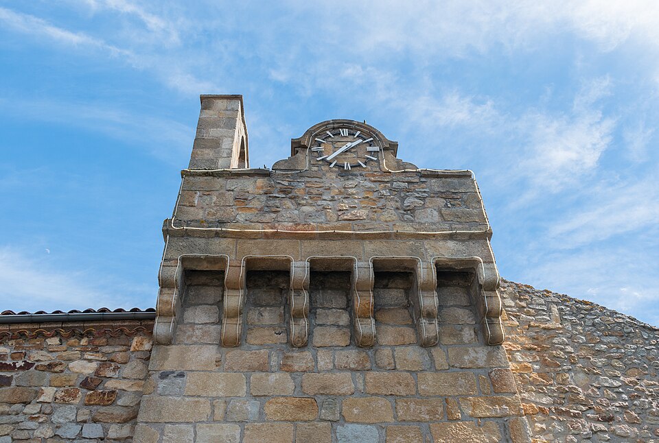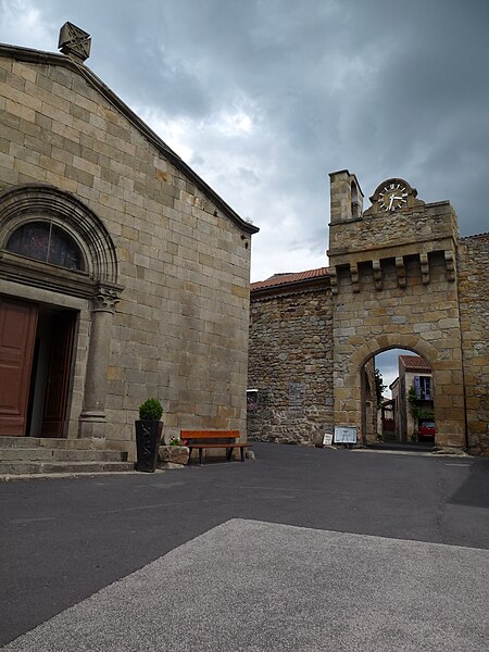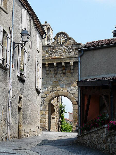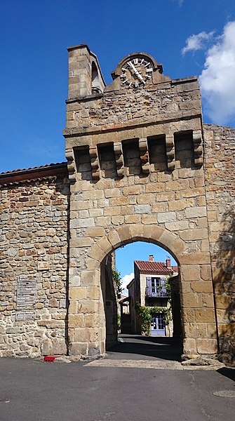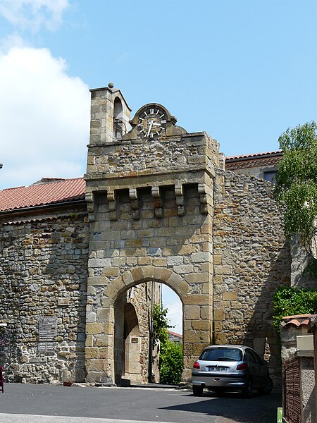 La porte fortifiée de Montpeyroux est une porte de ville située dans le village de Montpeyroux (Puy-de-Dôme), à proximité de l'église. Elle constituait l'entrée principale, au nord-ouest, de l'enceinte établie sur une butte de forme ovoïde et destinée à contenir les maisons du lieu ; le mur était flanqué, à intervalles, de petites tours. L'ouvrage présente un arc bombé et, sur sa face ouest, un mâchicoulis ; sa partie supérieure a été découronnée. L'accès se faisait par un escalier. Du côté nord, un petit mur percé d'une baie renferme une cloche, et, à l'intérieur de l'enceinte, la porte est surmontée d'une petite ouverture à encadrement de pierre mouluré. Le sommet est orné, de chaque côté, d'une horloge. La porte date du XIVe siècle. L'édifice est inscrit au titre des monuments historiques depuis le 25 juin 1951.