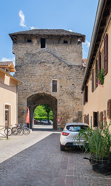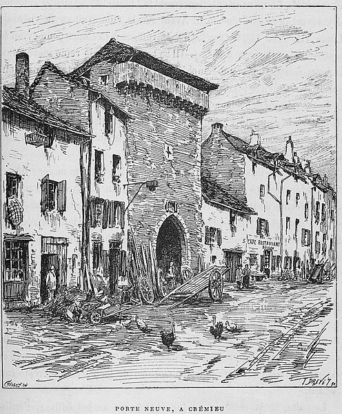 La porte François Ier, dite Porte Neuve, est une porte de ville médiévale située à Crémieu (Isère), sur le boulevard de la Porte Neuve à l'est de la cité. À l'époque médiévale, elle faisait vraisemblablement partie du système défensif de la ville, qui comprenait neuf portes et quatorze tours de guet. Percée sous une tour de l'enceinte en 1535, elle fut inaugurée en 1536 lors d'un des passages de François Ier à Crémieu. Cette ouverture a été créée pour recentrer l'accès ouest de la ville, précédemment desservi par la porte de Quirieu située à quelques dizaines de mètres. La porte est protégée au titre des monuments historiques par un arrêté du 11 septembre 1906. La tour est construite en pierre calcaire et coiffée d'un toit de lauze posé sur une charpente. En hauteur subsistent des mâchicoulis et un chemin de ronde, vestiges des dispositifs défensifs médiévaux. À mi-hauteur de la tour, le trou d'une canonnière témoigne de l'adaptation aux armes à poudre. La percée qui constitue la porte n'est pas alignée au centre de l'axe de la tour mais légèrement excentrée. La documentation comprend des illustrations anciennes de la porte de Lyon datant du XIXe siècle et de la fin du XIXe/début du XXe siècle, ainsi que des vues extérieures et intérieures. Des ressources en ligne, notamment la base Mérimée, le portail de l'Isère, le Portail du Moyen Âge et le portail des monuments historiques français, complètent les informations, de même que les notices relatives à la liste des monuments historiques de Crémieu, à la porte de ville et à la porte de Lyon (Crémieu).