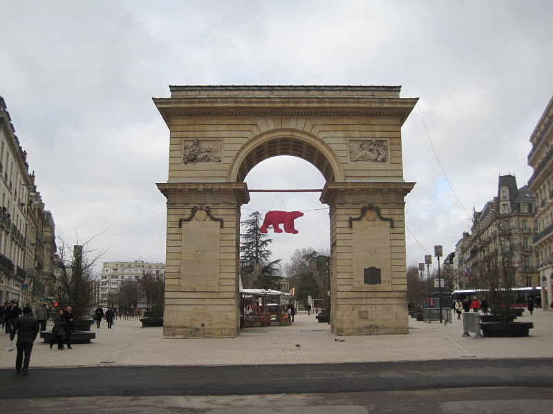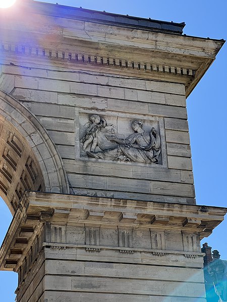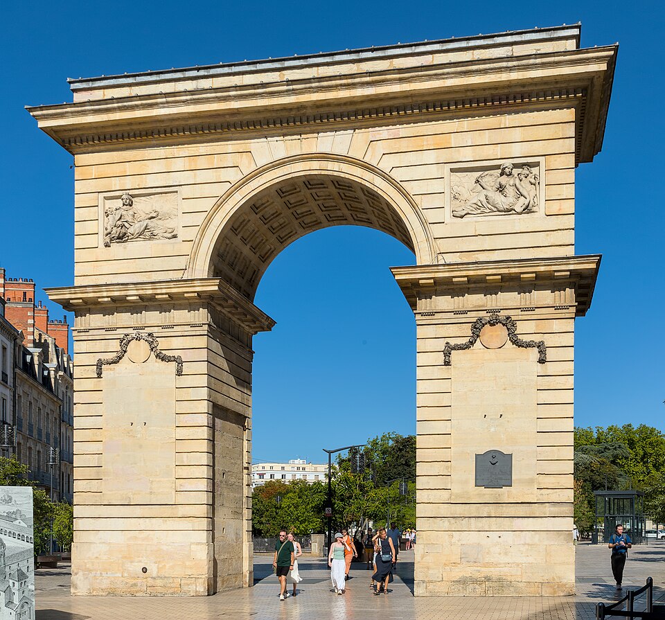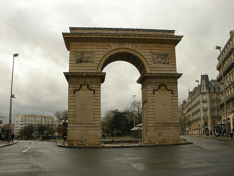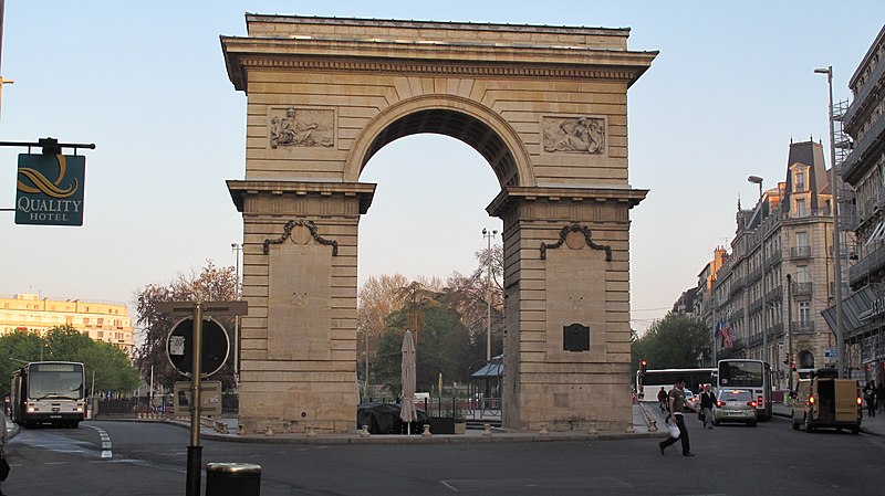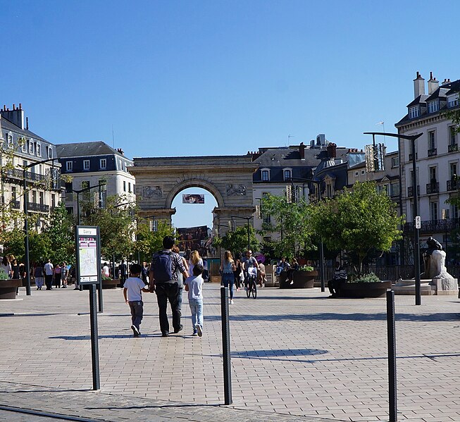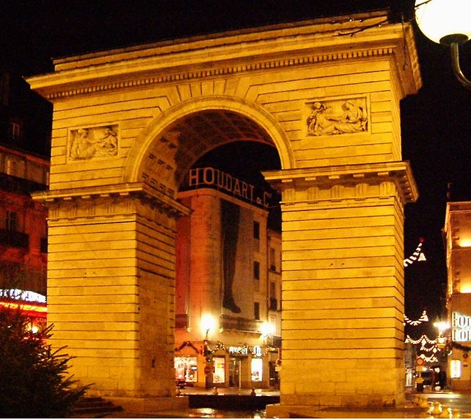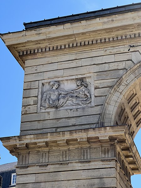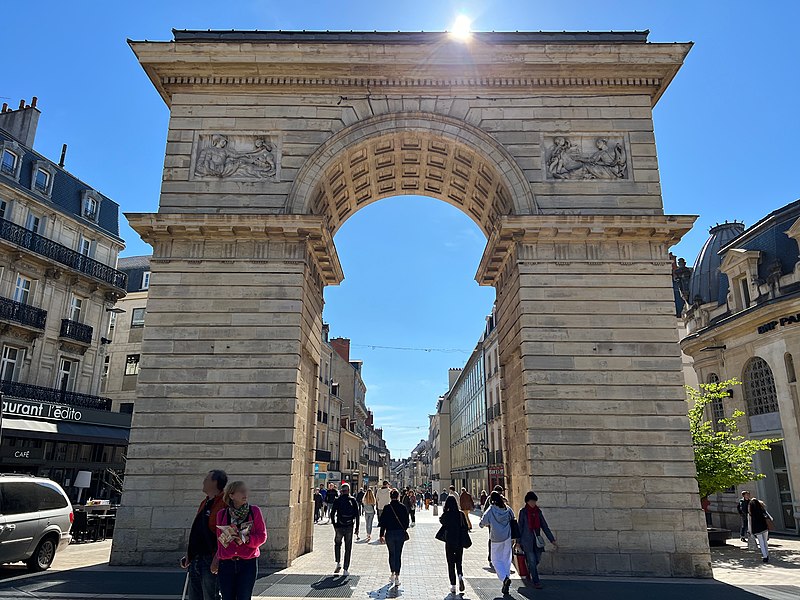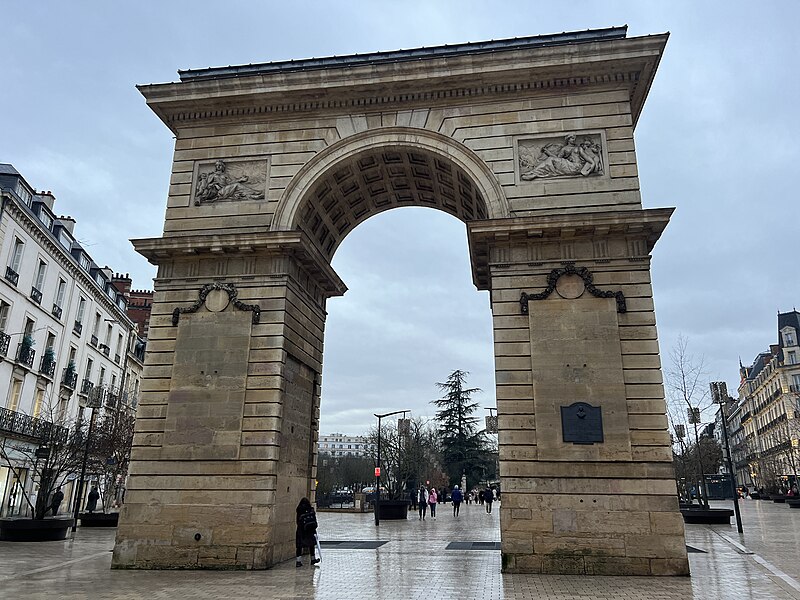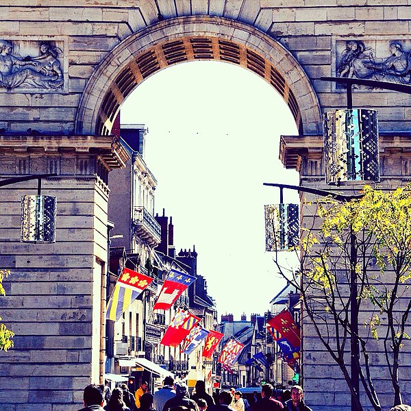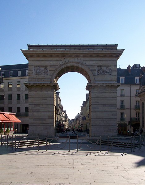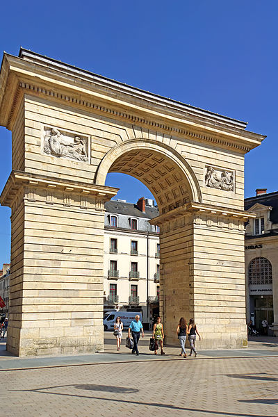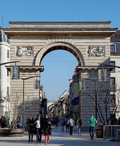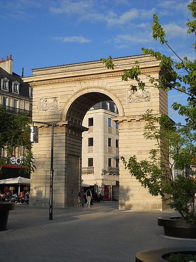 La Porte Guillaume est une porte de ville de Dijon, édifiée au XVIIIe siècle à l'emplacement d'une ancienne porte médiévale. L'architecte Jean-Philippe Maret la fait construire de 1786 à 1788 en hommage au prince de Condé, et l'édifice porte alors le nom de Porte Condé ; il était relié aux remparts par des murs et fermé par une grille dont on voit encore les traces de scellement. En 1791, pendant la Révolution, la porte devient l'arc de la Liberté, puis prend au XIXe siècle le nom de Porte Guillaume, en référence à Guillaume de Volpiano, abbé de l'abbaye Saint-Bénigne. Sous la Première Restauration, en septembre 1814, la ville fit apposer une composition en plâtre due à l'architecte Jacques Caumont : un génie ailé tenant un lys, debout sur un char traîné par des chevaux ; ce décor subsista quelques années avant de s'effriter sous les intempéries. La façade est percée d'une grande arcade cintrée dont les piédroits présentent des bossages continus en tables, surmontés d'un entablement de style dorique orné de triglyphes et de métopes. Au niveau de l'arcade, quatre bas-reliefs du sculpteur Claude-François Attiret ornent les deux faces : côté place Darcy, un génie présente à la Bourgogne les armes du prince de Condé tandis qu'un autre montre un document à Minerve ; sur l'autre face, la muse de l'Histoire écrit les hauts faits militaires du prince et une allégorie de la ville de Dijon expose les armes longtemps bûchées à la Révolution. Du côté de la rue de la Liberté, les piédroits portaient à l'origine deux tableaux de marbre gravés d'inscriptions, maintenant disparus, couronnés de médaillons et de guirlandes de feuilles de chêne ; à l'emplacement du tableau de droite a été apposée en 2009 une plaque métallique sans rapport avec le monument, rappelant la mémoire de Thomas Jefferson et l'amitié franco‑américaine. La Porte Guillaume est classée au titre des monuments historiques depuis le 27 juillet 1938.