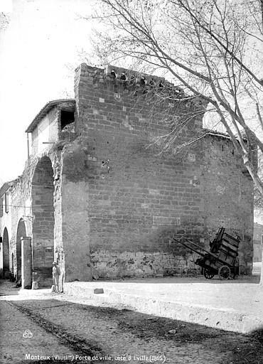 La Porte Neuve de Monteux, anciennement appelée porte Notre-Dame, est l'un des vestiges des remparts de Monteux (Vaucluse) et est classée parmi les monuments historiques depuis 1875. Elle faisait partie des fortifications du XIVe siècle et, avec la porte d'Avignon, assurait l'accès à la ville. Au XVIIe siècle, la porte a été doublée côté intérieur, de sorte qu'elle présente deux styles distincts : un intérieur de la fin du XVe siècle et un extérieur de style Renaissance. Sa voûte a été reconstruite en 1730 et rénovée en 2019. Lorsque les remparts furent détruits en 1840, seuls subsistèrent la porte d'Avignon, la poterne de la boucherie et la Porte Neuve. En 1854, la porte faillit être rasée mais fut finalement conservée sur ordre du préfet, sous la pression populaire. La muraille qui l'entoure a une épaisseur d'environ 1,50 m et une hauteur d'environ 10 m. Elle était vraisemblablement protégée par un pont-levis franchissant un fossé, comme l'attestent les passages de chaînes. La justice se rendait sous son porche. Des vues connues présentent la porte au début du XXe siècle, une tourelle d'angle, la perspective intérieure et une vue d'ensemble.