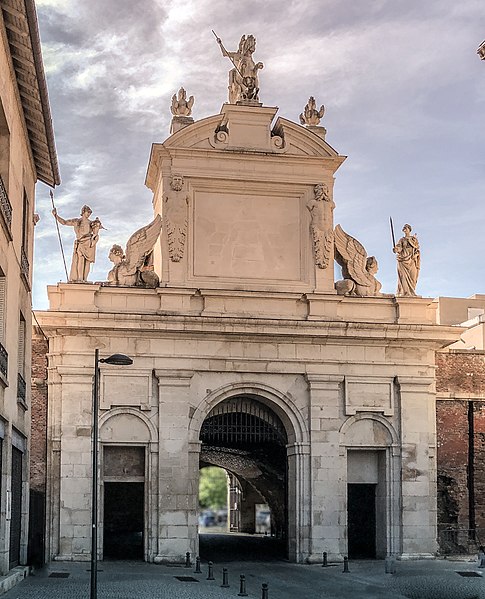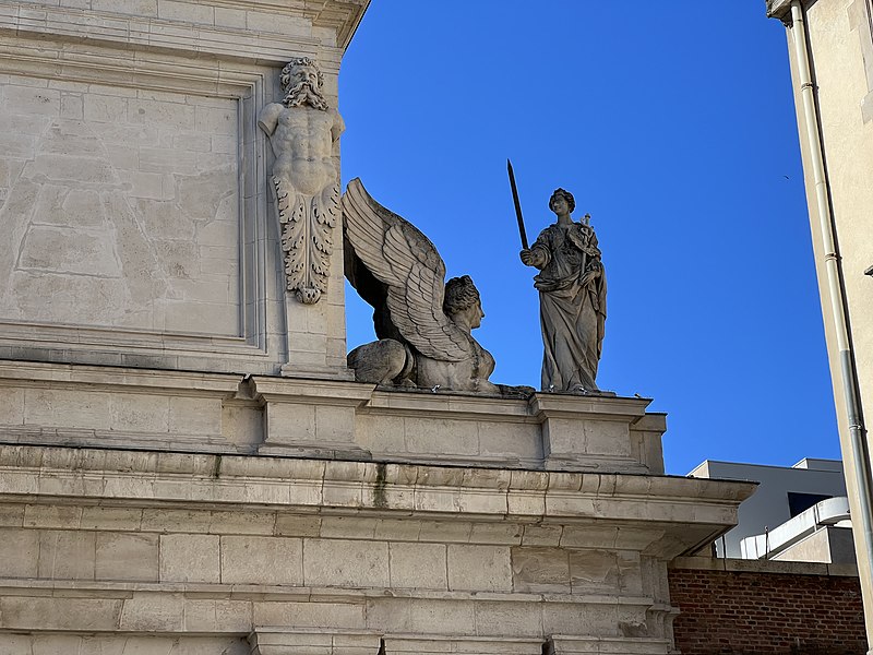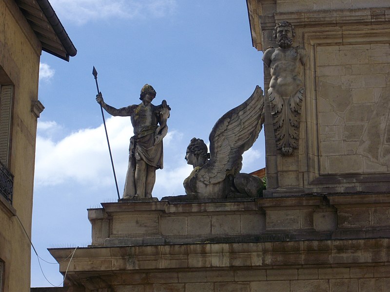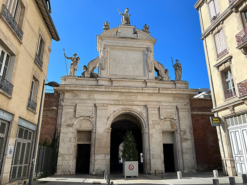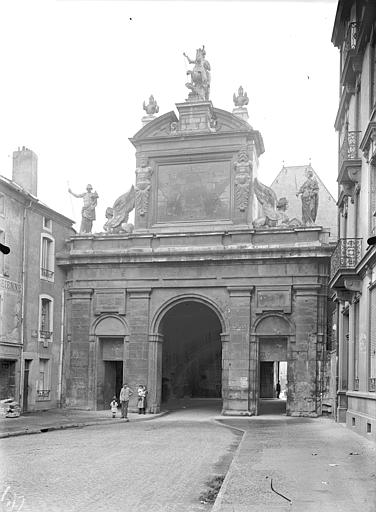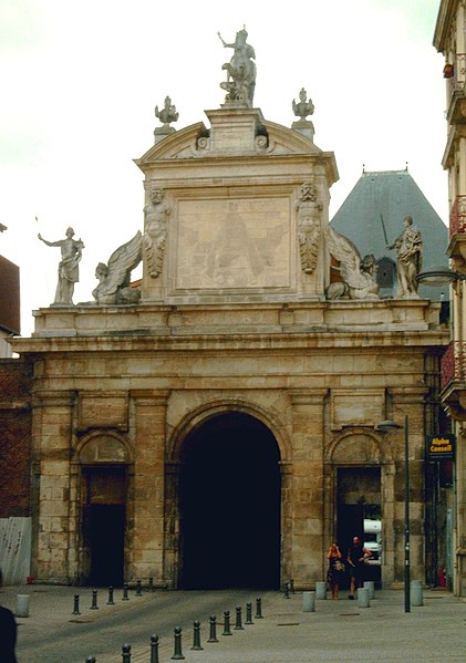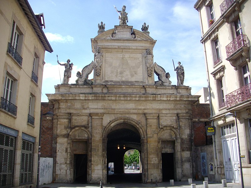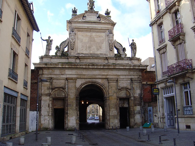 La porte Saint‑Georges est une porte de Nancy, érigée au tout début du XVIIe siècle à l'est de la ville neuve. Elle se situe place Saint‑Georges, à l'extrémité ouest de l'avenue du XXe Corps, à l'intersection avec la place du Colonel‑Driant et à proximité de la rue Saint‑Georges. La façade monumentale, de composition d'ordre toscan et marquée par l'influence de Jean‑Baptiste Stabili, est surmontée d'un fronton couronné par la statue équestre de Saint Georges, œuvre de Florent Drouin. De part et d'autre du fronton se trouvent des allégories de la guerre et de la paix sculptées par Jean Richier ; la trace des grandes armes de Lorraine, aujourd'hui mutilées, est visible au centre de la composition, et des statues de sphinx ornent la base du fronton. La contre‑façade conserve l'allure sobre d'un bâtiment de la Renaissance. La porte doit son nom à la statue équestre du chevalier Georges de Lydda réalisée par Florent Drouin, datée de 1608, qui se trouve sur le monument. Elle fait partie des trois portes créées lors de l'aménagement de la ville neuve et, avec la porte Saint‑Jean, délimitait un large axe de communication est‑ouest correspondant aux actuelles rues Saint‑Jean et Saint‑Georges. Pendant la Révolution, elle porta le nom de « Porte de la Fédération » en raison des fêtes qui se déroulaient hors les murs et dont les cortèges passaient sous la porte ; par délibération municipale elle fut ensuite appelée « Porte de la Meurthe » à partir de l'an III de la République et jusqu'à la Restauration. Menacée de destruction lors de l'installation du premier tramway hippomobile à la fin du XIXe siècle, la porte fut sauvée en 1878 grâce à un comité de sauvegarde du patrimoine créé par le verrier Émile Gallé, qui reçut le soutien de Victor Hugo. La porte Saint‑Georges a été classée au titre des monuments historiques par un arrêté du 17 mars 1879, classement confirmé par l'arrêté du 31 août 1883. Parmi les références consacrées au monument figurent l'article de Christian Corvisier et René Elter dans les actes du Congrès archéologique de France (session de Nancy et Lorraine méridionale) et la notice disponible sur stanislasurbietorbi.com.
