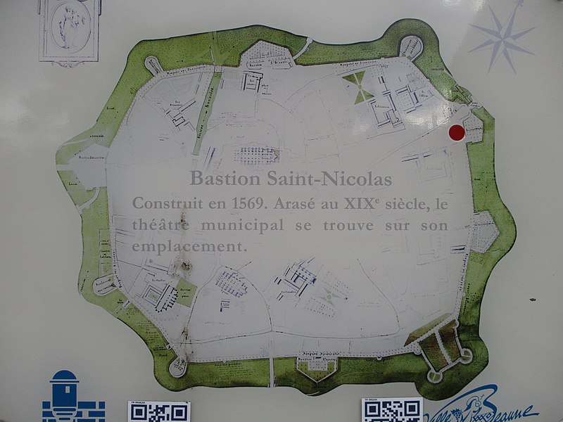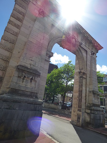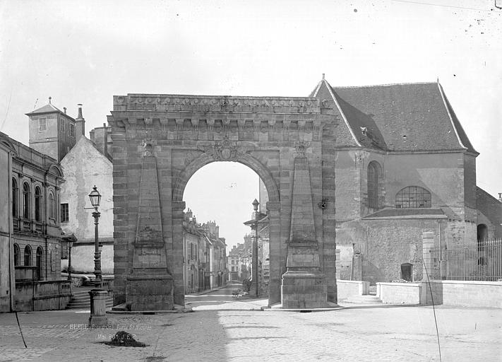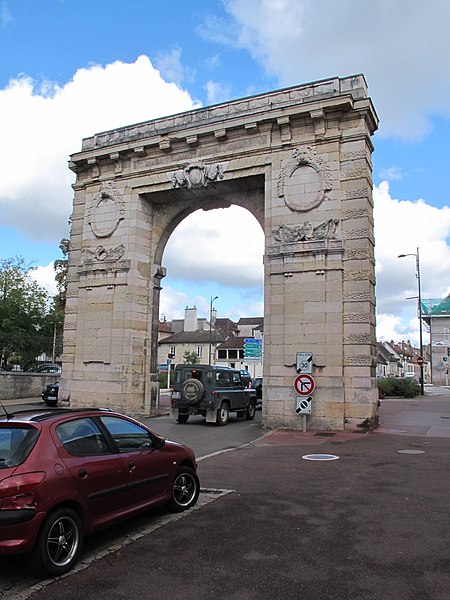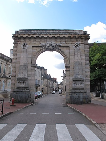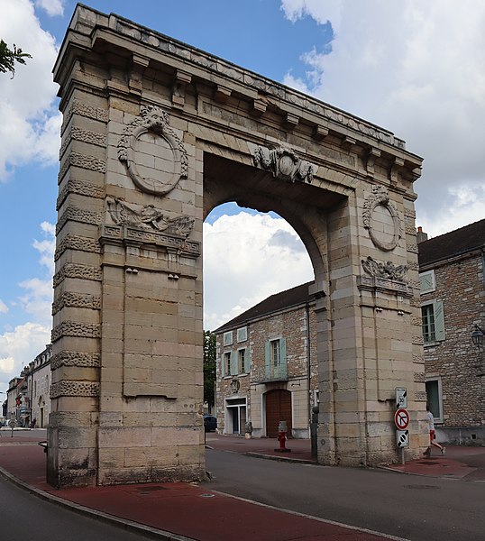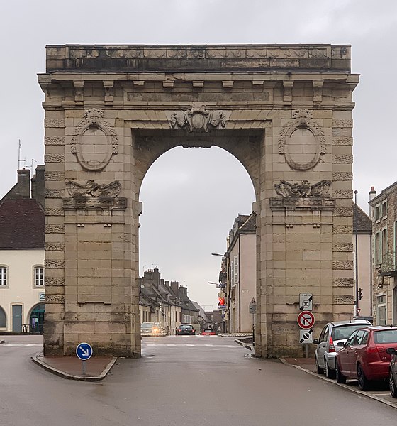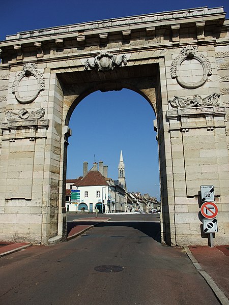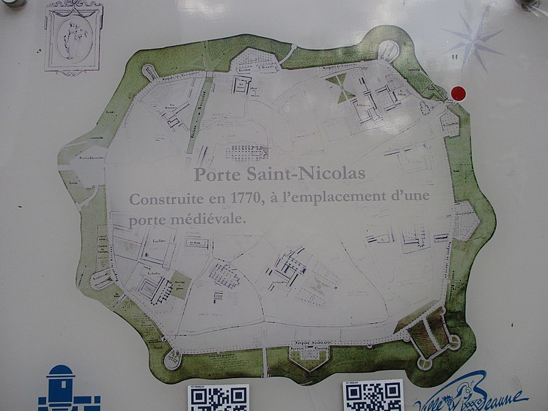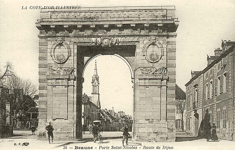 La porte Saint-Nicolas, porte de ville du XVIIIe siècle située rue de Lorraine à Beaune, a été élevée entre 1762 et 1770 à l’emplacement d’une ancienne porte médiévale fortifiée. Sa construction s’inscrit dans le projet du maire Jean‑François Maufoux de transformer en promenade le tronçon des remparts allant de la porte Bretonnière à la porte Saint‑Nicolas ; l’autorisation royale de démolir l’ancienne porte fut obtenue en 1761. Le projet, dressé en 1762 par l’architecte Nicolas Lenoir Le Romain, prévoyait la reconstruction de la porte, l’édification d’un nouveau pont, le logement du portier et une glacière. Le 23 juillet 1762, Théodore Chevignard de Chavigny fit don de 4 800 livres pour participer à l’édification. Jacques Lebrun, charpentier et entrepreneur à Beaune, obtint l’adjudication des travaux en septembre 1762, qui furent surveillés par Denis Lenoir, frère et représentant de l’architecte. La rédaction en latin de l’inscription dédiée à Chavigny fut confiée au père Chappuis lors d’une délibération du 14 mai 1764. La porte fut achevée le 10 mai 1770 et la réception des travaux fut assurée en juillet de la même année par Pierre‑Joseph Antoine, sous‑ingénieur de la Province, pour l’Intendant de Bourgogne. À l’époque de sa mise en service, la porte conservait un portail en bois, les douves n’étaient pas comblées et un pont permanent en assurait l’accès. En 1792, les armoiries de Chavigny furent détruites et la plaque de marbre datée de 1764 enlevée ; elle fut remplacée par des inscriptions peintes et gravées portant notamment « Porte de la Fédération », « La Nation, La Loi, Le Roi » et « Liberté et Égalité ». En 1844, le portail en bois, devenu vétuste, fut remplacé par une grille en fer réalisée par le serrurier beaunois Couturier, dont la réception définitive eut lieu en 1847. Pour dégager la porte, le rempart fut coupé en 1866 et le bureau d’octroi ainsi que la maison du portier furent détruits ; les grilles de fer des portes de la ville furent vendues en 1869. Au XVIIIe siècle, les remparts de Beaune avaient perdu leur fonction militaire — la ville ayant été fortifiée comme place frontière vis‑à‑vis de la Franche‑Comté, annexée en 1678 — et la circulation nord vers Beaune passait par la porte du Bourgneuf, qui possédait un pont‑levis. La porte Saint‑Nicolas a été classée au titre des monuments historiques en 1908.