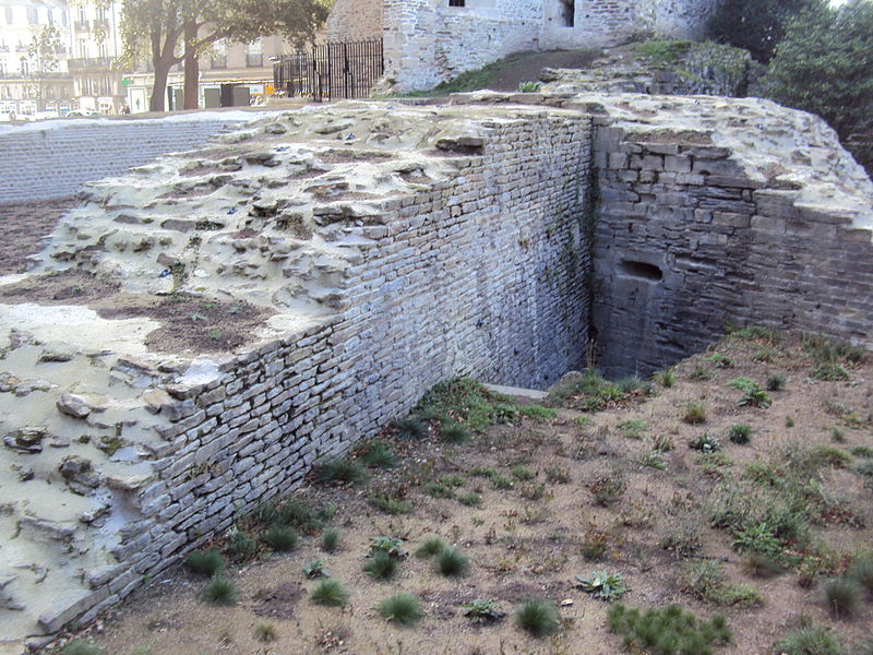 Construction des fondations gallo-romaines de la porte Saint-Pierre.