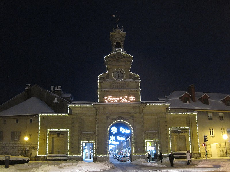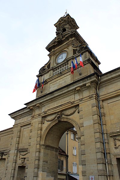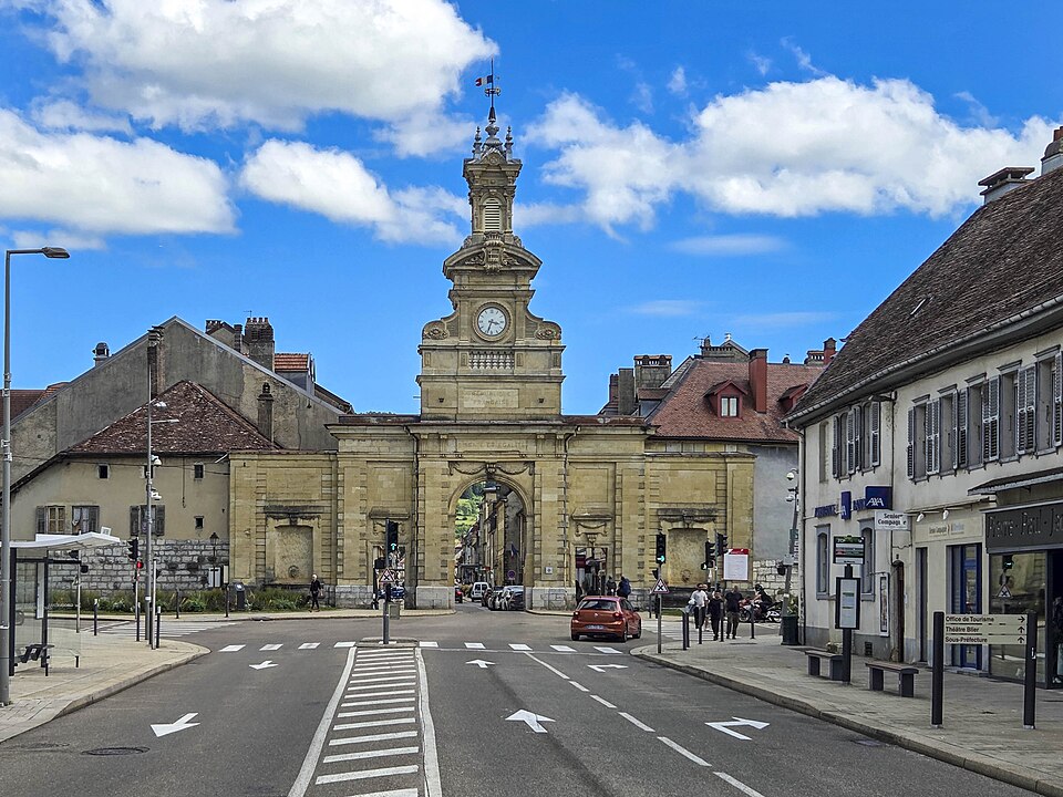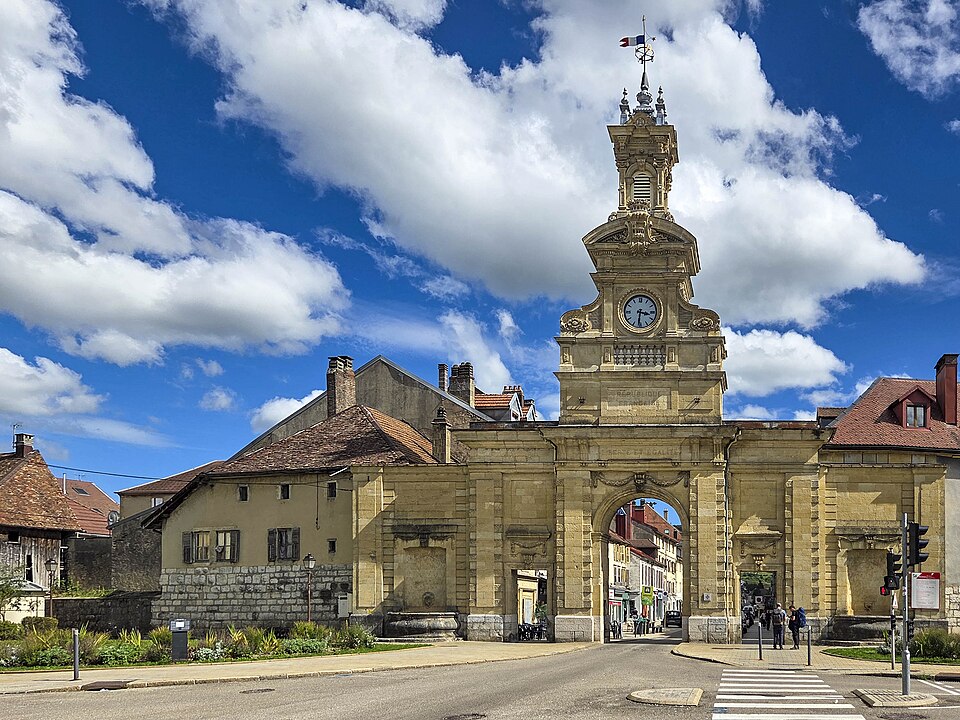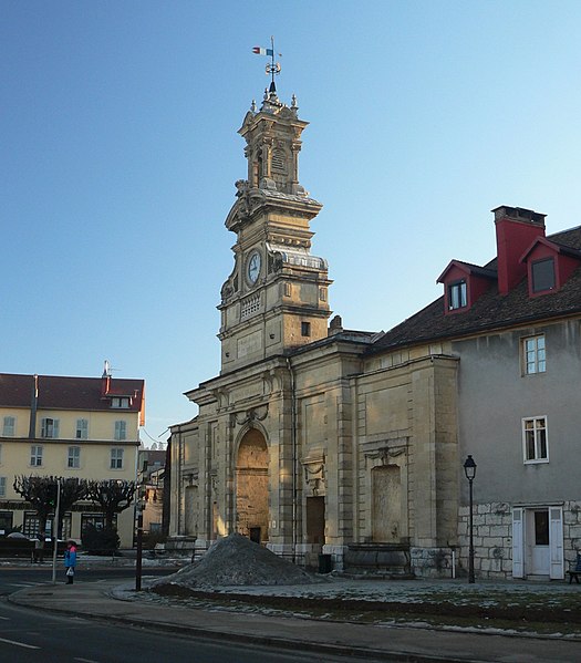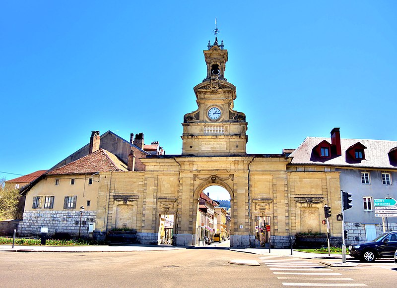 La Porte Saint‑Pierre de Pontarlier est un arc de triomphe de style classique élevé au XVIIIe siècle à Pontarlier (Haut‑Doubs, Franche‑Comté). Construite entre 1771 et 1773 d'après les plans de l'ingénieur du roi Jean‑Claude Eléonor Le Michaud d'Arçon, elle s'inspire de la porte Saint‑Martin de Paris. Elle remplace une porte de ville défensive, proche de l'église Saint‑Bénigne, qui faisait partie des fortifications primitives avec remparts et fossés. Sa construction intervient après l'incendie de 1736 qui ravagea la ville et ses défenses ; elle commémore la reconstruction de Pontarlier ainsi que le traité de Nimègue de 1678, marquant la fin de la reconquête française de la Franche‑Comté. Inscrite au titre des monuments historiques le 21 mai 1970, elle est dédiée à Saint‑Pierre depuis le XXe siècle et constitue aujourd'hui un emblème de la ville. Entre 1895 et 1898, la partie supérieure a été restaurée et ont été ajoutés un campanile, une horloge, une cloche qui sonne tous les quarts d'heure et deux fontaines latérales. Construite avant 1848, la porte porte uniquement les mentions « Liberté » et « Égalité », l'ajout de « Fraternité » datant de 1848. Une restauration complète est engagée de novembre 2024 au deuxième semestre 2025, comprenant la réfection de la couverture, le remplacement de certaines pierres, la restitution des couleurs d'origine et la remise en état du campanile.