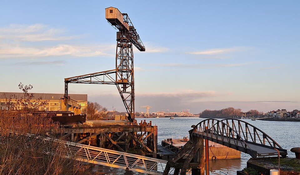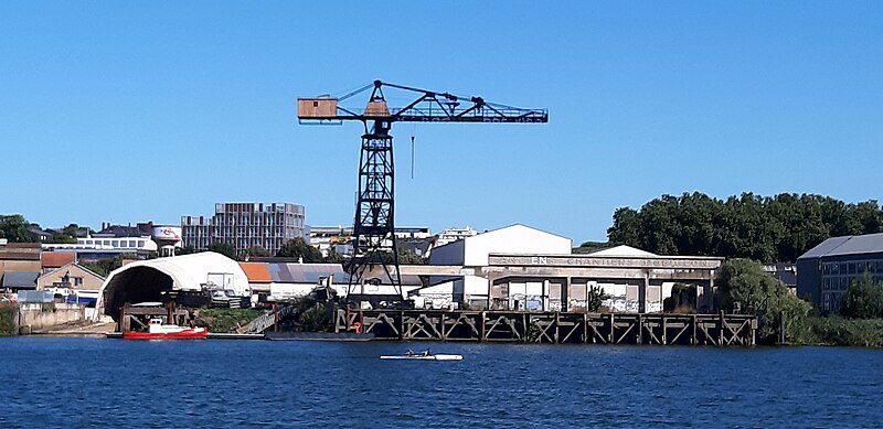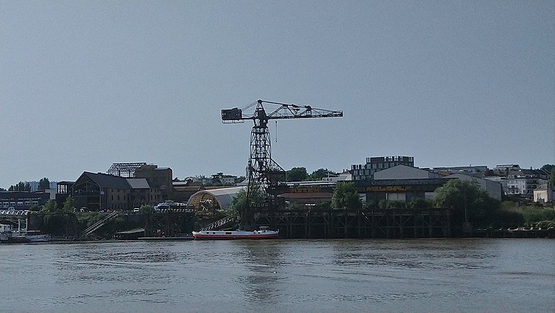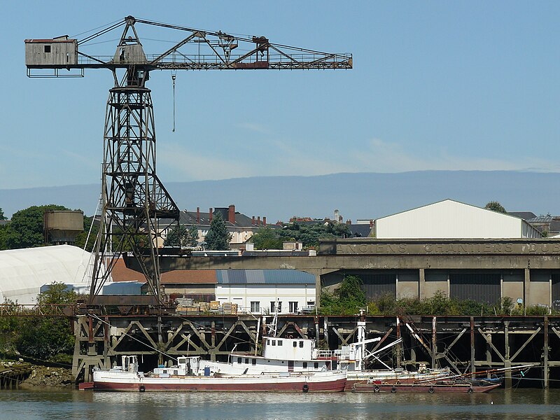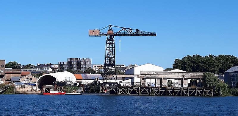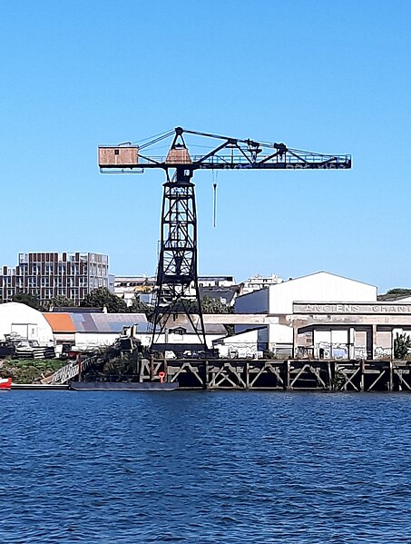 La grue noire est une grue monumentale de Nantes, ancien appareil de levage des Chantiers Dubigeon de Chantenay, aujourd'hui désaffectée et témoignant du passé industriel de la ville. Construite à partir de 1942 pendant l'Occupation par les établissements Joseph Paris et le service des Appareils de Levage des Ateliers et Chantiers de la Loire, elle a été mise en service en mars 1943 pour les opérations d'armement des navires construits sur la zone industrialo-portuaire du Bas-Chantenay. À l'époque, les chantiers Dubigeon étaient spécialisés dans la construction de chalutiers, de petits cargos et de sous-marins ; la nouvelle grue remplaçait un engin de plus faible capacité et permettait d'assurer la manutention des équipements intérieurs et extérieurs des navires après leur mise à l'eau. Lors du repli des forces allemandes en août 1944, des sabotages ont été réalisés dans le port : la grue a été détruite à 95 % par des charges d'explosifs les 9, 10 et 11 août. Sa reconstruction a commencé en septembre 1944, s'est poursuivie jusqu'à la fin de 1946 et la remise en service a eu lieu en 1947, les réparations ayant été financées par les dommages de guerre. Le 2 avril 1948, une tempête provoqua la chute de la grue sur un chalutier en réparation ; les travaux de remise en état furent alors pris en charge par le chantier et la grue ne reprit pleinement du service qu'au début des années 1950. Elle demeura en service jusqu'en 1967, date du transfert de l'activité de construction navale de Chantenay vers le site de la Prairie-au-Duc. Pesant 110 tonnes et doté d'un portique dissymétrique, l'appareil se déplaçait le long du quai sur un dispositif de roulements ; sa capacité de levage était de 13 tonnes à 7,80 mètres, 9 tonnes à 11 mètres et 5 tonnes au bout de flèche à 23 mètres. Rachetée par la ville de Nantes en 2012, la grue noire est conservée comme élément de mémoire industrielle, aux côtés de la grue jaune située en amont sur l'île de Nantes, également ancienne propriété des Chantiers Dubigeon. Des travaux de restauration ont débuté en septembre 2022. La grue a fait l'objet d'une inscription au titre d'objet le 17 octobre 2018, et l'ensemble (portique en béton armé avec son rail, le chemin de roulement sur l'estacade, les deux butées est et ouest) a été inscrit aux Monuments historiques par arrêté du 1er décembre. Elle apparaît enfin dans une scène du film La Reine blanche (1991).