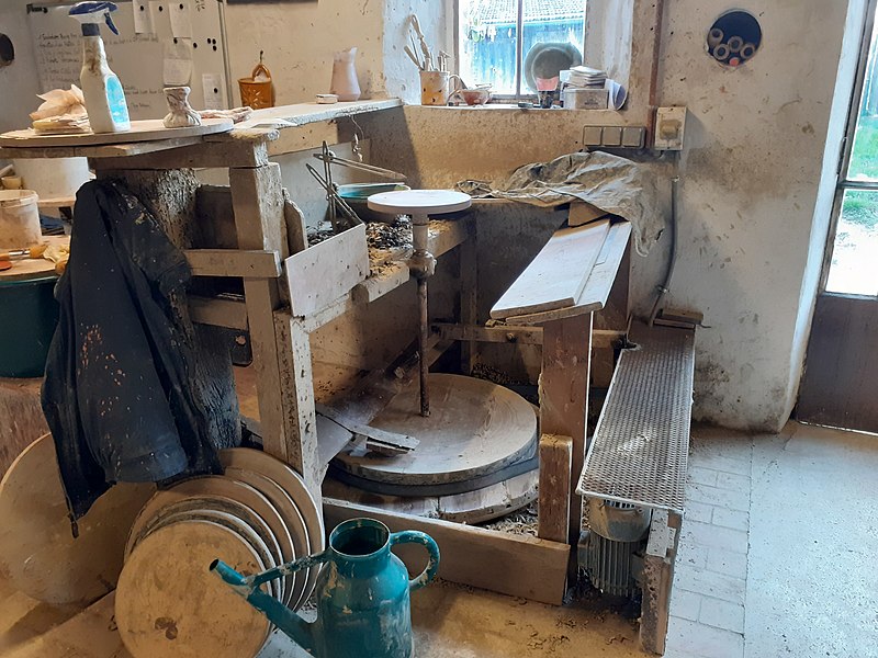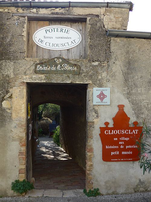 La poterie de Cliousclat, située dans le village éponyme en Drôme provençale (à 30 km au sud de Valence), est le dernier témoin d'une activité potière traditionnelle et est inscrite au titre des monuments historiques (PA26000002, 18 novembre 1997). Des traces d'activité y sont signalées dès le Xe siècle et, à partir du XVIIe siècle, les registres paroissiaux recensent des dizaines de potiers. Au XIXe siècle la commune comptait plusieurs fours — huit en 1806 — et la filière employait de nombreuses personnes : environ 50 en 1818, et, en intégrant les métiers indirects, jusqu'à 250 personnes selon les sources citées; à la fin du siècle l'activité se réduit, avec cinq maisons employant 24 ouvriers et 10 manœuvres en 1886, puis trois maisons et moins d'ouvriers par la suite. Au début du XXe siècle, Marius Anjaleras créa un atelier conçu pour regrouper sur un même site la préparation de la terre, le tournage, la cuisson, la décoration et le vernissage, rompant avec le modèle de fours dispersés dans le village; le bâtiment principal date de 1902. La fabrique acquit en 1919 le gisement d'argile dit "le Maupas" et le terrain du "Petit Maupas" pour alimenter et traiter la matière première : cette argile, de bonne qualité pour la vaisselle, est poreuse et nécessite un vernissage pour assurer l'étanchéité. La même année, Antonin et Numa Anjaleras prirent la suite de leur père sous la raison sociale Anjaleras-Frères, Numa abandonnant ensuite la gestion. Pour accroître la productivité, l'atelier se mécanisa en 1931 avec l'installation de deux chariots et de rails récupérés auprès d'une usine. Antonin transmit l'entreprise en 1964 à Philippe Sourdive, qui la dirigea jusqu'à son décès en 1978 ; ses fils Nicolas et Olivier assurèrent ensuite la gestion. Au XXe siècle la fabrique employa plus de dix personnes selon les témoignages, certains y travaillant pendant une grande partie de leur vie, et la production fit l'objet de reportages et d'entrées dans des collections publiques. L'atelier comprend les bassins de préparation, un bourlo pour le délavage, des tours, des séchoirs et un four à bois à flamme directe en deux chambres ; l'ensemble s'organise autour d'une grande cour et s'est développé pour occuper environ 1 700 m2 au sol. Les étapes de production allaient de l'extraction et du délavage de l'argile dans les bassins, au malaxage et tournage sur girelle, au séchage en plein air puis près du four, à l'engobage et à la décoration, puis au vernissage avant la cuisson finale. Le four, d'un volume de 20 m3, était chargé selon un schéma précis, chauffé au bois pendant environ 18 heures jusqu'à 980 °C puis laissé refroidir progressivement ; une cuisson pouvait consommer jusqu'à 600 fagots et se répétait plusieurs fois par mois. Les méthodes de production ont été préservées au fil des modernisations : les tours, autrefois entraînés au pied, ont été électrifiés, mais l'organisation du travail et le four à bois restent fidèles aux pratiques traditionnelles. L'activité déclina au milieu du XXe siècle face à la concurrence des nouveaux matériaux et la SARL "Poterie de Cliousclat" cessa son activité fin 2012. Pour maintenir une présence potière sur le site, la municipalité fit appel à un potier formé à Cliousclat et, grâce au soutien des collectivités locales, une SCIC et une souscription publique, la relance a été engagée en 2012 avec un audit architectural et des travaux conformes au cahier des charges des Monuments historiques. Un important chantier de restauration a été réalisé en deux phases : réhabilitation de l'atelier historique et réfection des toitures (phase 1, automne 2016), puis aménagement de nouveaux ateliers et de logements pour potiers en formation (phase 2, été 2018); des phases ultérieures concernent l'espace vente, la zone d'exposition et les extérieurs. Aujourd'hui, une équipe de cinq personnes gère la fabrique qui produit des pièces utilitaires et décoratives, des outils de cuisine aux grandes jarres de jardin ; le site accueille aussi un musée et des expositions permanentes et temporaires, et a reçu environ 20 000 visiteurs en 2018. Pour transmettre la tradition, la commune et l'association "Cliousclat D554" organisent tous les deux ans un grand marché des potiers dans le village, et la fabrique a continué d'être présentée dans des reportages médiatiques. Le site, désormais conforme aux normes ERP, conserve ses éléments techniques — rails, bassins de décantation, barres de séchage et cheminées du four — qui témoignent de l'histoire et des savoir-faire de la poterie de Cliousclat.
