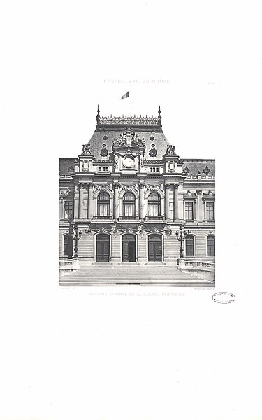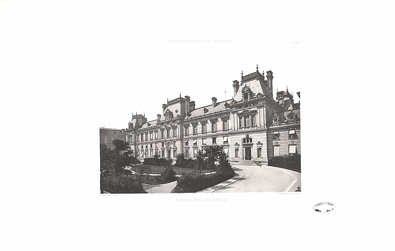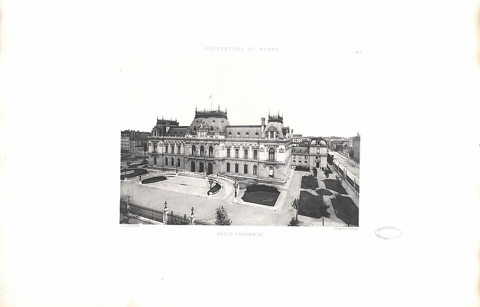 L'ancienne préfecture de la place des Jacobins devenant trop exigüe, le conseil général du Rhône décida, lors de sa séance du 30 avril 1879, la construction d'un nouvel hôtel de préfecture sur un terrain appartenant aux hospices civils de Lyon, entre les quartiers des Brotteaux et de la Guillotière. La construction fut confiée à l'architecte Antonin Louvier pour un coût de 4 500 000 francs ; les travaux débutèrent en 1883 et s'achevèrent en 1890, l'inauguration ayant eu lieu le 18 août 1890. C'est dans cet édifice que le président de la République Sadi Carnot mourut le 25 juin 1894, après avoir été mortellement poignardé la veille par l'anarchiste italien Sante Caserio.