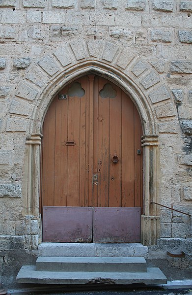 L'abbaye bénédictine de la Chaise-Dieu, en Haute-Loire, possédait, avec une partie de la seigneurie de Poussan, l'immeuble qui sert de maison presbytérale. Le prieuré est mentionné dès 1333 et, la même année, uni à la mense conventuelle de la Chaise-Dieu. En 1343, l'abbé acquiert une maison joignant les fortifications du château de Poussan, près du cloître de l'église Saint-Pierre ; cet acte constitue la première mention de la « maison prieurale ». À partir du XVIe siècle, la maison apparaît dans les baux à ferme des dîmes de Poussan. Le compoix du XVIIIe siècle distingue deux immeubles, la maison presbytérale et la maison prieurale, et l'ancienne maison prieurale devient presbytérale en 1775. L'édifice gothique possède de grandes salles voûtées d'ogives qui datent certainement de l'époque de l'achat par les Bénédictins de la Chaise-Dieu. Trois fenêtres gothiques percent la façade ouest au premier étage : ce sont des baies à deux formes trilobées, surmontées d'un quadrilobe et logées sous un encadrement extérieur saillant en arc brisé. Au sud, une grande fenêtre gothique présente une baie rectangulaire surmontée d'un arc de décharge brisé ; les formes trilobées y sont figurées par de fausses arcatures sculptées dans le haut du linteau. Elles sont surmontées d'une rosace à six lobes, l'ensemble étant amorti en arc brisé.