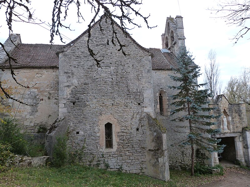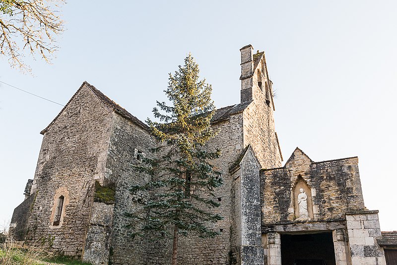 Ancien prieuré relevant du diocèse de Cahors, l'édifice est uni à la chartreuse de Cahors en 1409. Selon la tradition, la fondation de l'église remonterait à 1011 et serait due aux chevaliers du Temple. Une fontaine dite miraculeuse se trouve au pied du rocher sur lequel la chapelle est bâtie. Un porche, d'une construction postérieure, donne accès à la chapelle et aux bâtiments attenants. L'édifice présente un plan cruciforme et des contreforts à chaque angle. Du côté opposé à l'entrée s'élève un mur d'enceinte autrefois renforcé de deux tours : l'une s'appuyait sur un contrefort de l'église, l'autre était située à peu près au centre du mur. L'église est mentionnée au XIIIe siècle et a été détruite pendant la guerre de Cent Ans. Sa reconstruction est attribuée, selon les auteurs, à la fin du XVe siècle ou au début du XVIe siècle, interprétation corroborée par l'analyse architecturale.