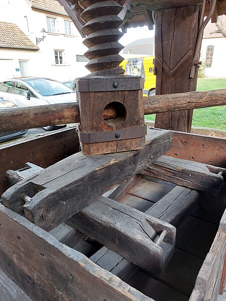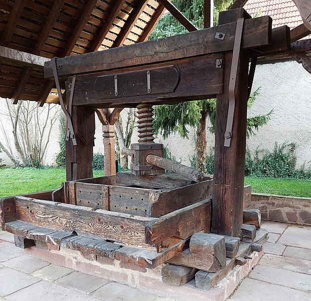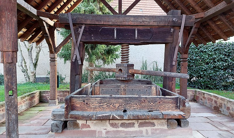 Le pressoir à cabestan de Goxwiller, inscrit au titre des monuments historiques depuis 1991, est situé au 142, rue Principale à Goxwiller (Bas-Rhin). Considéré comme l’un des plus anciens de son type en Alsace, il porte l’inscription 1669 L.H. La balonge, cuve rectangulaire en bois, comporte un fond — la maie — destiné à la réception du raisin, et une vis en noyer permet d’en extraire le jus. Les parties mécaniques sont logées dans une modeste construction en torchis, couverte de tuiles.