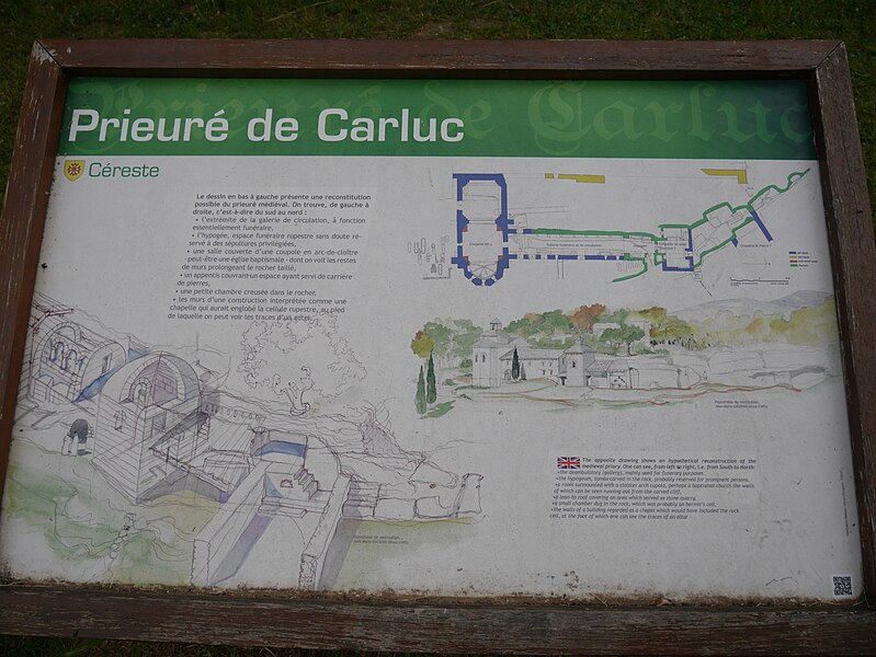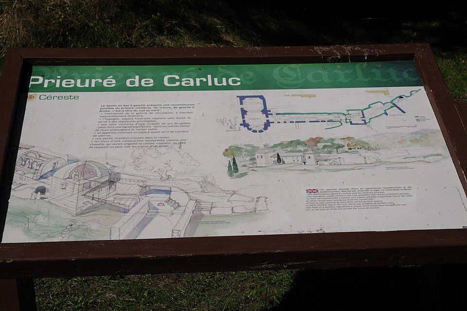 Le prieuré de Carluc, situé sur la commune de Céreste dans les Alpes-de-Haute-Provence, forme un ensemble médiéval bien conservé. Il se trouve à proximité de la via Domitia, appelée au Moyen Âge via publica ou camin roumieu, et fut une étape importante sur l’itinéraire reliant l’Espagne à l’Italie via la Provence ; son fondateur jouissait d’une réputation de sainteté qui attirait pèlerins et voyageurs. Le site jouxte une petite falaise creusée de galeries, d’habitats rupestres et de tombes anthropomorphes ; au pied de la paroi, une source jaillit encore sous un portique à colonnes et alimente un petit ruisseau.