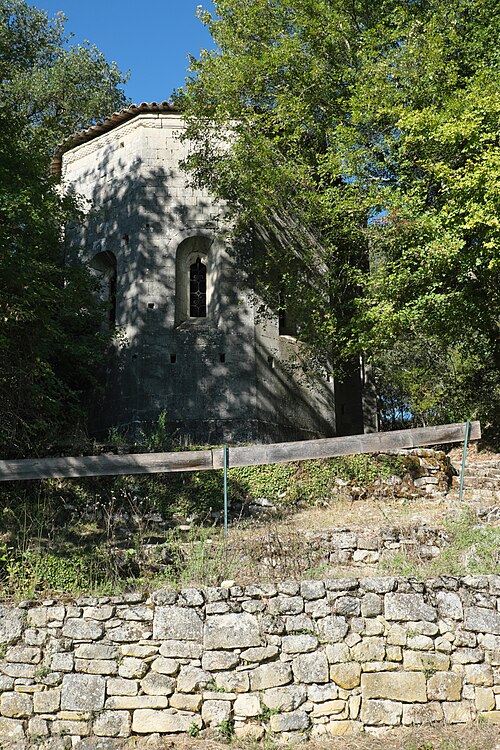 L’architecture du prieuré associe constructions en pierre de taille et aménagements rupestres : une église médiévale entourée de tombes anthropomorphes, les vestiges de deux autres églises, une longue galerie creusée dans le roc, des grottes et une muraille du XIIIe siècle. La chapelle, bâtie en grand appareil, présente un chevet pentagonal percé de trois fenêtres à simple ébrasement surmontées d’arcs en plein cintre, une corniche ornée d’une frise en damier et de nombreux trous de boulin. Les angles du pignon auquel s’appuie le chevet sont soulignés par de belles colonnes aux chapiteaux sculptés figurant des oiseaux, et la façade occidentale s’ouvre par un grand arc ogival ; on remarque par ailleurs des éléments d’architecture tels que la façade nord, des voûtes en arc brisé et plusieurs colonnes et chapiteaux absidiaux.