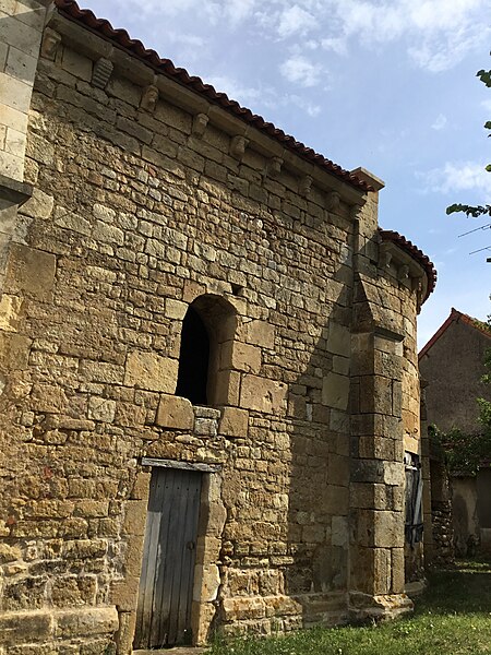 L'édifice se présente comme un vaisseau presque carré, couvert d'un berceau brisé qui se prolonge en une abside en hémicycle voûtée en cul-de-four. Les murs sont en calcaire blanc, avec des modénatures en pierre de taille; le chevet semi‑circulaire, partiellement bâti en grand appareil, est orné d'une série de modillons sculptés. L'ensemble mesure environ 6,50 mètres de large sur 10 mètres de long.