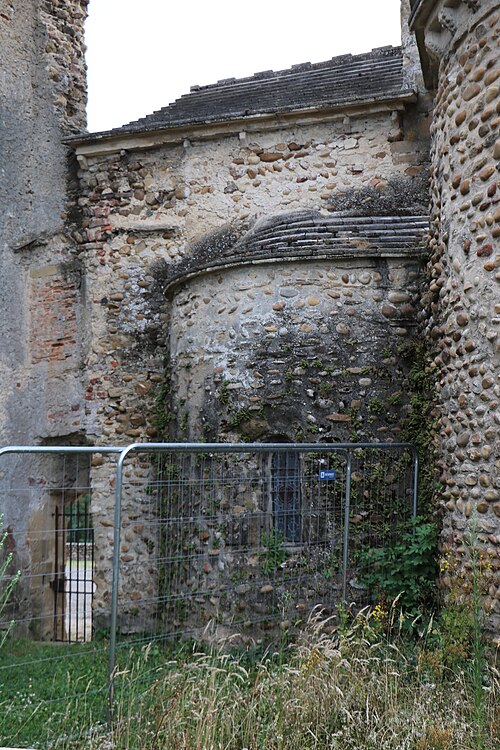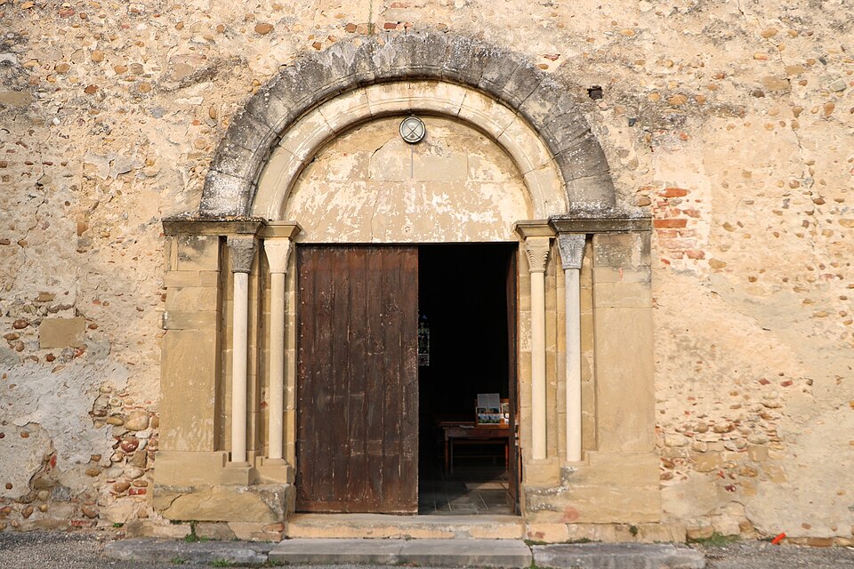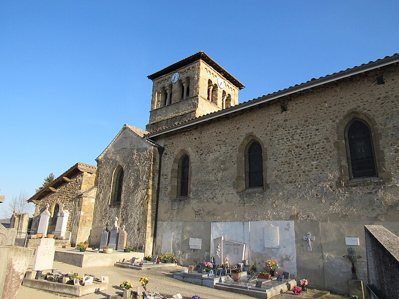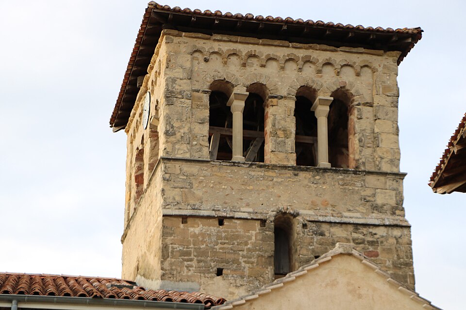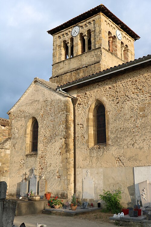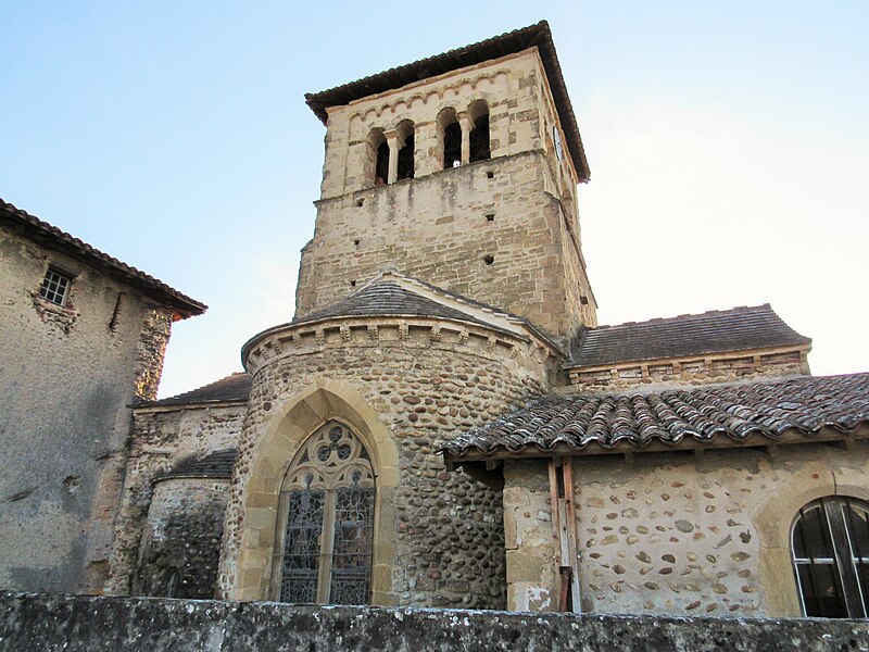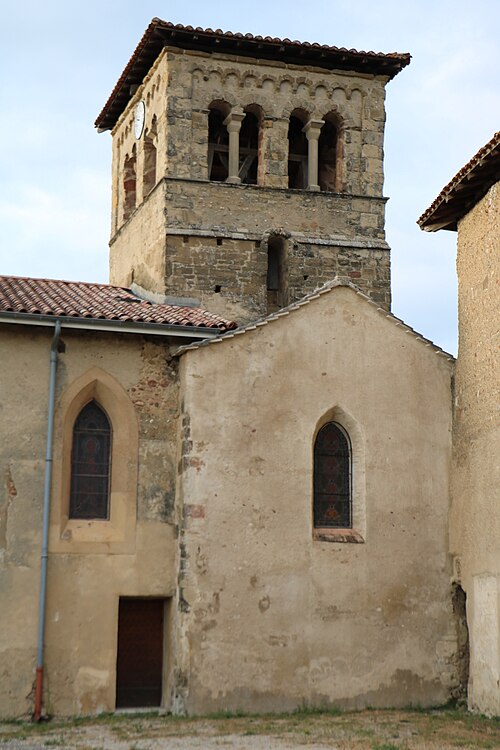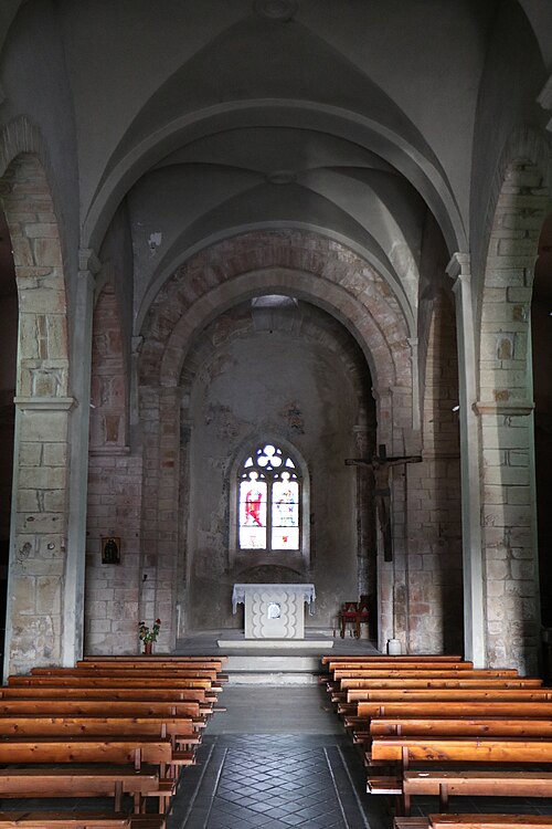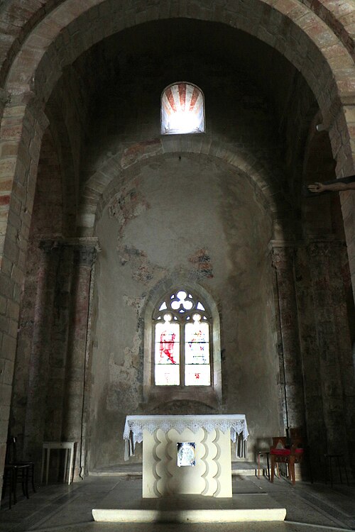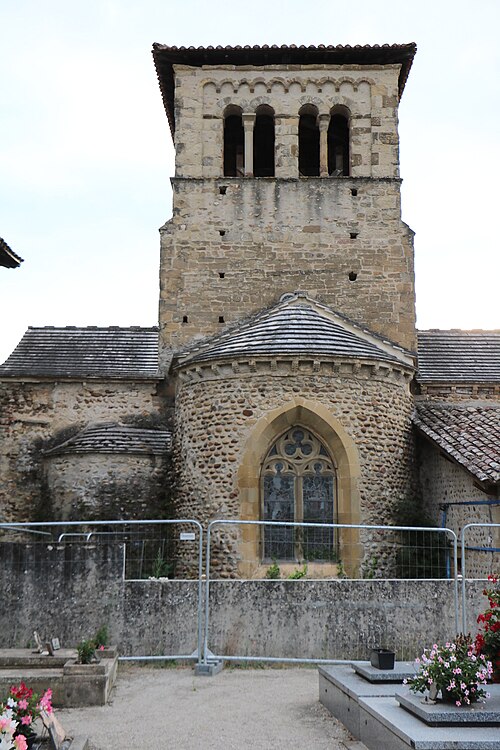Seul le chevet de l'église conserve un état roman, avec une abside et deux absidioles voûtées en cul-de-four. La croisée est couverte d'une voûte en berceau et repose sur quatre grosses piles en tuf surmontées de chapiteaux. Trois de ces chapiteaux portent des motifs végétaux, le quatrième représente une petite tête d'où sort du feuillage, motif fréquent dans l'art de la vallée du Rhône. Des traces de peintures et de fresques subsistent, notamment sur la voûte d'une absidiole où apparaît le triangle de la Trinité.