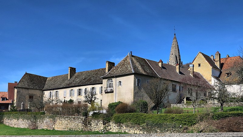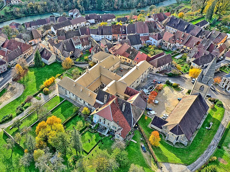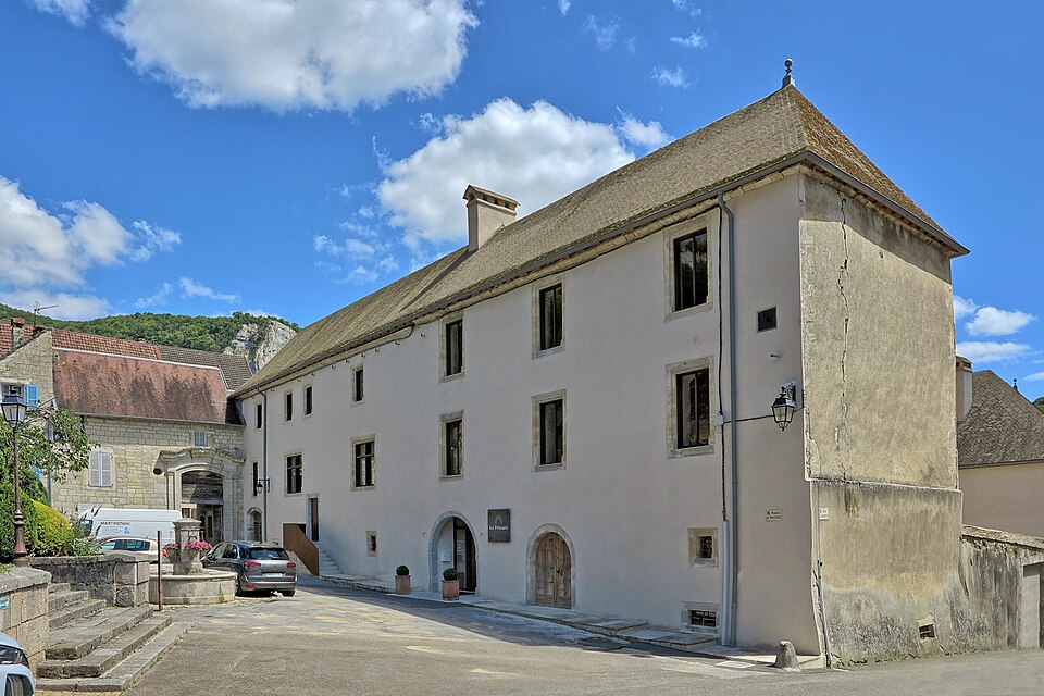 Le prieuré de Mouthier-Haute-Pierre est un ancien prieuré bénédictin situé dans la commune du même nom, dans le Doubs ; il est aujourd’hui une propriété privée. Sa fondation reste incertaine ; il aurait été fondé par saint Eustache, abbé de Luxeuil, aux environs de 618. Le prieuré est mentionné dès 870 dans les actes du partage de Lothaire et y apparaît comme l’un des plus importants de Bourgogne. Rattaché à l’abbaye de Cluny en 1120, le monastère a été reconstruit au XIIIe siècle. Au XIVe siècle fut édifié le clocher, et des éléments architecturaux des XVe et XVIe siècles subsistent encore. Le prieuré connaît un développement au XVIe siècle grâce aux interventions d’Antoine Perrenot de Granvelle, qui restaure les quartiers des religieux et fait reconstruire des bâtiments ; certains locaux conservent des sols d’origine, des décors lambrissés et des trumeaux peints. Un incendie en 1719 endommage l’église, qui est reconstruite et porte la date de 1724 sur le portail ; elle est cependant en grande partie démolie en 1793 et il n’en reste que des vestiges. Les cloches furent démontées et fondues, et la chaire richement ouvragée a été déposée dans l’église paroissiale Saint-Laurent. Les bâtiments conventuels furent vendus comme biens nationaux et transformés en habitations. Les vestiges de l’église, le cloître et l’ensemble des bâtiments des anciens quartiers des religieux et du prieur sont inscrits aux monuments historiques depuis le 14 octobre 1996. Le prieuré se compose de deux grands bâtiments rectangulaires parallèles d’environ 50 mètres, orientés est-ouest, qui enferment à l’est un petit cloître de 20 mètres sur 10, bordé sur trois côtés d’arcades et fermé à l’est par un bâtiment comprenant une vaste cave et le chapitre voûté d’ogives, et à l’ouest une cour d’environ 20 mètres sur 20, ouverte sur la rue et desservant le « quartier Granvelle » au nord et le quartier des Hôtes au sud ; ces deux cours sont séparées par un petit bâtiment dit « quartier Pletteret ». Le site conserve des caves voûtées en pierre de tuf et des jardins, intégrés au parcours de visite aménagé après restauration. Racheté en 2017, l’ensemble a été entièrement restauré et s’est partiellement ouvert au public en juin 2025 ; il présente un espace muséal d’une cinquantaine de toiles consacré aux grands peintres comtois des XIXe et XXe siècles, parmi lesquels Émile Isenbart, Robert Fernier, Antonin Fanart et Jules-Émile Zingg, dont une partie de la collection est illustrée sur Wikimedia Commons. La visite permet de découvrir la cour prieurale, le cloître restauré, la salle du chapitre, les caves voûtées et les jardins ; la façade nord accueille l’entrée du musée et la façade sud donne sur les jardins. Le chartrier mentionne des terres et des vignes autour de l’abbaye, données par la Maison de Montgesoye au Xe siècle. Parmi les prieurs connus figurent Aymé de Montmartin, qui affranchit les habitants en 1365, Antoine Perrenot de Granvelle (vers 1550-1581) qui fit reconstruire les bâtiments, et Philippe-Emmanuel de Montfort, nommé par Philippe IV et décédé en 1657 ; Antoine Perrenot de Granvelle est par ailleurs signalé comme coadjuteur du monastère en 1537, à l’âge de vingt ans. Les principales études publiées sur le prieuré incluent l’ouvrage de Marcel Muller (1939) et plusieurs travaux de Marie-Louise Chaneaux parus dans les années 1970 et 1988.