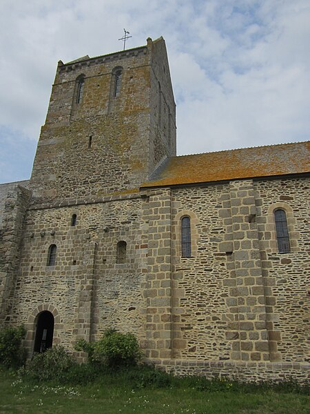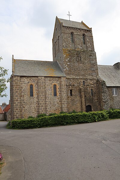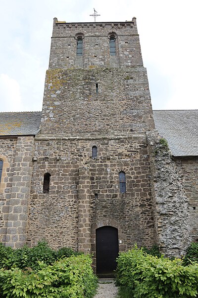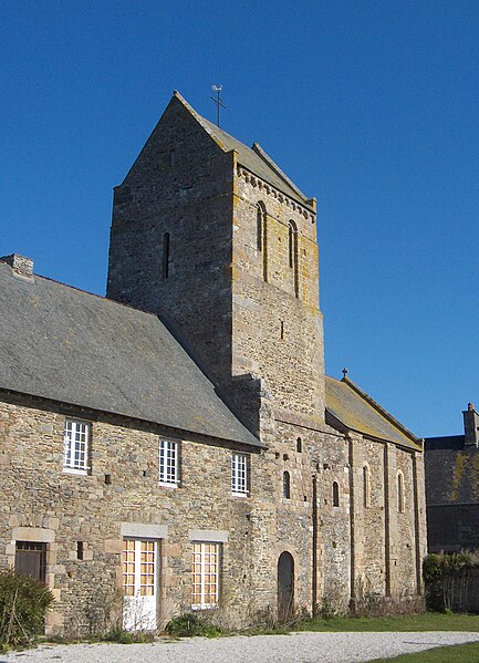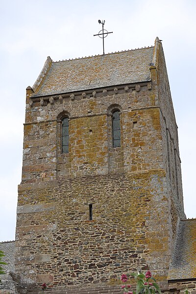 Le prieuré Saint-Léonard de Vains se situe dans la baie du Mont-Saint-Michel, à égal distance d’Avranches et du mont Saint-Michel, sur la commune de Vains ; il est à l’origine du bourg de Saint-Léonard et se trouve à l’ouest du territoire communal. Ses origines sont rattachées au VIe siècle, époque où Leodowald, dit « le lion de la forêt », quitte le paganisme, se fait baptiser sous le nom de Léonard et devient le premier évêque d’Avranches issu des Francs ; il aurait probablement achevé sa vie comme ermite en Limousin, donnant naissance à la figure de Léonard de Noblat, saint patron des prisonniers. La création du prieuré semble liée à une donation de terres par Guillaume le Conquérant en faveur de l’abbaye bénédictine Saint-Étienne de Caen en 1087, acte confirmé quelques années plus tard par le duc Robert Courteheuse. Au XIe siècle, des religieux y établissent un prieuré construit en granite et schiste, composé d’un manoir et d’une chapelle. En 1454, lors de l’aveu général demandé par Charles VII, l’abbé de Saint-Étienne déclare que les terres du prieuré sont détenues « franchement et noblement », avec diverses franchises et droits, et rappelle la vassalité du seigneur de Matignon pour la seigneurie de Vains. La commende de 1603 entraîne la nomination des abbés par le roi et le rappel du prieur à Caen ; un frère convers, fermier, assure alors l’entretien et la mise en valeur du domaine, tandis qu’une partie des bâtiments est négligée et que beaucoup de constructions de la cour carrée disparaissent. À la suite d’un procès en 1652, le prieur devient indépendant et réside à Paris, puis de 1673 à la Révolution ce sont des fermiers qui gèrent le prieuré. Pendant la Révolution, le prieuré est vendu comme bien national à un particulier et transformé en ferme ; l’église est convertie au XIXe siècle en maison d’habitation. À partir des années 1980, les propriétaires entreprennent des travaux importants de restauration : la chapelle est intégralement remise en état et la grange convertie en logis. Aujourd’hui, de l’ensemble monastique il ne subsiste essentiellement que l’église, qui avait été transformée en habitation. Le prieuré était autrefois délimité par une enceinte ; lors de sa transformation en ferme on y avait ajouté des fenêtres rectangulaires, une cheminée et un escalier extérieur en pierre conduisant au clocher, aménagements qui ont depuis été démolis. Le clocher roman, de plan carré et couvert en bâtière, présente une corniche à modillons et est percé à l’étage supérieur, sur chacune de ses faces, d’une ou deux baies. L’église est classée au titre des monuments historiques par arrêté du 6 janvier 1970, et le mur d’enceinte ainsi que l’enclos qu’il délimite ont été inscrits par arrêté du 8 janvier 1970.