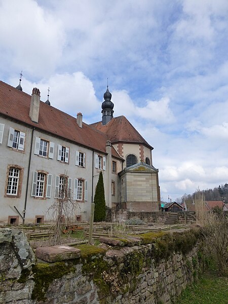 Fondé au début du XIIe siècle, l'ancien prieuré dépendait de l'abbaye de Marmoutier et devint le centre d'un important pèlerinage. Il aurait été établi par le comte de Dabo au pied de la chapelle haute, édifiée à l'instigation de Geppa, sœur de Léon IX et abbesse de Neuss, sur le site d'un ermitage appelé Godelsadis, du nom du saint ermite Godel. Le premier prieur, Wolframus, fut nommé en 1122. Le prieuré fit l'objet d'une reconstruction au début du XVIIIe siècle menée par le prieur Dom Herbe ; la date 1711 est portée sur l'architrave de la porte piétonne du corps situé Chemin de la Garinette. L'église paroissiale Saint-Quirin, liée au prieuré, fut consacrée le 31 août 1724. Par lettre patente du 20 novembre 1769, le prieuré fut supprimé et ses revenus furent attribués au chapitre des chanoinesses nobles de Metz, sous la direction d'une Choiseul-Stainville. À la Révolution, la paroisse de Saint-Quirin fut supprimée. Le prieuré a été rénové en 1910, comme l'indique une date portée sur le cartouche de la porte piétonne du corps situé place de l'église. Les bâtiments servent aujourd'hui d'école, de presbytère et de logements.