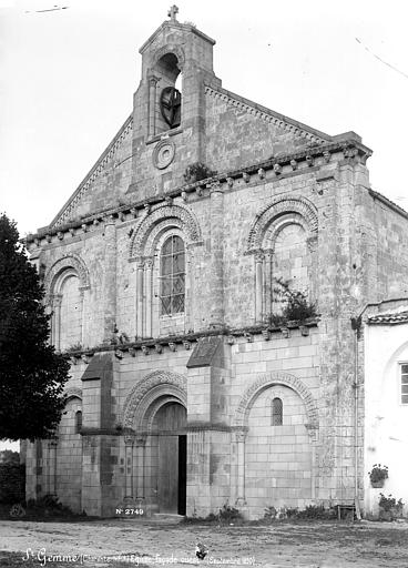 Architecturalement, l'église prieurale est de plan en croix latine et de tradition romane ; elle mesurait autrefois 55 m mais ne conserve aujourd'hui que la nef de trois travées bordée de collatéraux et un narthex, élément peu courant en Saintonge. Le transept avec clocher au‑dessus de la croisée et l'escalier en colimaçon datent de l'adaptation de l'église aux moines entre la fin du XIe siècle et la première moitié du XIIe siècle ; il ne subsiste du transept que le mur occidental et quelques vestiges de maçonnerie qui pourraient être les départs d'une coupole. La nef, construite après le transept, comporte des dosserets et les collatéraux voûtés en plein cintre ; le plan initial à cinq travées a été remanié pour aboutir à une triple nef de trois travées et un narthex surmonté d'une tribune. Le chœur roman, édifié lors de la seconde moitié du XIIe siècle, présentait des proportions importantes et une crypte funéraire, retrouvée et étudiée partiellement au XXe siècle, composée d'une salle semi‑enterrée couverte d'une croisée d'ogives, desservie par un escalier depuis le transept nord et contenant loculi et sarcophages monolithes. Un jubé en pierre est ajouté au XIIIe siècle et l'abside romane est remplacée au XIVe siècle par un chevet plat. Les voûtes encore présentes ont été consolidées ou reconstruites au XIXe siècle, sauf celles des bas‑côtés de la tribune occidentale, et la façade occidentale a perdu la plupart de ses modillons médiévaux au profit de sculptures de restauration.