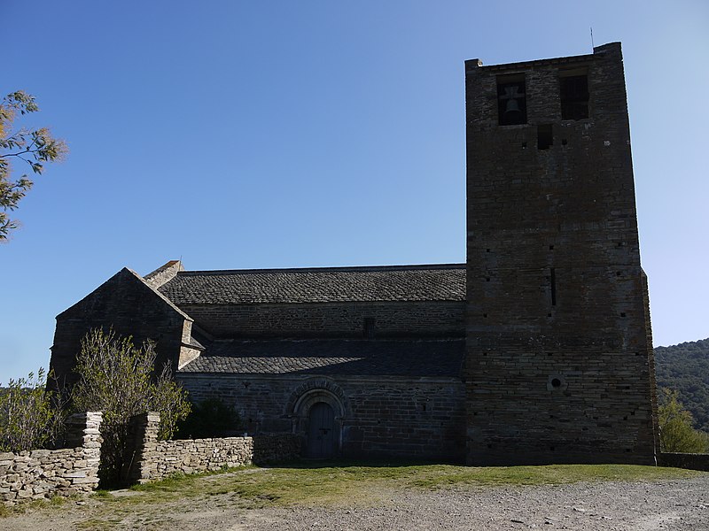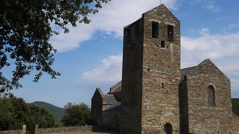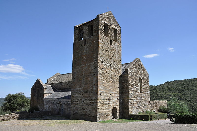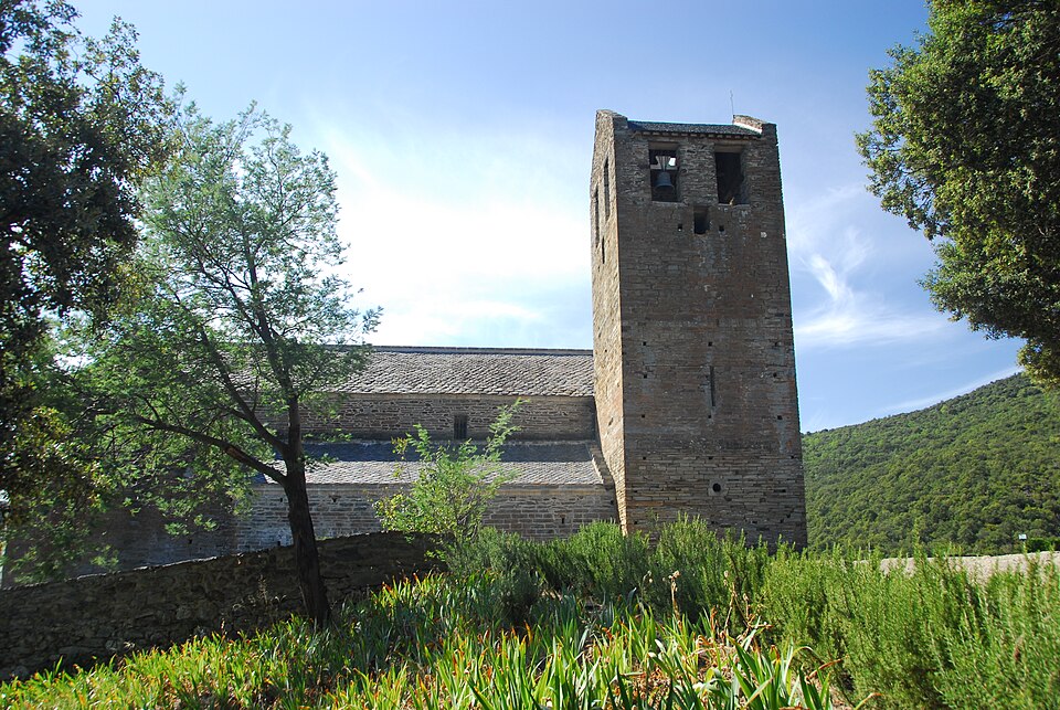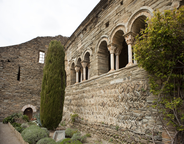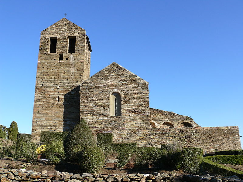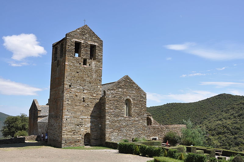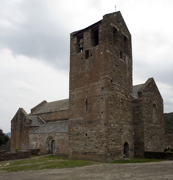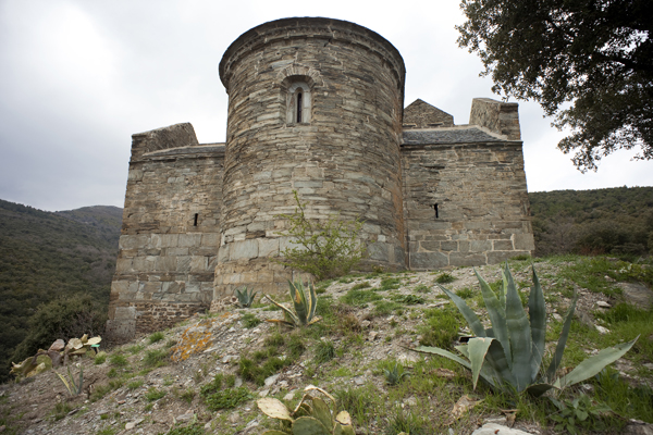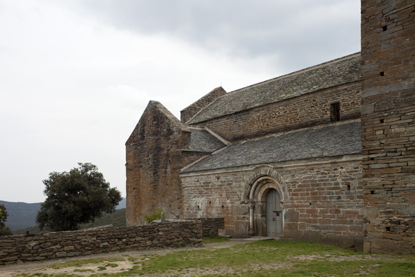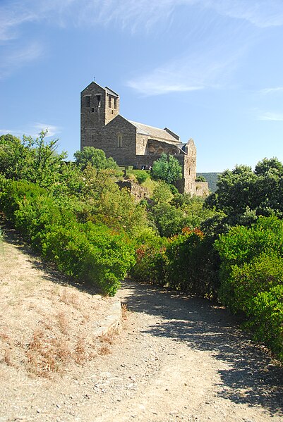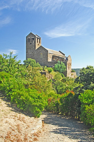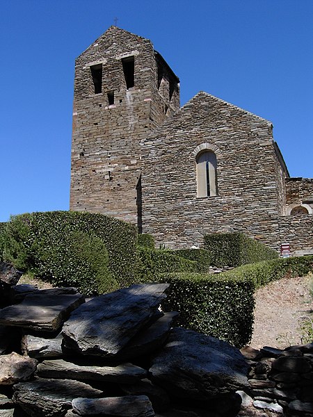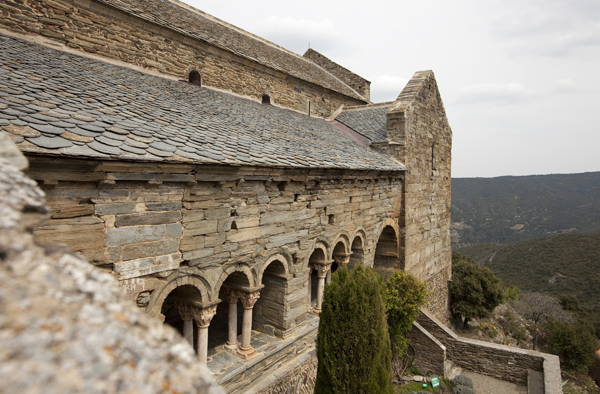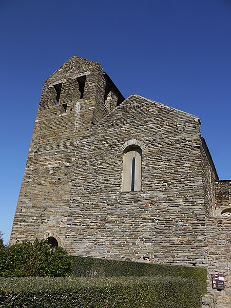 Le prieuré Sainte-Marie de Serrabona, fondé au début du XIe siècle, est situé en altitude sur la commune de Boule-d'Amont, dans les Pyrénées-Orientales ; son portail nord, les chapiteaux du cloître et une rare tribune en marbre du XIIe siècle constituent l'un des plus beaux ensembles de sculpture romane du Roussillon. L'église est classée au titre des monuments historiques et plusieurs de ses objets sont référencés dans la base Palissy. Implanté sur l'ancienne commune de Serrabonne, le prieuré se trouve dans le massif des Aspres, sur les contreforts orientaux du Canigou, à environ trente kilomètres de Perpignan et à 600 mètres d'altitude, à proximité des gorges du Boulès ; l'accès demeure difficile et les derniers 150 mètres de la route se font à pied. Aucune voie ne remontait la vallée du Boulès avant 1906 et la route qui dessert le prieuré date de 1946 ; de ce point élevé partent plusieurs sentiers de randonnée. La plus ancienne mention du lieu remonte à 1069 ; à cette époque une église paroissiale dédiée à la Vierge est citée et un groupe de religieux suivant la règle de saint Augustin, composé de chanoines et de chanoinesses, est installé par les seigneurs locaux. En 1082 est élu un prieur dans un contexte de tensions entre autorités religieuses et pouvoirs comtaux, en lien avec la réforme grégorienne. L'édifice primitif se compose d'une nef étroite voûtée en berceau ; lors d'un second chantier on y ajoute un clocher carré, un collatéral nord, un transept muni d'absidioles et un chevet semi‑circulaire, ainsi que les bâtiments monastiques et un cloître à galerie unique, adaptés à la topographie rocheuse. La nouvelle collégiale fut consacrée le 25 octobre 1151 par l'évêque d'Elne en présence d'autres prélats, et l'acte attribue l'agrandissement au prieur Pierre Bernard et aux habitants de Serrabone. Un débat a longtemps porté sur l'origine de la tribune en marbre ; des analyses architecturales et comparaisons ont conduit depuis les années 1970 au consensus qu'elle a été conçue pour cette église et qu'elle date de la période proche de la consécration de 1151. L'apogée du prieuré est de courte durée : des troubles apparaissent aux XIIIe et XIVe siècles, la décadence s'accélère et conduit, au XVIe siècle, à la sécularisation et à l'attachement du prieuré à la cathédrale de Solsona en 1593 ; le dernier prieur meurt en 1612 et le lieu perd son statut collégial pour devenir église paroissiale puis tomber lentement dans l'abandon. En 1789, deux murs sont élevés pour soutenir la voûte et la tribune est ainsi « mise en boîte », mais la partie occidentale de l'église s'effondre en 1819 ; une maison de fermier est alors construite dans la zone effondrée et un grenier est aménagé au-dessus de la tribune, tandis que la rangée intérieure de colonnes et chapiteaux du cloître est démontée pour constituer un retable afin d'éviter leur vente. La commune de Serrabone est supprimée en 1822, Prosper Mérimée visite le prieuré en 1834 et une première campagne de restauration est engagée en 1836 ; le site est classé en 1875. Devenu propriété de Henri Jonquères d’Oriola, le prieuré fait l'objet de travaux dès 1906 et les restaurations se poursuivent tout au long du XXe siècle ; la tribune est dégagée en 1920–1922 puis à nouveau en 1950, mais certains éléments ont été mal préservés, dispersés ou volés. Le département des Pyrénées‑Orientales acquiert le site en 1956 et en assure la gestion ; la partie occidentale est restituée à l'initiative de Sylvain Stym‑Popper avec la reconstitution de la façade en 1969, des mesures de protection sont prises après un incendie menaçant en 1978 et le territoire autour du prieuré est protégé en 1981 ; la balustrade de la tribune a été reconstituée par anastylose entre 2011 et 2014. L'église visible aujourd'hui associe la nef primitive et les adjonctions du XIIe siècle : clocher carré, collatéral nord, transept avec deux absidioles non saillantes et abside semi‑circulaire ; au sud une galerie de cloître conduit aux bâtiments du monastère. Les murs sont en schiste local avec des assises posées de chant et, dans les parties basses, des appareillages en opus spicatum ; la nef est voûtée en berceau brisé, le collatéral en demi‑berceau et les absides en cul‑de‑four. Les dimensions intérieures sont de 24,50 m de longueur, 14,70 m pour le transept et 10,70 m de hauteur sous voûte, l'épaisseur du mur de la nef étant de 1,50 m sans contreforts. Les vestiges de la décoration peinte sont rares : on relève un fragment de fresque du XIIe siècle sur le mur sud, des traces de polychromie dans l'entourage de la fenêtre d'abside et une croix de consécration visible sous la tribune ; la fenêtre du chœur présente une archivolte en marbre reposant sur colonnes et chapiteaux en marbre de Villefranche, sculptés comme la tribune mais sans fonction structurelle. On trouve également une grande cuve baptismale monolithique en marbre rose à l'extrémité est du collatéral nord et un bénitier octogonal en marbre près du mur de la tribune. Le portail nord, ouvert dans le mur gouttereau du collatéral, est encadré par colonnes en marbre portant un boudin décoré ; le chapiteau gauche représente un Christ trônant entouré d'anges et le chapiteau droit montre deux lions rejoignant une tête commune ; ces deux chapiteaux ont été volés en 2000 et remplacés par des copies en résine. La tribune‑jubé, qui sépare le chœur liturgique de la nef et permet la proclamation et le chant face aux fidèles, occupe la travée médiane de la nef ; elle couvre une surface d'environ 25 m2 et s'atteint par un escalier contre le mur nord du chœur. Mesurant 5,60 m de large sur 4,80 m de profondeur et 3,10 m de hauteur, sa façade occidentale et ses éléments structuraux sont en marbre rose de Bouleternère ; composée de trois a