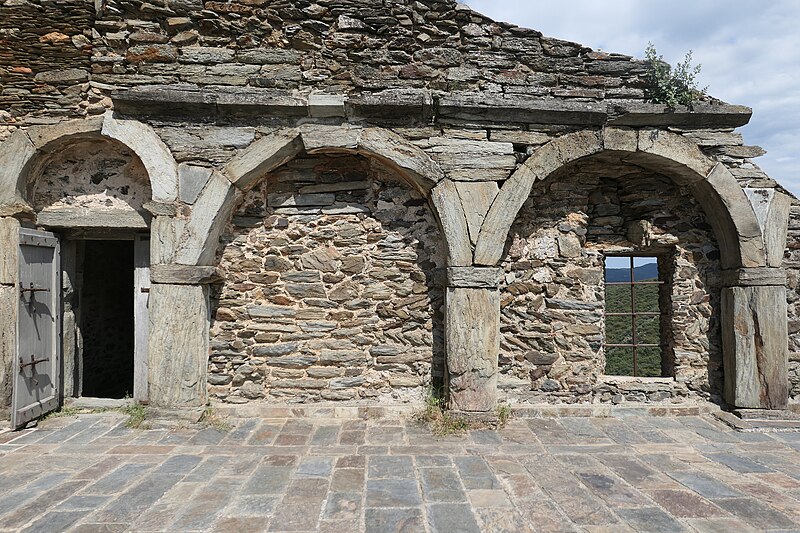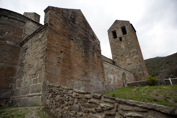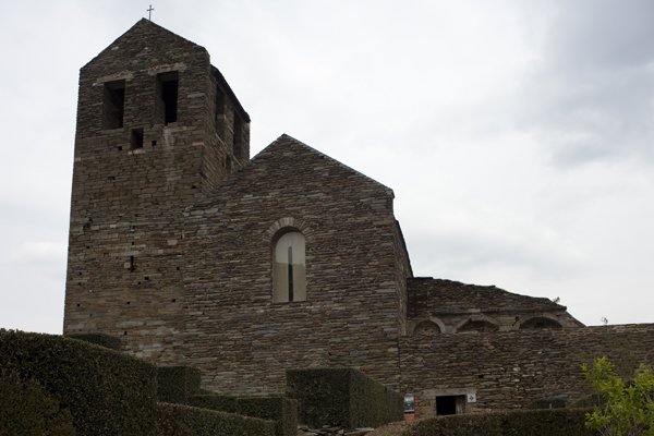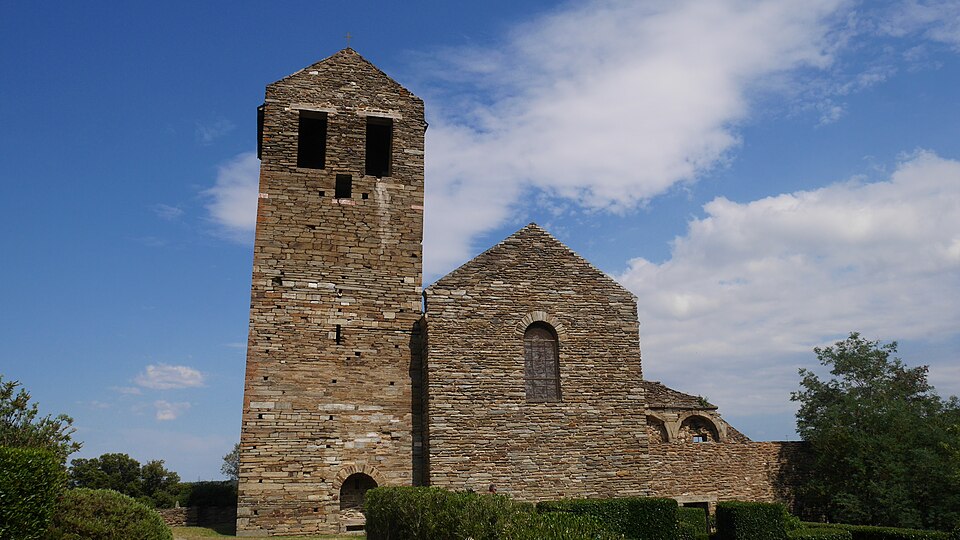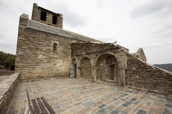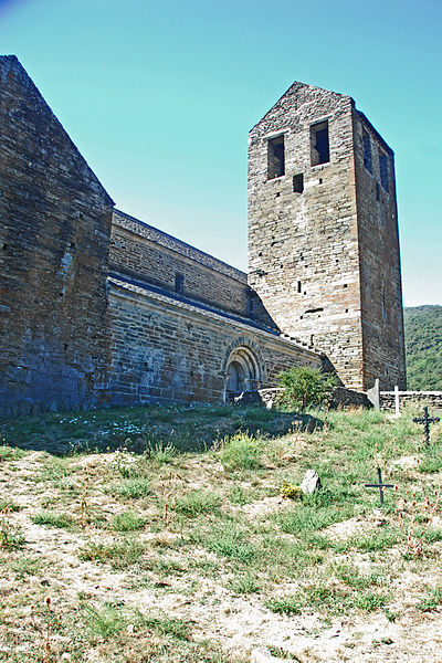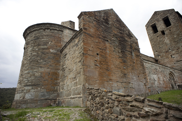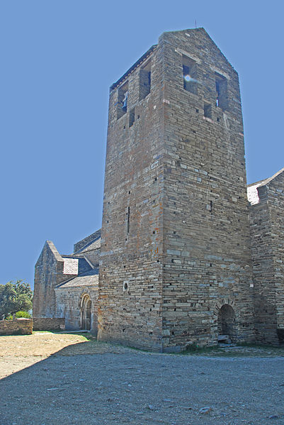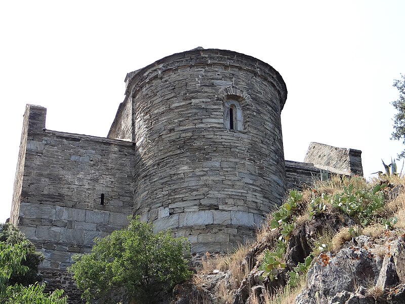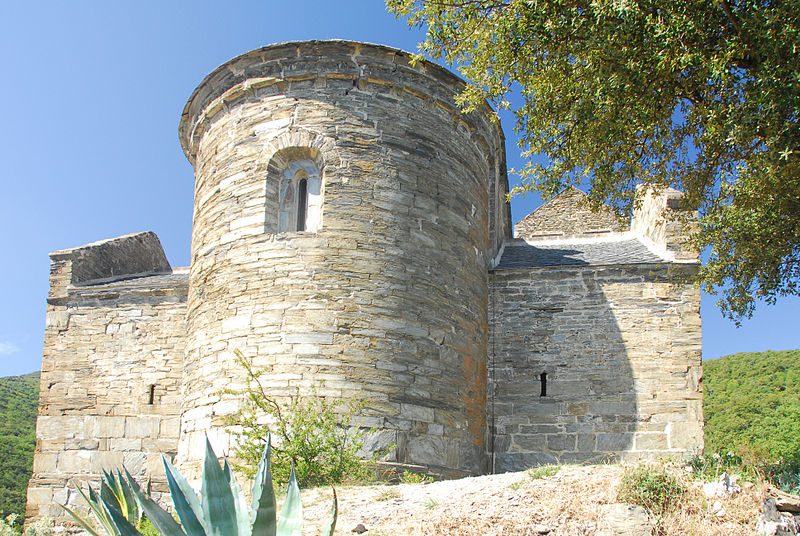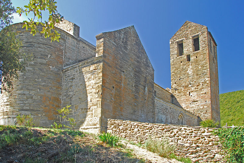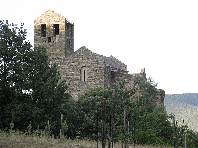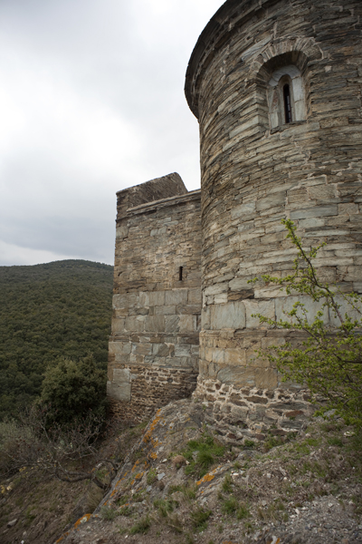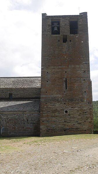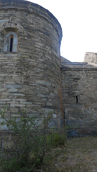 Le prieuré Sainte-Marie de Serrabona, fondé au début du XIe siècle, est situé en altitude sur la commune de Boule-d'Amont, dans les Pyrénées-Orientales ; son portail nord, les chapiteaux du cloître et une rare tribune en marbre du XIIe siècle constituent l'un des plus beaux ensembles de sculpture romane du Roussillon. L'église est classée au titre des monuments historiques et plusieurs de ses objets sont référencés dans la base Palissy. Implanté sur l'ancienne commune de Serrabonne, le prieuré se trouve dans le massif des Aspres, sur les contreforts orientaux du Canigou, à environ trente kilomètres de Perpignan et à 600 mètres d'altitude, à proximité des gorges du Boulès ; l'accès demeure difficile et les derniers 150 mètres de la route se font à pied. Aucune voie ne remontait la vallée du Boulès avant 1906 et la route qui dessert le prieuré date de 1946 ; de ce point élevé partent plusieurs sentiers de randonnée. La plus ancienne mention du lieu remonte à 1069 ; à cette époque une église paroissiale dédiée à la Vierge est citée et un groupe de religieux suivant la règle de saint Augustin, composé de chanoines et de chanoinesses, est installé par les seigneurs locaux. En 1082 est élu un prieur dans un contexte de tensions entre autorités religieuses et pouvoirs comtaux, en lien avec la réforme grégorienne. L'édifice primitif se compose d'une nef étroite voûtée en berceau ; lors d'un second chantier on y ajoute un clocher carré, un collatéral nord, un transept muni d'absidioles et un chevet semi‑circulaire, ainsi que les bâtiments monastiques et un cloître à galerie unique, adaptés à la topographie rocheuse. La nouvelle collégiale fut consacrée le 25 octobre 1151 par l'évêque d'Elne en présence d'autres prélats, et l'acte attribue l'agrandissement au prieur Pierre Bernard et aux habitants de Serrabone. Un débat a longtemps porté sur l'origine de la tribune en marbre ; des analyses architecturales et comparaisons ont conduit depuis les années 1970 au consensus qu'elle a été conçue pour cette église et qu'elle date de la période proche de la consécration de 1151. L'apogée du prieuré est de courte durée : des troubles apparaissent aux XIIIe et XIVe siècles, la décadence s'accélère et conduit, au XVIe siècle, à la sécularisation et à l'attachement du prieuré à la cathédrale de Solsona en 1593 ; le dernier prieur meurt en 1612 et le lieu perd son statut collégial pour devenir église paroissiale puis tomber lentement dans l'abandon. En 1789, deux murs sont élevés pour soutenir la voûte et la tribune est ainsi « mise en boîte », mais la partie occidentale de l'église s'effondre en 1819 ; une maison de fermier est alors construite dans la zone effondrée et un grenier est aménagé au-dessus de la tribune, tandis que la rangée intérieure de colonnes et chapiteaux du cloître est démontée pour constituer un retable afin d'éviter leur vente. La commune de Serrabone est supprimée en 1822, Prosper Mérimée visite le prieuré en 1834 et une première campagne de restauration est engagée en 1836 ; le site est classé en 1875. Devenu propriété de Henri Jonquères d’Oriola, le prieuré fait l'objet de travaux dès 1906 et les restaurations se poursuivent tout au long du XXe siècle ; la tribune est dégagée en 1920–1922 puis à nouveau en 1950, mais certains éléments ont été mal préservés, dispersés ou volés. Le département des Pyrénées‑Orientales acquiert le site en 1956 et en assure la gestion ; la partie occidentale est restituée à l'initiative de Sylvain Stym‑Popper avec la reconstitution de la façade en 1969, des mesures de protection sont prises après un incendie menaçant en 1978 et le territoire autour du prieuré est protégé en 1981 ; la balustrade de la tribune a été reconstituée par anastylose entre 2011 et 2014. L'église visible aujourd'hui associe la nef primitive et les adjonctions du XIIe siècle : clocher carré, collatéral nord, transept avec deux absidioles non saillantes et abside semi‑circulaire ; au sud une galerie de cloître conduit aux bâtiments du monastère. Les murs sont en schiste local avec des assises posées de chant et, dans les parties basses, des appareillages en opus spicatum ; la nef est voûtée en berceau brisé, le collatéral en demi‑berceau et les absides en cul‑de‑four. Les dimensions intérieures sont de 24,50 m de longueur, 14,70 m pour le transept et 10,70 m de hauteur sous voûte, l'épaisseur du mur de la nef étant de 1,50 m sans contreforts. Les vestiges de la décoration peinte sont rares : on relève un fragment de fresque du XIIe siècle sur le mur sud, des traces de polychromie dans l'entourage de la fenêtre d'abside et une croix de consécration visible sous la tribune ; la fenêtre du chœur présente une archivolte en marbre reposant sur colonnes et chapiteaux en marbre de Villefranche, sculptés comme la tribune mais sans fonction structurelle. On trouve également une grande cuve baptismale monolithique en marbre rose à l'extrémité est du collatéral nord et un bénitier octogonal en marbre près du mur de la tribune. Le portail nord, ouvert dans le mur gouttereau du collatéral, est encadré par colonnes en marbre portant un boudin décoré ; le chapiteau gauche représente un Christ trônant entouré d'anges et le chapiteau droit montre deux lions rejoignant une tête commune ; ces deux chapiteaux ont été volés en 2000 et remplacés par des copies en résine. La tribune‑jubé, qui sépare le chœur liturgique de la nef et permet la proclamation et le chant face aux fidèles, occupe la travée médiane de la nef ; elle couvre une surface d'environ 25 m2 et s'atteint par un escalier contre le mur nord du chœur. Mesurant 5,60 m de large sur 4,80 m de profondeur et 3,10 m de hauteur, sa façade occidentale et ses éléments structuraux sont en marbre rose de Bouleternère ; composée de trois a