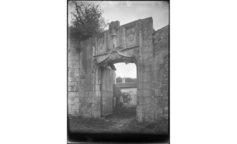 Le portail, accolé au flanc droit de la chapelle, est un ouvrage gothique flamboyant du XVe siècle — témoignant, selon les sources, du troisième quart de ce siècle — élevé sous l'autorité de Raoul du Fou. Sa baie en accolade est encadrée de contreforts coiffés de pinacles fleuronnés. Deux panneaux situés de part et d'autre de la pointe de l'arc portent respectivement les armes du roi de France Louis XI et de la reine Charlotte de Savoie, tandis que, sous l'arc, l'armoirie de Raoul du Fou (« d'azur à une grande fleur de lys d'argent, portant deux éperviers affrontés de même, becqués et membrés d'or ») est soutenue par deux anges et accompagnée d'une crosse et d'une mitre, rappelant la double fonction de son titulaire.
