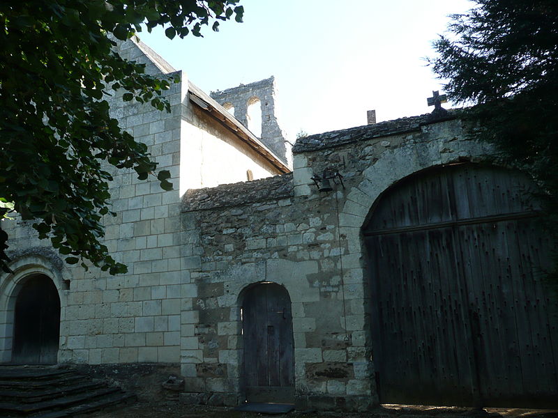 Le prieuré Saint-Aubin est situé sur la commune des Alleuds, dans le département de Maine-et-Loire. L'église du prieuré se compose d'une nef et d'un transept, voûtés en croisée d'ogives. Sur le mur sud se trouve une fresque du XVIe siècle représentant le Christ portant la croix ; elle mesure 4,50 m de long sur 1,55 m de haut. L'édifice est inscrit au titre des monuments historiques en 1957. Parmi les ressources documentaires disponibles figurent l'ouvrage de Célestin Port et la base Mérimée.