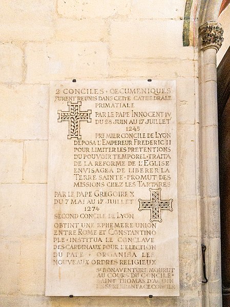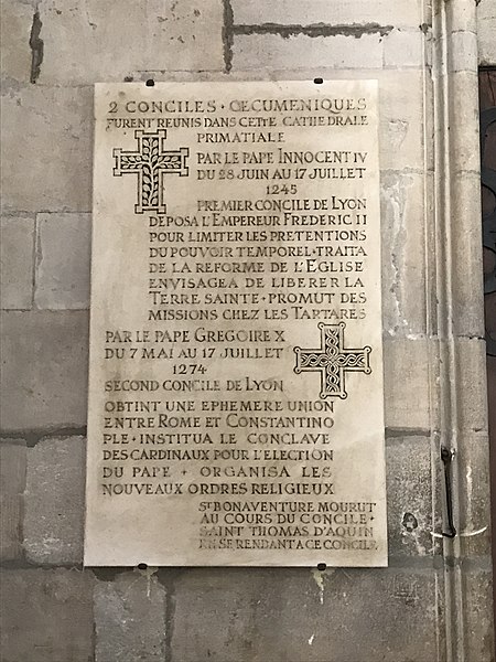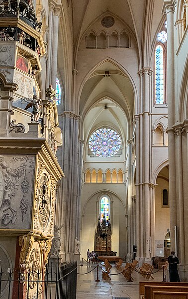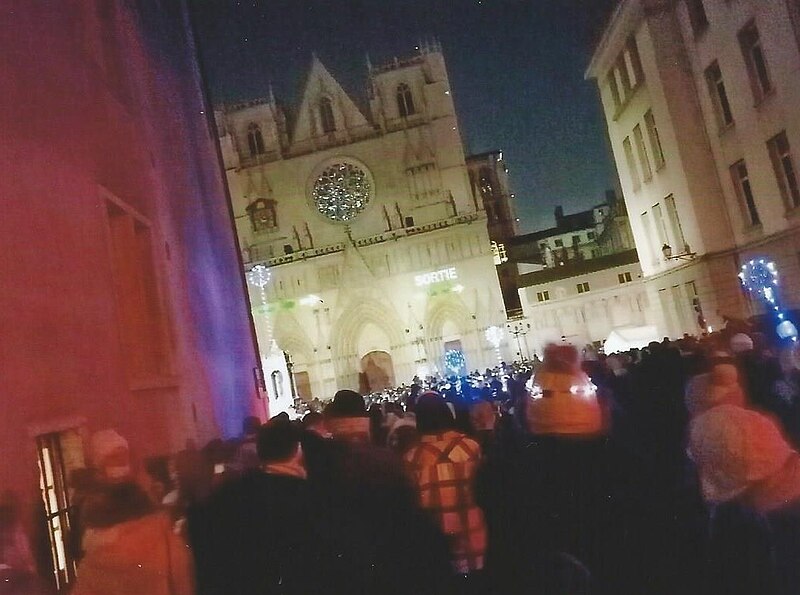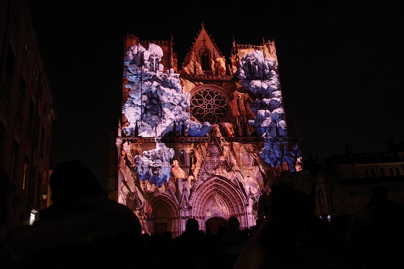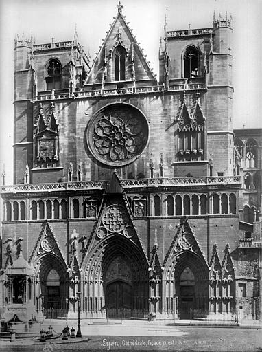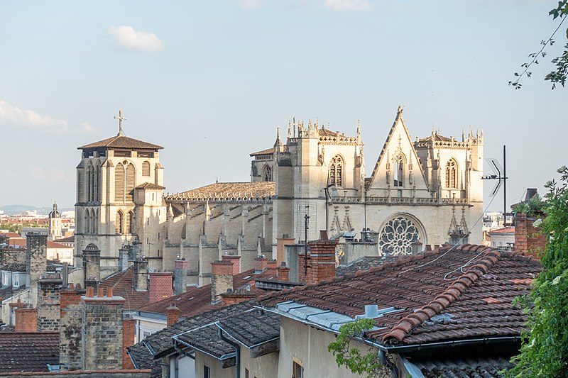 La primatiale Saint‑Jean‑Baptiste‑et‑Saint‑Étienne, plus simplement dite cathédrale Saint‑Jean, est le siège de l’archidiocèse de Lyon et la primatiale des Gaules, l’archevêque portant le titre honorifique de primat des Gaules. Elle se situe dans le cinquième arrondissement, au cœur du Vieux‑Lyon médiéval et Renaissance, où elle constitue l’un des éléments marquants du quartier. L’édifice, qui a longtemps formé un groupe cathédral avec d’autres églises et bâtiments ecclésiastiques désormais disparus, conserve la double dédicace héritée de l’ancienne organisation liturgique : saint Étienne pour l’église primitive et saint Jean‑Baptiste pour le baptistère, vocable qui a fini par prévaloir dans la désignation courante. Les premières grandes églises attestées sur le site furent la « maxima ecclesia » élevée par Patient et une seconde reconstruction attribuée à Leidrade au début du IXe siècle. La cathédrale actuelle résulte d’un chantier long et complexe, conduit entre 1175 et 1480 et marqué par le passage du roman au gothique sous l’impulsion successive des archevêques Guichard de Pontigny, Jean Belles‑mains et Renaud de Forez. Le site contraint entre colline et rivière, ainsi que les rivalités politiques locales et l’absence de certains savoir‑faire, ont limité la longueur, la hauteur et l’ornementation de l’édifice par rapport aux grandes cathédrales du Bassin parisien. Fortement endommagée en 1562, puis pendant la Révolution et le siège de 1793, la primatiale a fait l’objet d’importantes restaurations au XIXe siècle, marquées notamment par l’intervention de Tony Desjardins qui chercha à donner à Saint‑Jean un aspect gothique idéalisé, projet auquel l’administration et l’opinion opposèrent des limites. Les travaux se sont poursuivis aux XXe et XXIe siècles malgré les interruptions de guerre : le retrait allemand de septembre 1944 causa la destruction de nombreuses verrières, puis de vastes campagnes de remise en état des vitraux, des façades et des aménagements intérieurs ont été menées, l’horloge astronomique ayant été restaurée récemment. La primatiale est classée monument historique depuis 1862, intégrée au premier secteur sauvegardé créé à Lyon en 1964 et inscrite au patrimoine mondial en 1998 au titre du site historique de la ville. Depuis le 20 décembre 2020, l’archevêque de Lyon est Olivier de Germay. L’église reste un lieu de culte actif et une paroisse du Vieux‑Lyon ; elle a par ailleurs conservé une forte identité liturgique locale, liée au rite lyonnais, qui explique en partie l’histoire particulière de son instrumentation musicale, l’orgue y ayant été installé tardivement au XIXe siècle. Le site archéologique et les fouilles montrent que la cathédrale s’élève sur l’emplacement du groupe épiscopal mérovingien et carolingien, et la construction médiévale a intégré le remploi de pierres romaines et la mise en œuvre de pieux pour renforcer les berges de la Saône. Le passage du roman au gothique se traduit dans l’édifice par un mélange d’éléments, d’expérimentations techniques et d’adaptations successives, visibles dans l’abside romane dotée d’un triforium et d’un clair‑étage gothique, les chapelles voûtées en ogives et la nef à voûtes sexpartites. La façade occidentale, surmontée d’un haut pignon triangulaire, présente trois portails richement sculptés ornés de centaines de médaillons narratifs mêlant scènes bibliques, hagiographiques et motifs profanes ; nombre de statues et de décors furent mutilés au XVIe et au XVIIIe siècle. L’édifice est orienté est‑sud‑est, comprend trois nefs, un transept saillant et une abside heptagonale sans déambulatoire ; ses dimensions sont relativement modestes : 80 mètres de longueur totale, 13,3 mètres de largeur pour la nef centrale, des voûtes dont les hauteurs varient autour des valeurs indiquées et des tours culminant à 44 mètres sans flèches. L’intérieur présente un décor soigné mêlant marbres, incrustations, chapiteaux historiés sur le thème de l’enfance du Christ et un ensemble de verrières médiévales et modernes ; de nombreuses verrières anciennes ont été restaurées ou remplacées après les destructions du XXe siècle. La primatiale abrite deux orgues : le grand orgue, instrument historique né au XIXe siècle et restauré et enrichi au cours du XXe et début du XXIe siècle, et un orgue installé dans le transept nord ; la personnalité liturgique lyonnaise explique l’introduction tardive et la modestie relative de certains instruments. L’horloge astronomique, appareil spectaculaire à astrolabe, calendriers et automates, a connu plusieurs campagnes de restauration et reste un élément remarquable de la cathédrale. Lieu de grands événements ecclésiaux et civils—dont les deux conciles de Lyon au XIIIe siècle, des visites pontificales et des cérémonies contemporaines—la primatiale est aussi une destination touristique importante, attirant visiteurs et fidèles pour ses monuments, ses vitraux, son horloge et ses animations, notamment pendant la Fête des Lumières.