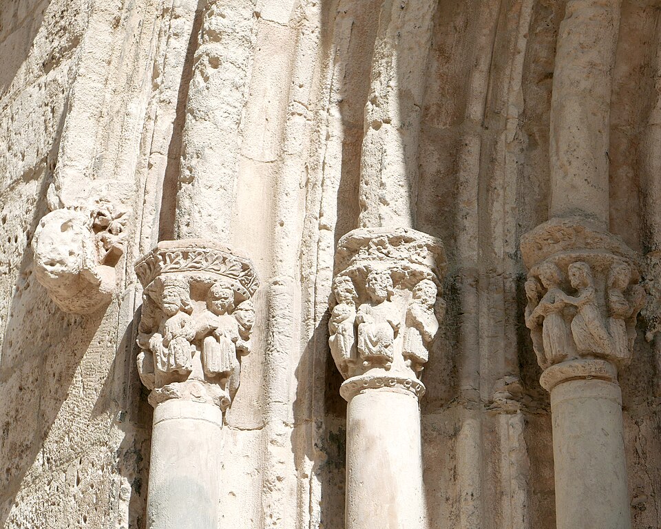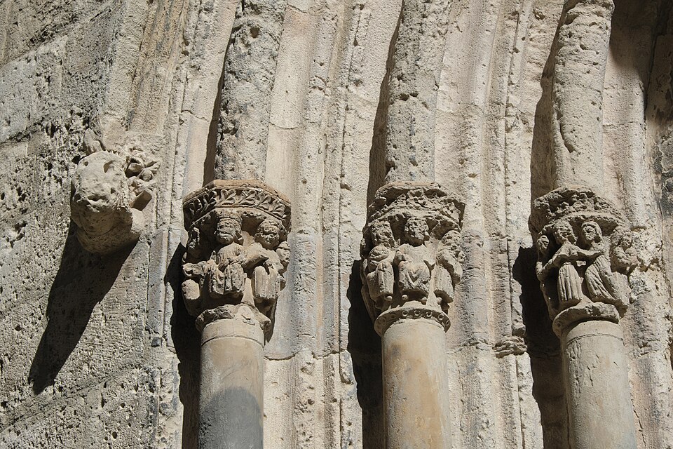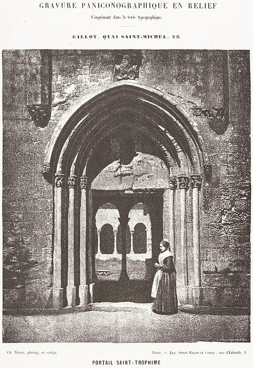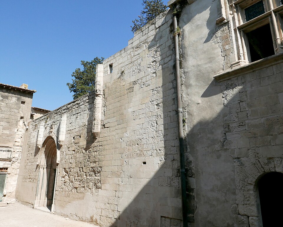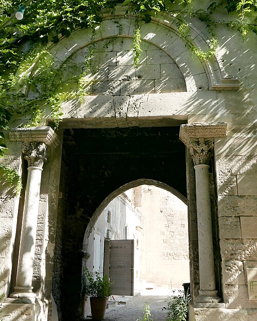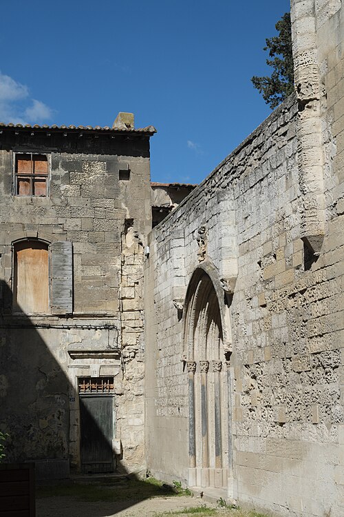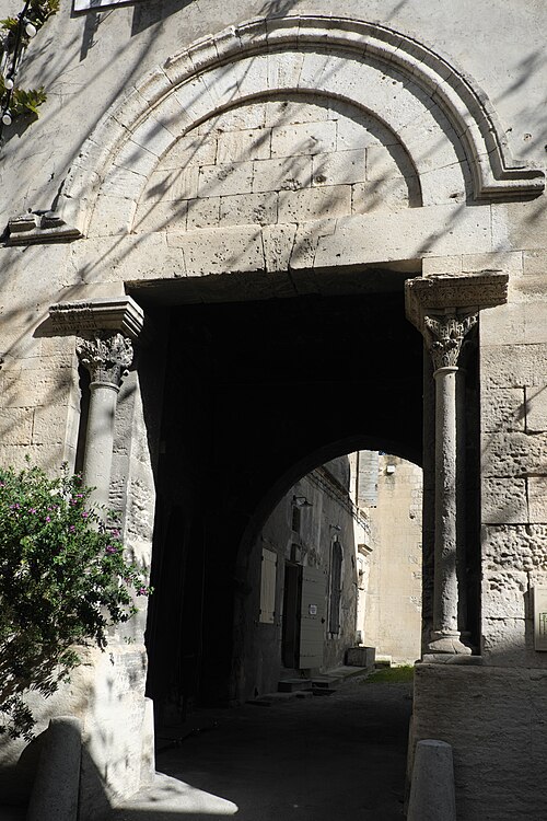 La basilique primatiale Saint-Trophime d'Arles, située place de la République, est un des principaux édifices de l'art roman provençal, bâtie sur des vestiges antiques. L'église, élevée principalement au XIIe siècle avec des aménagements au XVe siècle, fut longtemps cathédrale et primatiale avant de devenir une église paroissiale. La nef haute de cinq travées voûtées en berceau brisé, flanquée de bas‑côtés étroits, date du milieu du XIIe siècle, et la croisée du transept porte la coupole sur laquelle s'élève le clocher. Le chœur et le déambulatoire relèvent du XVe siècle. Le clocher actuel, tour carrée dont le dernier étage a été refait au XVIIe siècle, remplace le clocher primitif. Le portail historié, exécuté vers 1180‑1190, est encadré de deux portes à fronton ajoutées à la fin du XVIIe siècle. Adossé à l'église, le cloître Saint‑Trophime réunit des galeries nord et est de style roman ornées de sculptures de la seconde moitié du XIIe siècle et des galeries sud et ouest gothiques voûtées sur croisées d'ogives, réalisées vers la fin du XIVe siècle ; l'accès se fait depuis la cour du bâtiment voisin. Saint‑Trophime fut le siège de l'archidiocèse d'Arles jusqu'en 1789 et sa fusion avec l'archidiocèse d'Aix‑en‑Provence fut entérinée par le Concordat de 1801 ; les titres de basilique mineure, primatiale et cathédrale sont cependant conservés et l'église reste le lieu de culte principal de la paroisse d'Arles, confiée à la Communauté Saint‑Martin depuis 2017. La basilique primitive, dédiée à saint Étienne et située à l'Hauture, fut reconstruite à l'époque carolingienne puis remaniée à la fin du XIe siècle avant la campagne romane du XIIe siècle ; le chœur fut reconstruit au XVe siècle avec la création d'un déambulatoire. La chronologie et l'interprétation de certains vestiges antiques et de la crypte font l'objet d'études : des découvertes au XIXe siècle ont mis au jour des substructions voûtées et une crypte probablement d'origine carolingienne, détruite lors de la reconstruction gothique du chœur. Le transept, la partie la plus ancienne, est réalisé en appareil grossier et la croisée supporte une coupole surmontée de la tour‑clocher ornée de bandes lombardes et de pilastres à chapiteaux corinthiens. La nef, d'environ 40 m de long, 15 m de large et 20 m de haut, divisée en cinq travées, est éclairée par des fenêtres hautes ; sa voûte en berceau brisé repose sur doubleaux et colonnettes à chapiteaux corinthiens et date du second quart du XIIe siècle. Sous les deux premières travées, des vestiges voûtés ont été interprétés comme des substructions antiques ou un entrepôt de la fin de l'Antiquité. Au XVe siècle fut édifié un vaste chœur gothique comprenant deux travées droites, une abside à cinq pans, un déambulatoire et huit chapelles pour faciliter la circulation des pèlerins ; des chapelles latérales et la chapelle des rois complètent l'ensemble. Le mobilier de l'église, en grande partie reconstitué au XIXe siècle après les dispersions révolutionnaires, comprend notamment des tapisseries d'Aubusson du XVIIe siècle illustrant la vie de la Vierge, classées au titre objet. Plusieurs tableaux, dont trois toiles de Louis Finson de 1614 représentant la Lapidation de saint Étienne, l'Adoration des mages et une Annonciation, ornent l'édifice et sont classés. D'autres peintures, panneaux et œuvres du XVIe au XIXe siècle décorent la nef, les croisillons et les chapelles. Trois sarcophages paléochrétiens, datés des IVe et du début du Ve siècle, furent apportés au XIXe siècle et sont exposés dans l'église : un sarcophage à deux registres anciennement utilisé comme fonts baptismaux, un sarcophage représentant la Traversée de la mer Rouge et le sarcophage de Paulus Geminius, richement sculpté. Le groupe de la Mise au tombeau, en pierre du XVIe siècle et provenant de l'église des Dominicains, surmonte le sarcophage de Geminius ; un bas‑relief de l'Assomption et une Vierge en marbre de Leonardo Mirano figurent également parmi les sculptures classées. La chapelle des rois conserve une chaire en marbre polychrome commandée par Jean‑Marie du Lau et plusieurs tombeaux importants, dont le cénotaphe du cardinal Pierre de Foix, le tombeau de Robert de Montcalm et le tombeau de l'archevêque Gaspard du Laurens réalisé par Jean Dedieu. À partir de la seconde moitié du XIIe siècle, de nombreux archevêques d'Arles furent inhumés à Saint‑Trophime et l'édifice conserve plusieurs épitaphes et monuments funéraires. Les vitraux du chœur, réalisés en 1877 par Laurent Charles Maréchal, représentent la Vierge et saint Trophime, saint Étienne et saint Virgile, ainsi que saint Honorat et saint Genès ; d'autres vitraux décorent la chapelle de la Vierge. Le portail roman sculpté, élevé en haut d'un escalier et restauré dans les années 1990, constitue un chef‑d'œuvre de la sculpture romane provençale : inspiré de l'art antique, il présente frises, figures d'apôtres, scènes bibliques et motifs fantastiques. Le tympan montre le Christ en majesté entouré des symboles évangéliques et l'archivolte des anges du Jugement; sous le tympan, la frise de l'entablement expose apôtres, cortège des bienheureux et barque des damnés, tandis qu'une frise inférieure relate l'enfance du Christ. Les panneaux verticaux du portail présentent en grandes figures les saints majeurs de l'Église, parmi lesquels saint Trophime et saint Étienne. Le cloître, d'environ 28 m sur 25 m, fut édifié entre le milieu du XIIe siècle et la fin du XIVe siècle, alliant galeries romanes au nord et à l'est et galeries gothiques au sud et à l'ouest, et communique avec le chœur par un escalier de vingt‑cinq marches. Classée et protégée aux XIXe et XXe siècles, la primatiale et son cloître font partie des monuments historiques et le groupe 