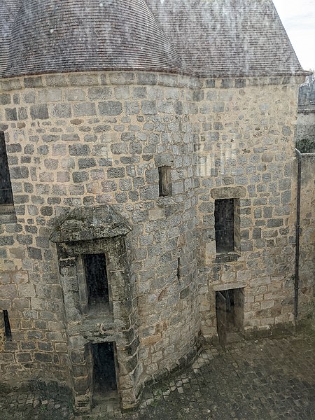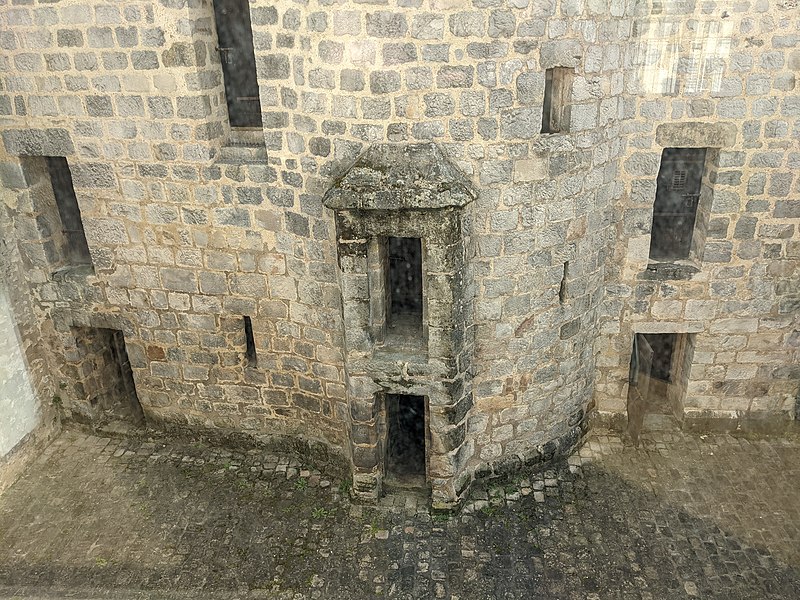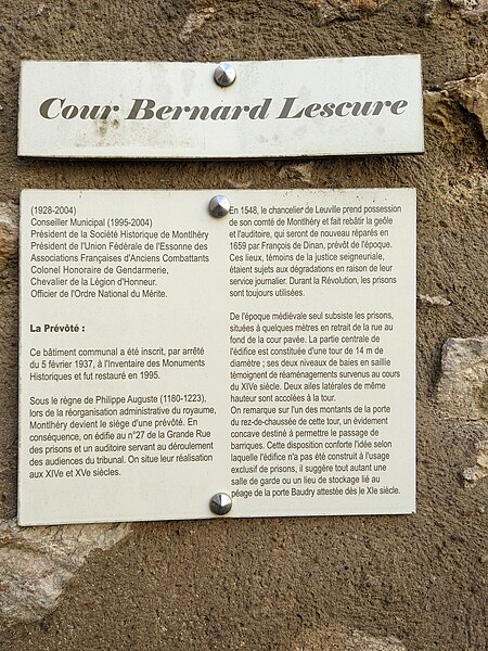 Édifié en fond de cour, ce bâtiment est présenté comme une prison sous Philippe Auguste. Il dépendait de la prévôté de Montlhéry, installée dans la Grande Rue, dont la juridiction couvrait plus de cent paroisses et cent trente fiefs. Le chancelier de Leuville, qui prit possession du comté de Montlhéry en 1548, fit rebâtir cet édifice ainsi que l'auditoire. Une autre hypothèse le considère comme un élément des fortifications du XVIe siècle, une salle de garde ou un bâtiment de stockage marquant le péage de la porte Baudry. Les deux bâtiments, prison et auditoire, furent restaurés en 1659 par François de Dinan, prévôt. Des travaux récents ont consisté en la reconstruction complète de la toiture de l'ancienne « prison ». De nombreux graffitis anciens, portant des dates telles que 1692 et 1716, ont été mis au jour sur les murs du passage cocher qui traverse le bâtiment aligné sur la rue.