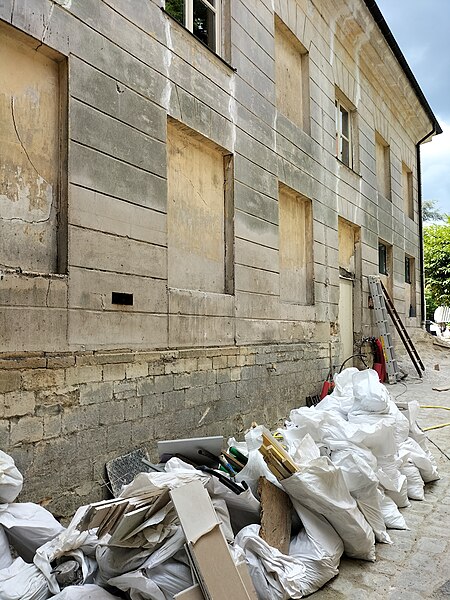 Maison de maître édifiée au cours de la première moitié du XVIIIe siècle, mentionnée sur le plan de 1753. Elle servait de villégiature à l'acteur François Molé, qui a probablement fait construire les écuries dans la seconde moitié du XVIIIe siècle. La demeure d'origine a été démolie et remplacée par l'actuelle au troisième quart du XIXe siècle. Le portail d'entrée appartient à cette même période, selon des travaux historiques.