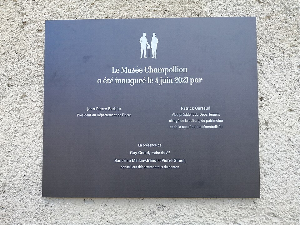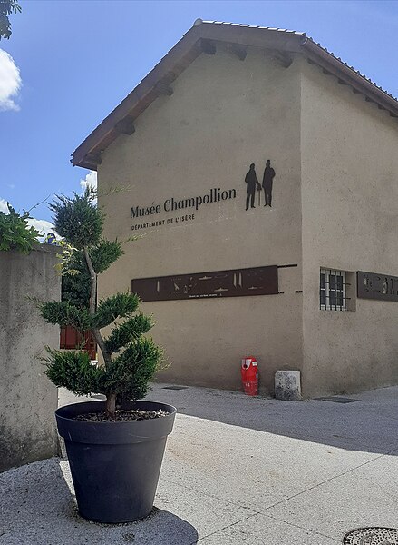La propriété Les Champollion, dite domaine des Ombrages, abrite à Vif le musée Champollion, installé dans la maison familiale de Jacques‑Joseph Champollion, frère de l'égyptologue Jean‑François Champollion. Le musée, consacré à la mémoire des deux frères et aux origines de l'égyptologie, a été ouvert temporairement de septembre 2004 à septembre 2005, puis fermé pour rénovation et agrandissement avant sa réouverture en juin 2021. Labellisé « musée de France » en 2020, il est le onzième musée départemental de l'Isère. L'histoire connue de la propriété remonte au XVIIe siècle; en 1710 Étienne Bonnot‑Latour l'achète à la famille Ambel et lui donne l'aspect qu'elle conserve aujourd'hui. Gabriel Bonnot de Mably et Étienne Bonnot de Condillac y séjournent durant leur enfance et jeunesse. En 1778 Pierre Berriat acquiert le domaine, nommé par la suite Les Ombrages, et le transmet à sa fille Zoé Berriat et à son gendre Jacques‑Joseph Champollion, alors bibliothécaire à Grenoble. Jean‑François Champollion séjourne fréquemment au domaine pendant ses études (1801‑1807) puis lors de son enseignement à l'université de Grenoble jusqu'en 1821; après son départ pour Paris il ne revient que deux fois, en 1824 et en 1826, avant son installation définitive à Paris. C'est lors d'un de ces derniers séjours qu'il apprend la création prochaine d'une galerie égyptienne au musée du Louvre et sa nomination comme conservateur. Le domaine passe ensuite à Aimé‑Louis Champollion, qui le lègue à sa fille Alice‑Louise Champollion‑Figeac; la famille de la Brière y demeure, Chantal de la Brière y vivant de façon permanente jusqu'en 1954. La dernière héritière ayant vécu au domaine, Marie‑Aimée Jacques Chateauminois, vend la propriété au Conseil général de l'Isère en 2001. Inscrite au titre des monuments historiques en 1994, la propriété de 2,48 hectares reste dans la famille jusqu'en 2001 lorsque le Conseil général de l'Isère l'acquiert avec ses meubles, tableaux et archives. Transformée en musée, elle ouvre temporairement du 5 septembre 2004 au 19 septembre 2005 à l'occasion de la 9e conférence internationale d'égyptologie à Grenoble; la bibliothèque des deux frères, riche de 1 045 ouvrages, vient s'y ajouter en 2007. Des conflits personnels et politiques interrompent alors le projet muséal pendant douze ans. Relancé en décembre 2016, le projet prévoit l'agrandissement et la rénovation des espaces; les travaux débutent fin 2018, la première pierre est posée en mai 2019 et, après un retard lié à la crise sanitaire, le musée est inauguré le 4 juin 2021 et ouvert au public le 5 juin. Le coût global s'élève à 6,5 millions d'euros; entre 50 000 et 70 000 visiteurs par an sont attendus, et le musée enregistre plus de 7 000 visiteurs avant la fin août 2021 puis 25 000 visiteurs un an après son inauguration. Le projet muséographique a restructuré 728 m2 d'espaces existants et reconstruit un bâtiment de 354 m2 dédié aux expositions temporaires. Le parc, transféré à la commune par le Département, a été aménagé avec un kiosque, des cheminements, des bancs et des plantations afin d'accueillir des événements en plein air. Le musée Champollion est, après le Louvre, le second musée de France entièrement consacré à l'égyptologie; sa collection, répartie sur 1 100 m2, comprend plus de 300 antiquités et 1 100 ouvrages, avec des dépôts de seize musées dont le Louvre qui apporte 85 antiquités. Lors de la rénovation, en février 2021, des peintures murales en fresque des XVIIe et XVIIIe siècles ont été découvertes sous du papier peint; elles représentent la propriété et un décor floral et ont été entièrement dégagées et restaurées par la restauratrice Caroline Snyers. Le domaine de 2,48 hectares se compose de la maison de maître et de ses dépendances (magnanerie, remise, grenier, ancienne orangerie), d'un jardin d'agrément avec verger et parterres restitués selon l'esprit du XIXe siècle, et du parc champêtre ouvert sur la commune. La maison de maître, d'environ 300 m2, présente au rez‑de‑chaussée une reconstitution de la maison au XIXe siècle consacrée à la jeunesse des frères Champollion, au premier étage les travaux sur la civilisation égyptienne menant au déchiffrement des hiéroglyphes et au second étage l'histoire du premier musée d'égyptologie et de l'expédition franco‑toscane. Les dépendances, d'environ 150 m2, accueillent l'accueil, la boutique, la salle d'exposition temporaire et une salle pédagogique. La collection permanente rassemble sculptures (bustes), peintures et peintures murales, mobiliers et objets d'époque, animaux naturalisés, carnets et croquis, ainsi que des pièces phares liées à Jean‑François Champollion comme un buste en marbre d'Antoine Étex, son costume égyptien, un poignard, son lit, le bureau sur lequel il a déchiffré des hiéroglyphes, des estampages annotés de la pierre de Rosette et deux cartouches hiéroglyphiques peints sur la poutre de sa chambre à Vif. La scénographie associe film, théâtre d'optique présentant une reproduction de la pierre de Rosette, une maquette de la vallée du Nil et des dispositifs numériques; trois carnets de Salvatore Cherubini, rassemblant 148 dessins de l'expédition de Champollion, ont été acquis et intégrés à l'exposition en juillet 2022. Plusieurs institutions déposent des pièces: le musée national de la Marine prête la maquette de la corvette L'Églé, le Muséum de Grenoble fournit des animaux naturalisés, les Archives départementales de l'Isère prêtent des correspondances et le département des antiquités égyptiennes du Louvre dépose une vingtaine d'objets du premier musée d'égyptologie, dont une stèle funéraire au nom d'Ourmaou. Outre la propriété classée en 1994, plusieurs tableaux, bustes et mobiliers de la maison ont été classés Monum