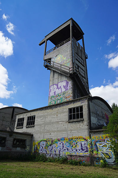 Le chevalement du puits des Combes a été achevé en 1950 et appartient à la seconde génération de chevalements en béton apparus dans les années 1930. Construit au début des années 1950 par la Société des Bétons Freyssinet-Limousin, il est situé sur la commune de La Ricamarie, sur le flanc nord de la vallée de l'Ondaine. Ce chevalement, dernier subsistant à La Ricamarie, et la salle des machines sont inscrits au titre des monuments historiques depuis le 3 novembre 2003. Le puits existait déjà depuis 1935 sous la forme d'un « bure », un puits souterrain ne débouchant pas au jour, qui servait à stocker les remblais des puits Dyèvre et Saint-Dominique à 23 mètres de profondeur. Accessible alors par une galerie débouchant à la surface, ce réservoir souterrain fut prolongé jusqu'au jour en 1935 et transformé sommairement en puits grâce à des moyens d'extraction de fortune. Trois campagnes de fonçage menées de 1937 à 1950 ont repoussé le fond du puits jusqu'à la cote -496 m. La conception du chevalement est atypique : la machine d'extraction se trouve au sol et le chevalement n'a pas de poussards, ces jambages obliques habituellement destinés à compenser la traction des câbles. Plutôt que le profil en « R », la structure adopte la forme d'une tour surmontée d'un renflement bétonné supportant les deux molettes, l'équilibre étant assuré par ce renflement et par la masse du bâtiment inférieur ainsi que par l'homogénéité de la structure, éventuellement réalisée en béton précontraint. Le système remplace dans les années 1950 l'installation provisoire en place depuis les années 1930. Le minerai extrait tombait d'abord dans une trémie puis sur une bande transporteuse qui acheminait le charbon jusqu'au lavoir du puits Pigeot. Grâce à des méthodes modernes d'abattage au fond, à de grosses berlines et à une machine d'extraction de 1 500 ch, le puits des Combes a atteint autour de 1960 des productions de l'ordre de 1 000 à 1 200 tonnes de minerai par jour. À la recette de jour, les berlines étaient expulsées de la cage par des poussoirs électriques, basculées et vidées dans la trémie avant d'être évacuées sur le convoyeur de 1,2 km jusqu'au criblage et au lavoir du puits Pigeot. Malgré sa taille modeste, il constituait dans les années 1960 le premier puits d'extraction du bassin. De l'été 1972 à 1983, le puits ne servit plus qu'à l'exhaure : un système de pompage extrayait régulièrement les eaux pour protéger les travaux du puits Pigeot. Sa genèse — un silo souterrain transformé en puits — explique sans doute son implantation particulière au sommet d'une colline. Son isolement et son accès difficile ont contribué à sa préservation après la fin de l'activité. Le site présente encore des éléments notables : le sommet du chevalement et ses molettes, l'intérieur du chevalement, la recette, le bâtiment de la machine d'extraction et des vues panoramiques.