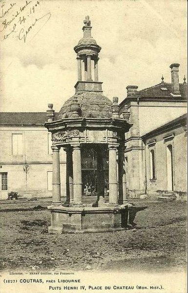 Le puits dit de Henri IV est un ancien puits à eau situé place Ernest-Barraud, au cœur de la commune de Coutras (Gironde), à proximité de l'hôtel de ville. Il dépendait de l'ancien château dont la construction, commencée en 1528, s'est poursuivie aux XVIIe et XVIIIe siècles ; il est le seul vestige du château détruit en 1731. Construit comme ornement du château, il porte la date gravée de 1551 et appartient à la fin de la Renaissance. De plan hexagonal, il mesure deux mètres de diamètre. Six colonnes doriques soutiennent un entablement dont la frise est décorée de sculptures ; les six panneaux alternent deux motifs : l'un évoque probablement un écusson, l'autre représente un bras tenant un cimeterre et tranchant des nœuds, selon l'inscription portée sur une banderole. Au-dessus de l'entablement s'élève une coupole à décor d'écailles, surmontée d'un lanterneau à base carrée dont les colonnettes sont de style ionique. Le puits doit son nom au fait qu'il fut "témoin" de la victoire d'Henri IV sur le duc Anne de Joyeuse lors de la bataille de Coutras, le 20 octobre 1587. Il est classé au titre des monuments historiques par arrêté du 8 juillet 1911. Situé au centre de la ville, il constitue un élément remarquable du patrimoine local.